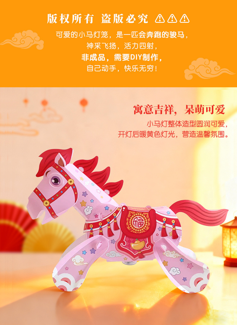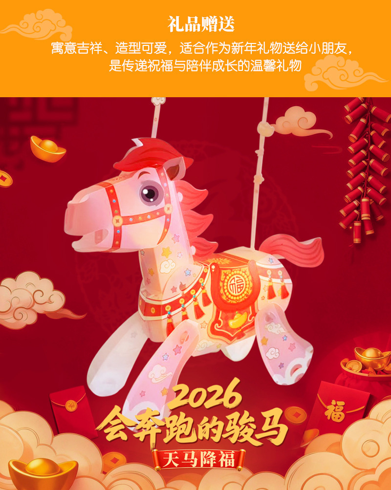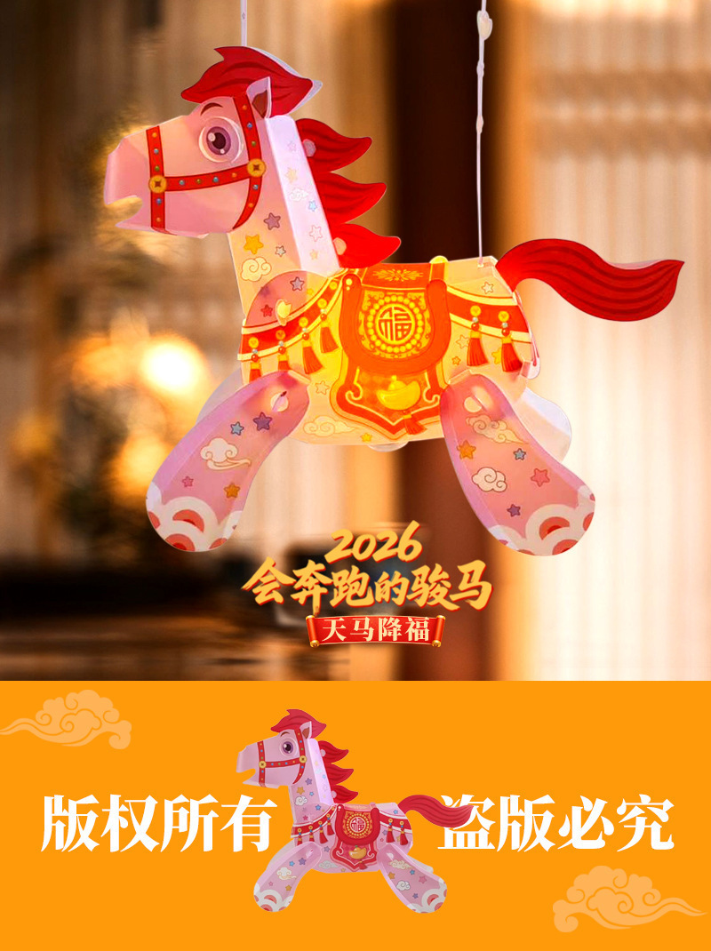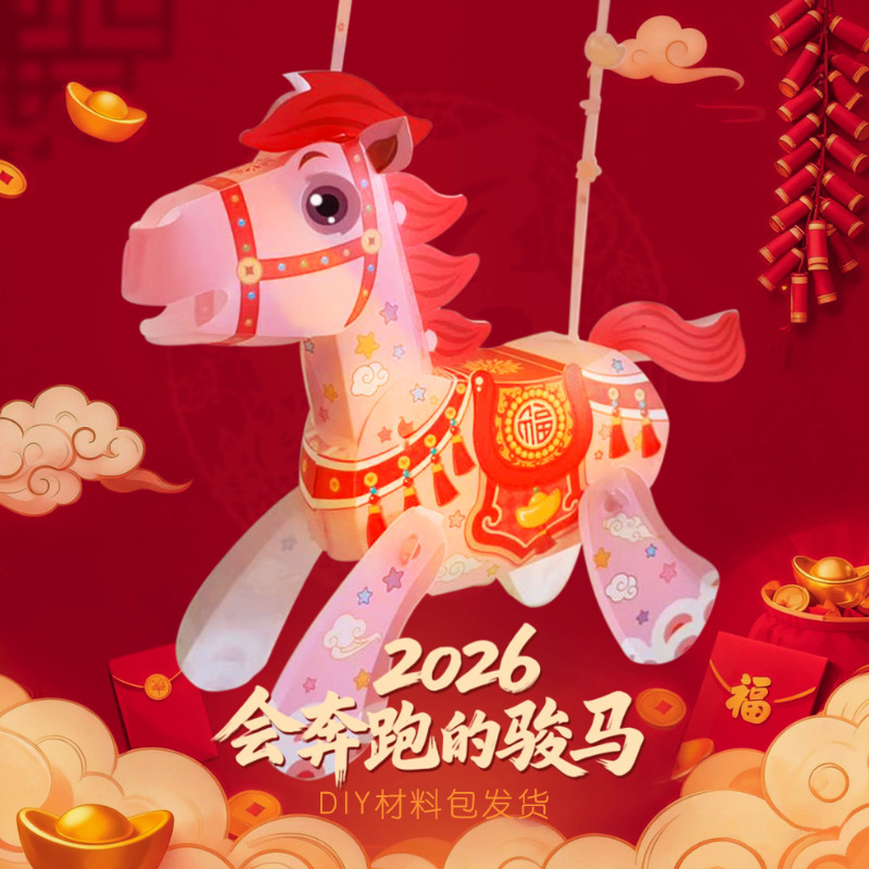 2026新款骏马灯笼儿童马年diy材料元宵手提新年手工花灯宫灯礼物