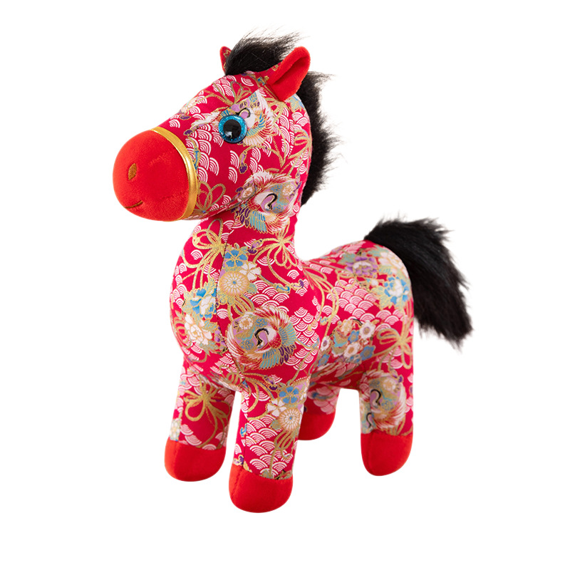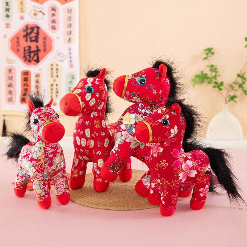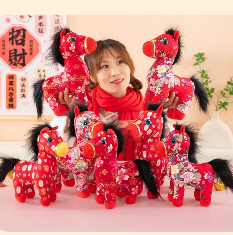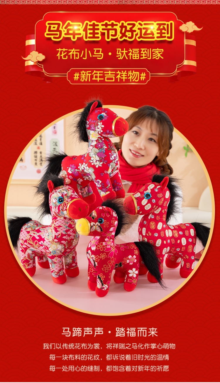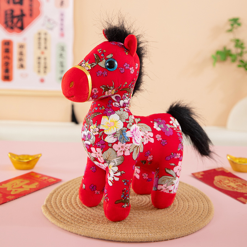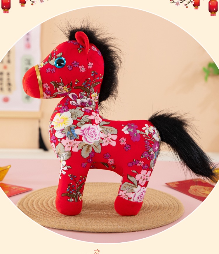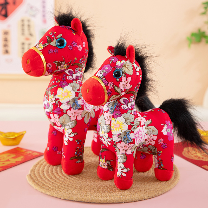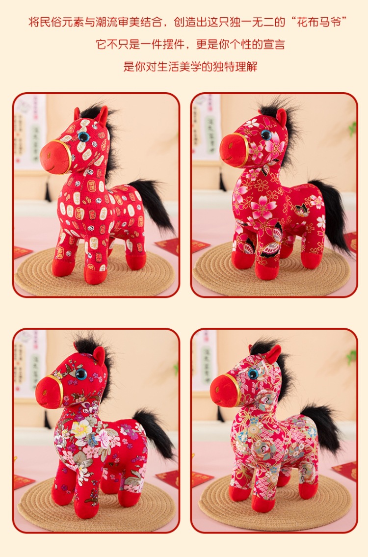 国潮马年吉祥物生肖花布马公仔玩偶毛绒玩具布艺马娃娃新年礼品批