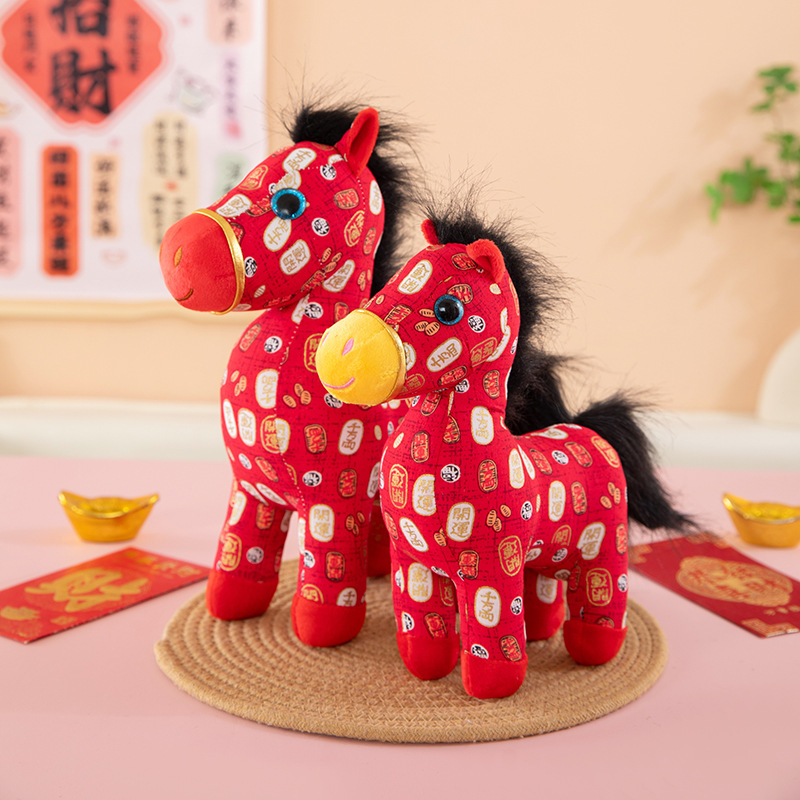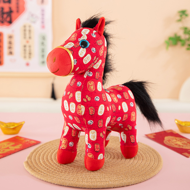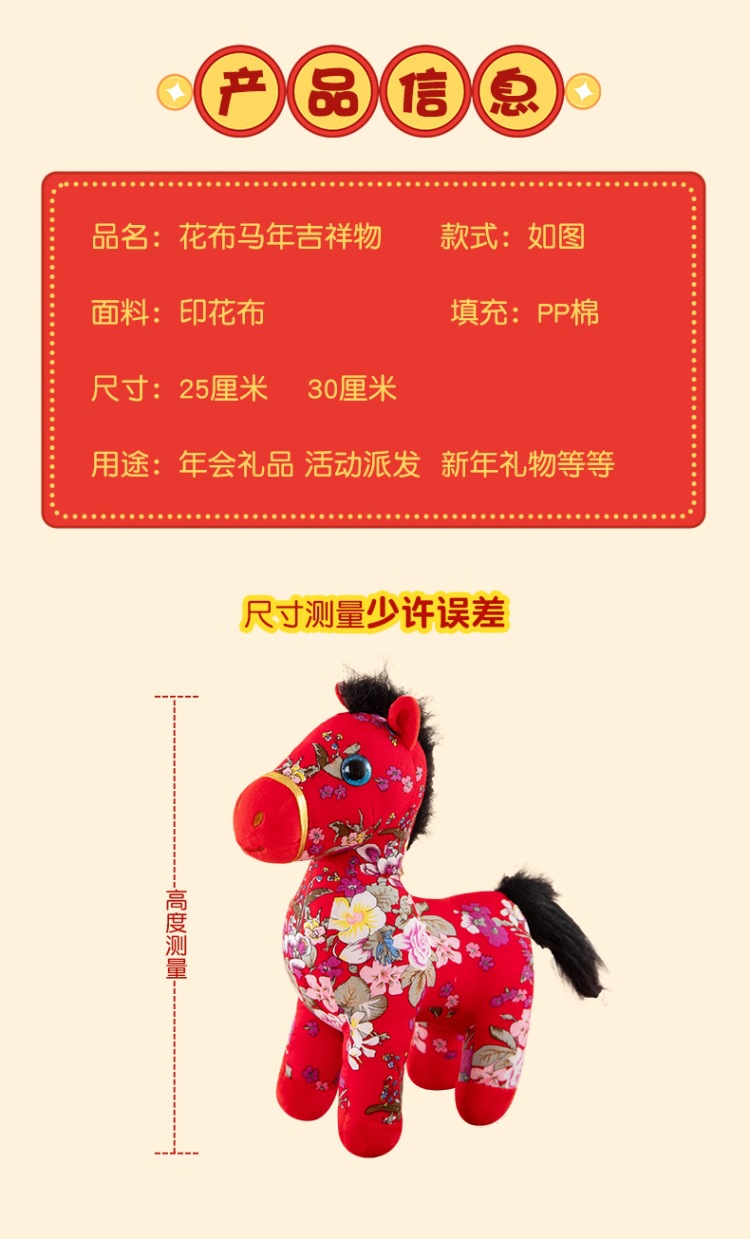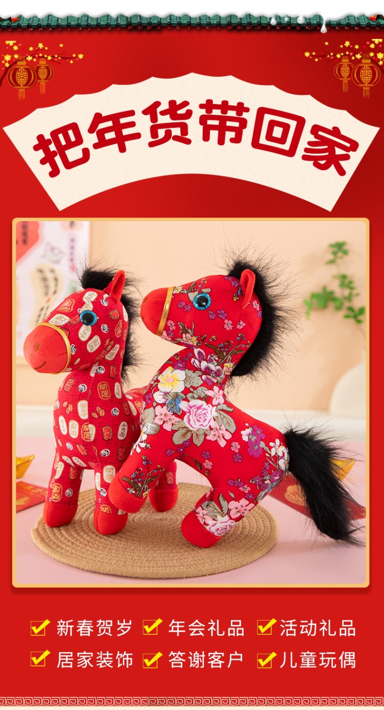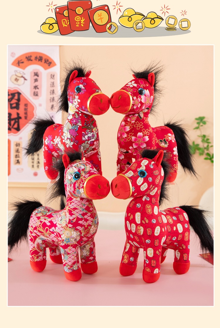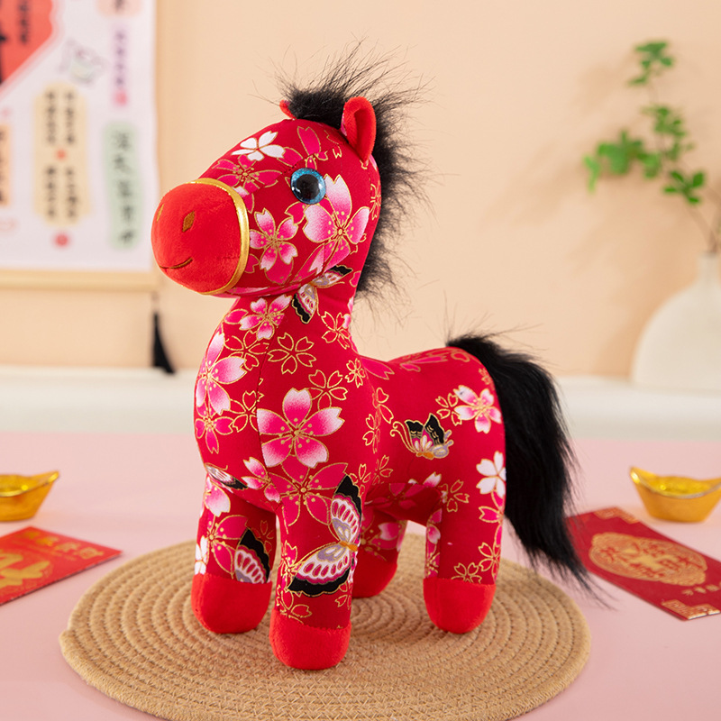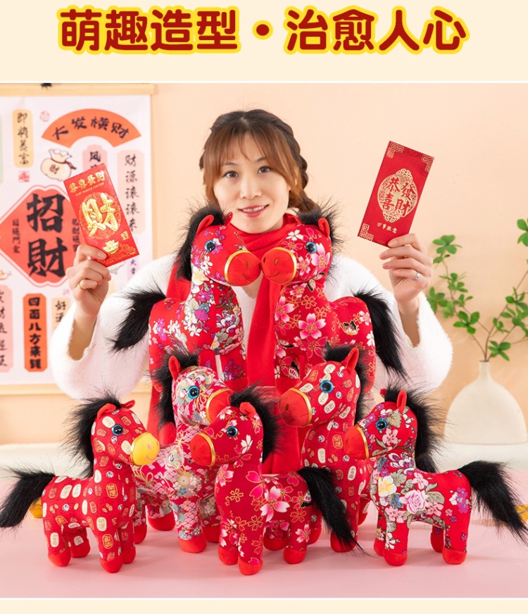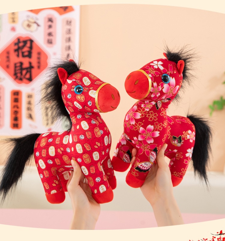 国潮马年吉祥物生肖花布马公仔玩偶毛绒玩具布艺马娃娃新年礼品批
