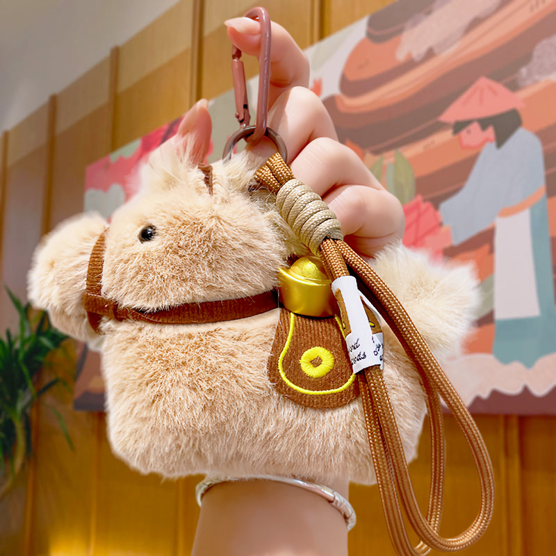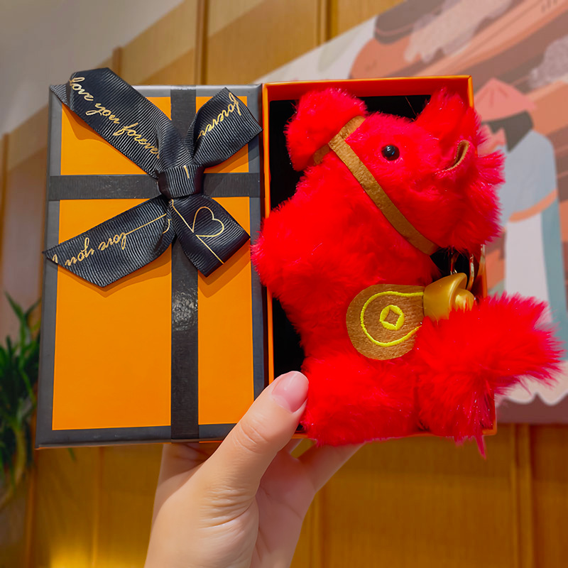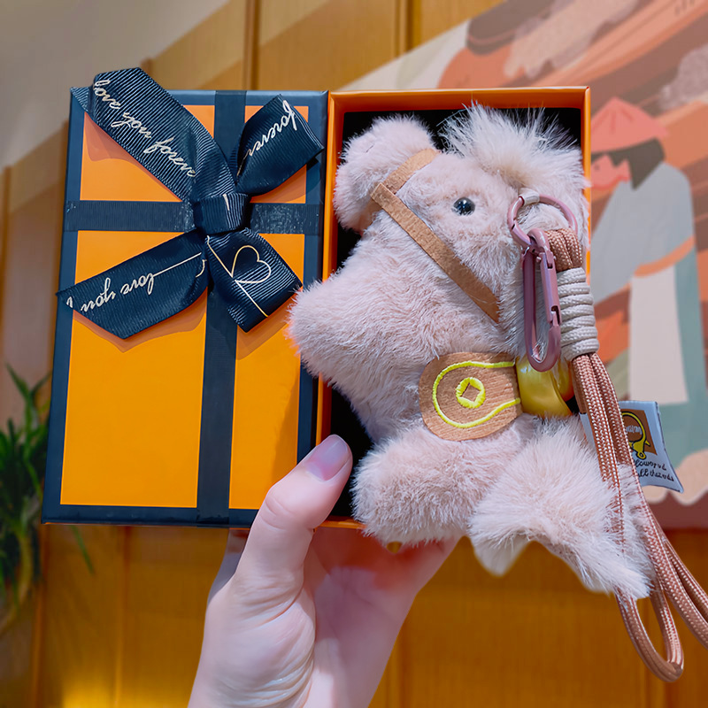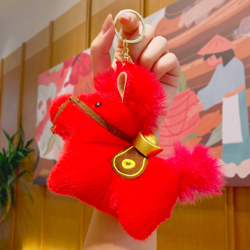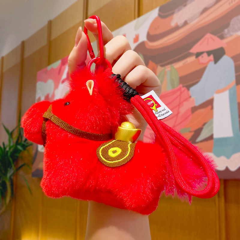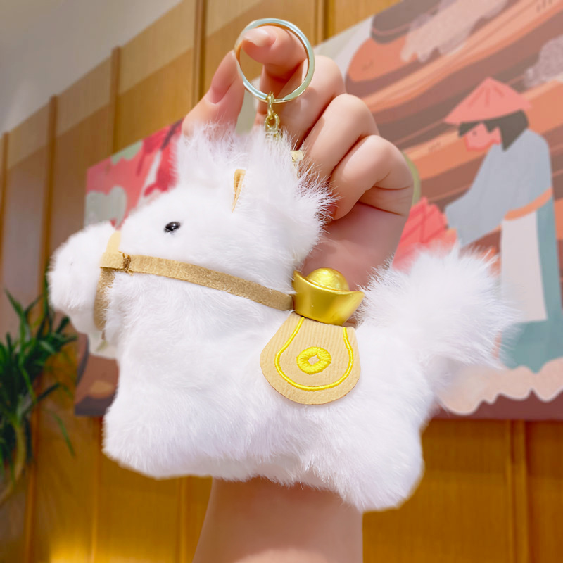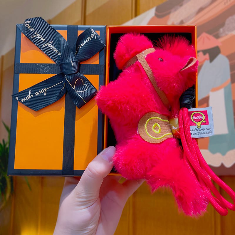 网红爆款马上有钱毛绒玩偶马年钥匙扣挂件礼盒吉祥物公仔小马摆件