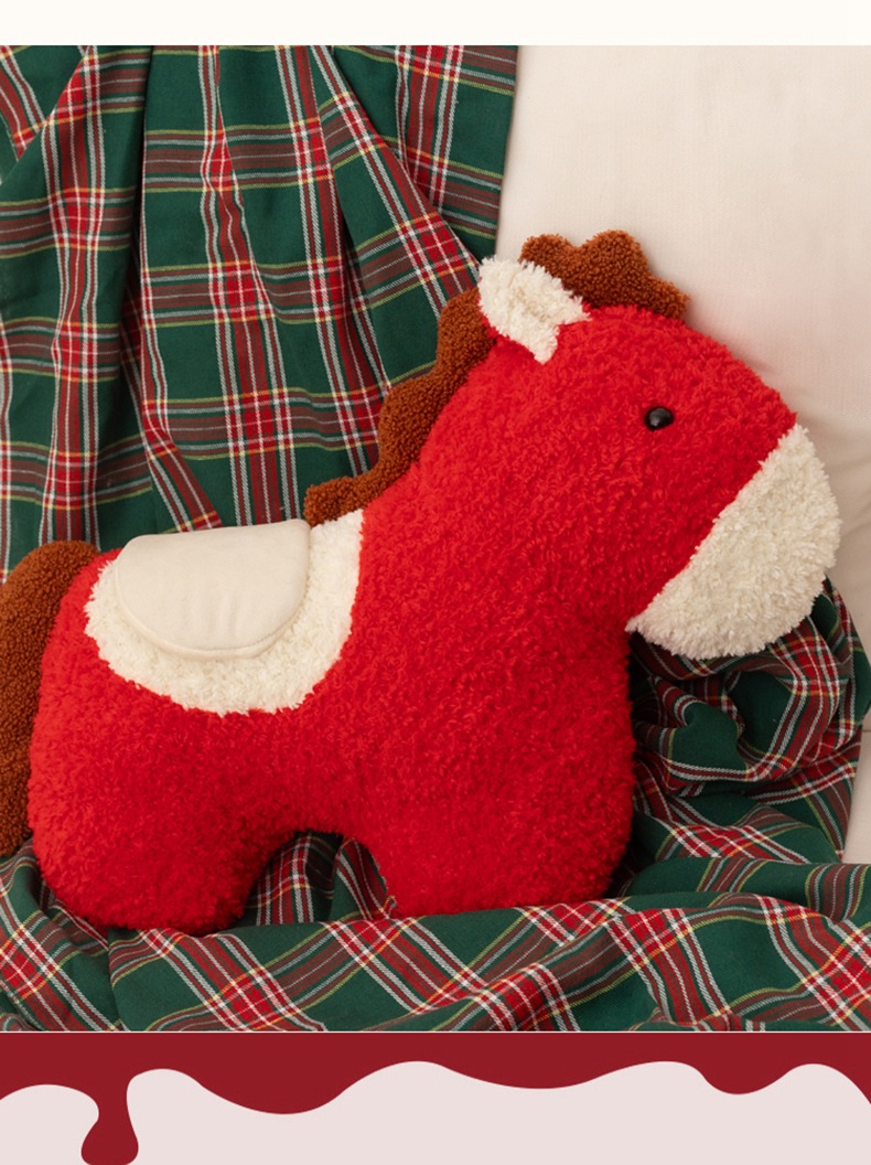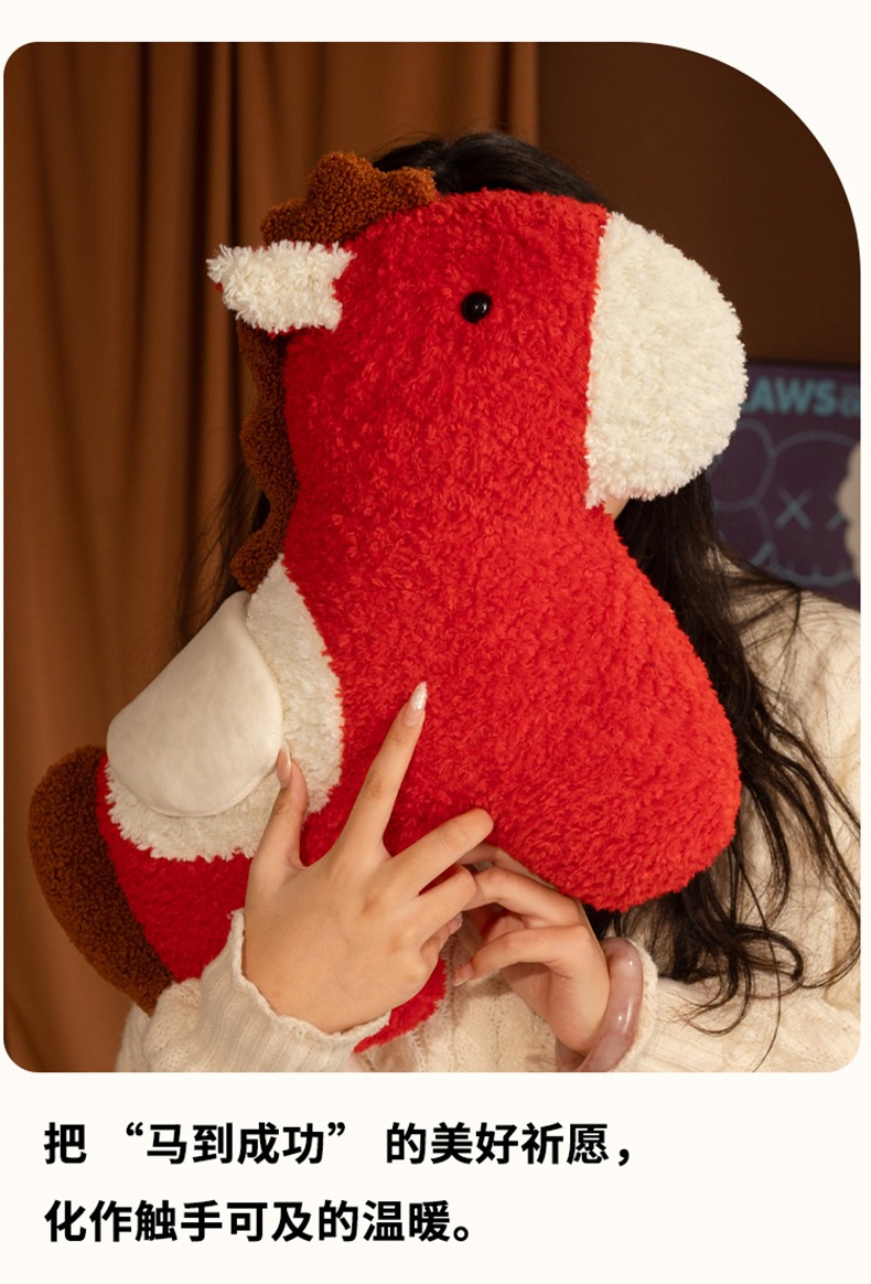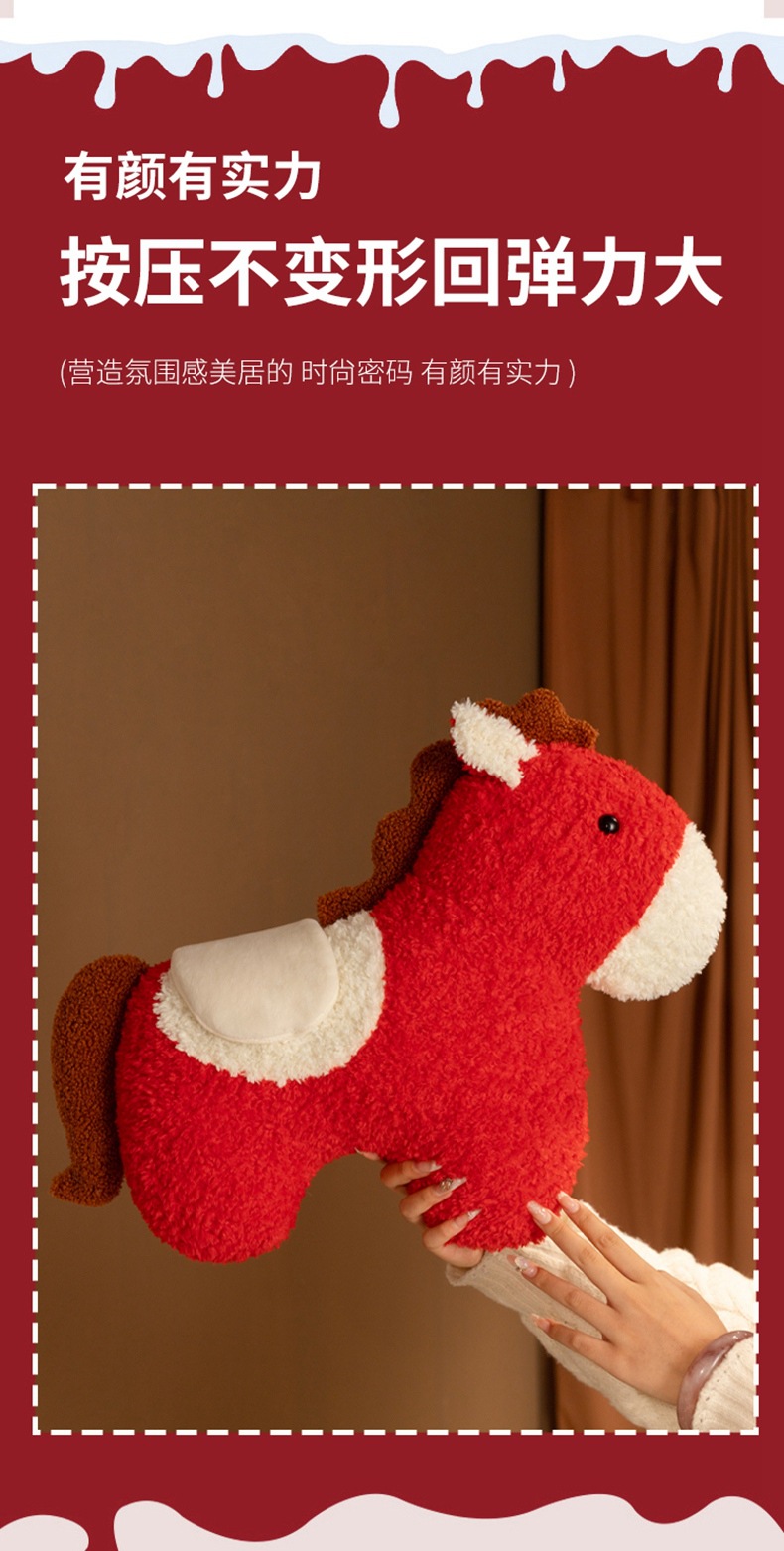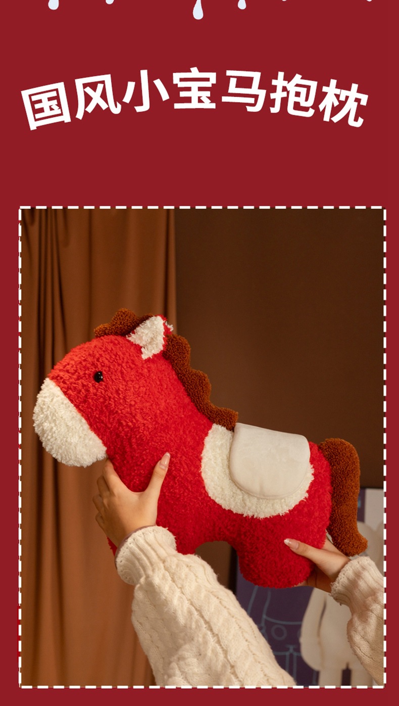跨境马年抱枕异形毛绒玩偶沙发客厅春节装饰摆件国风小宝马靠枕