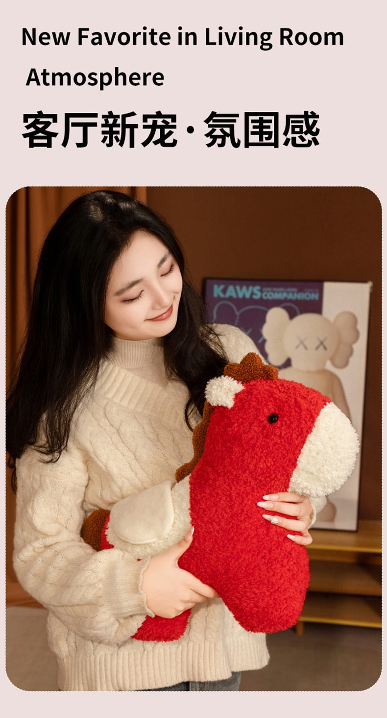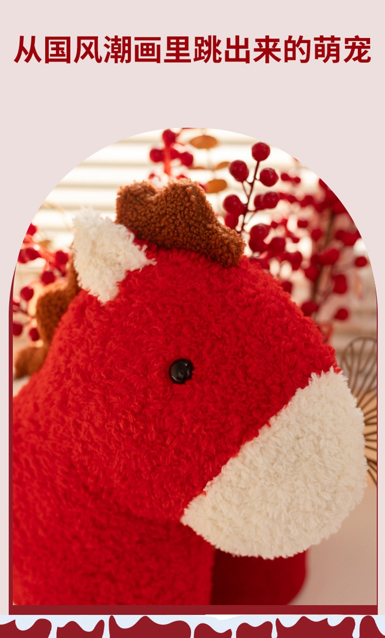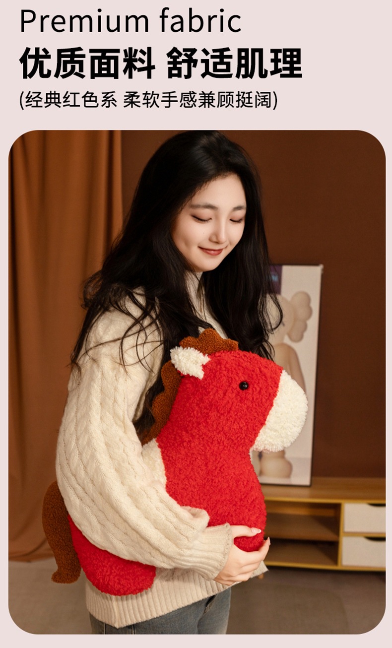 跨境马年抱枕异形毛绒玩偶沙发客厅春节装饰摆件国风小宝马靠枕