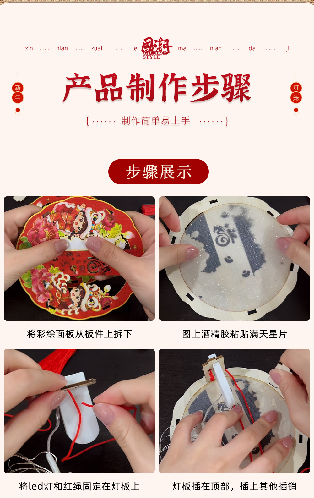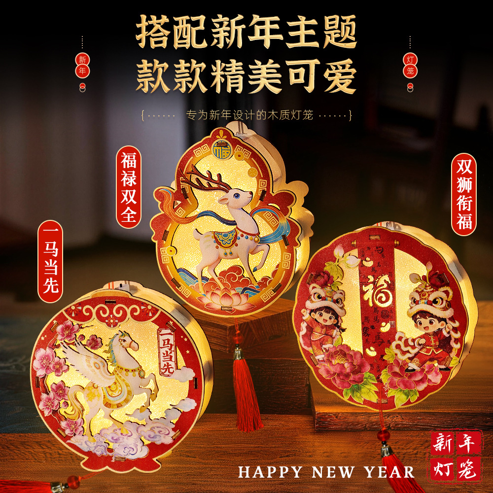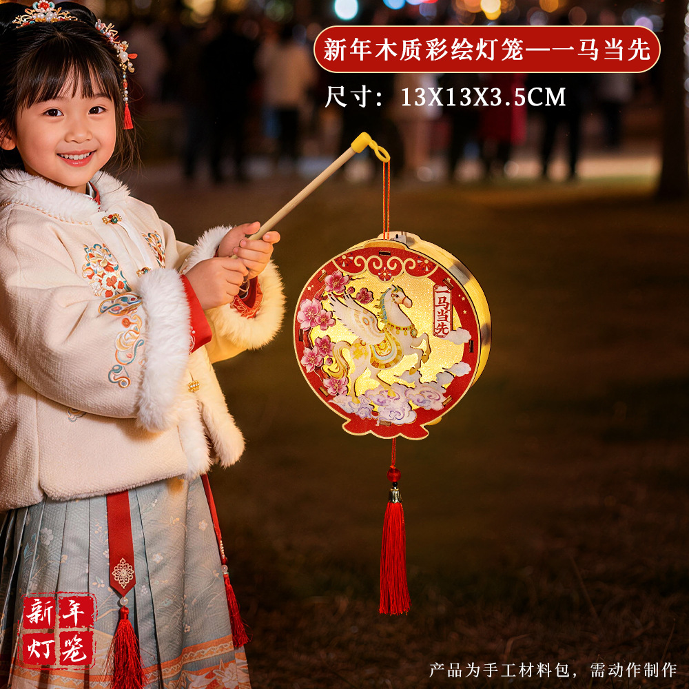2026非遗古风春节元宵灯笼儿童diy制作木质灯材料包马年手工活动