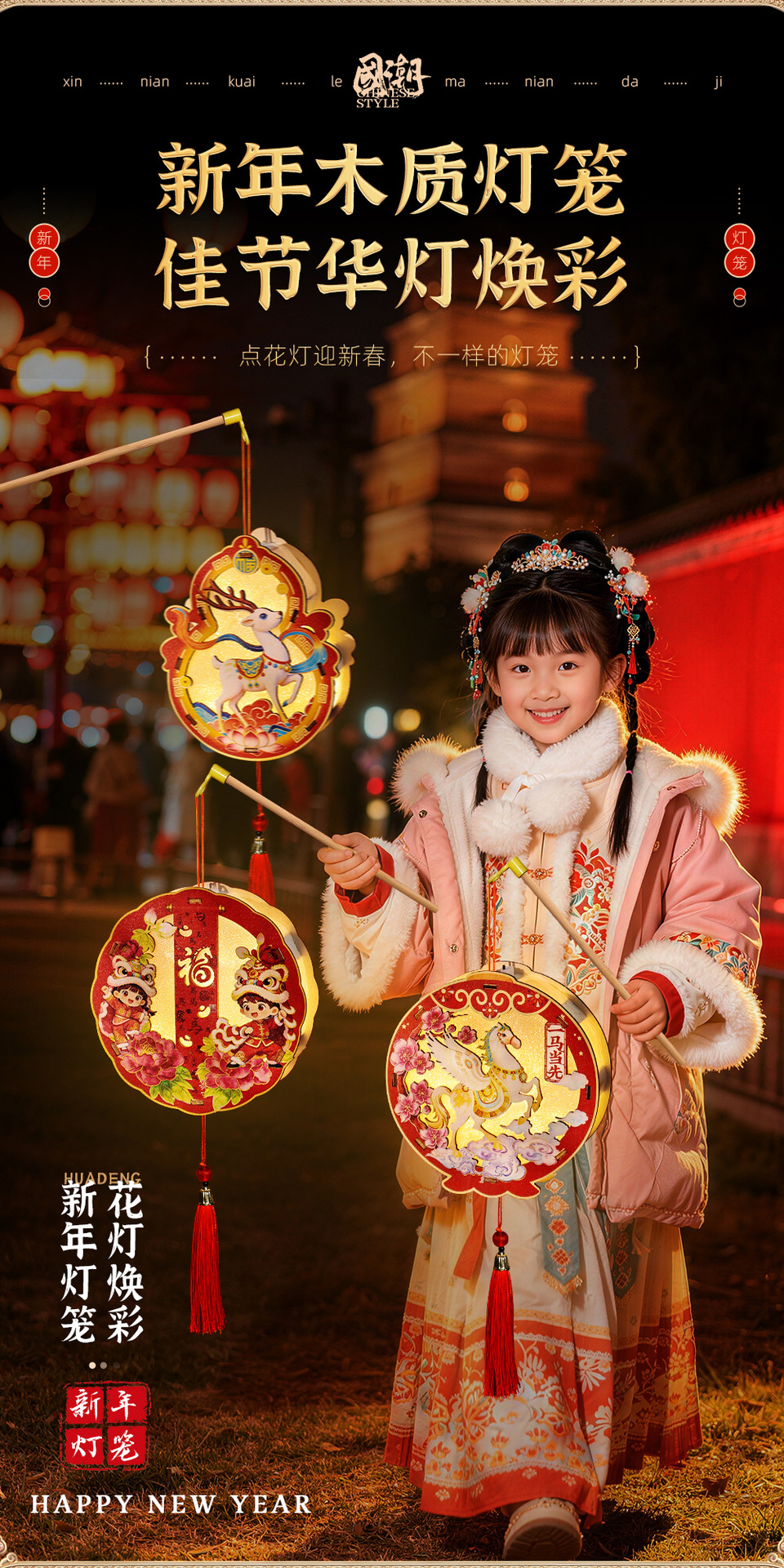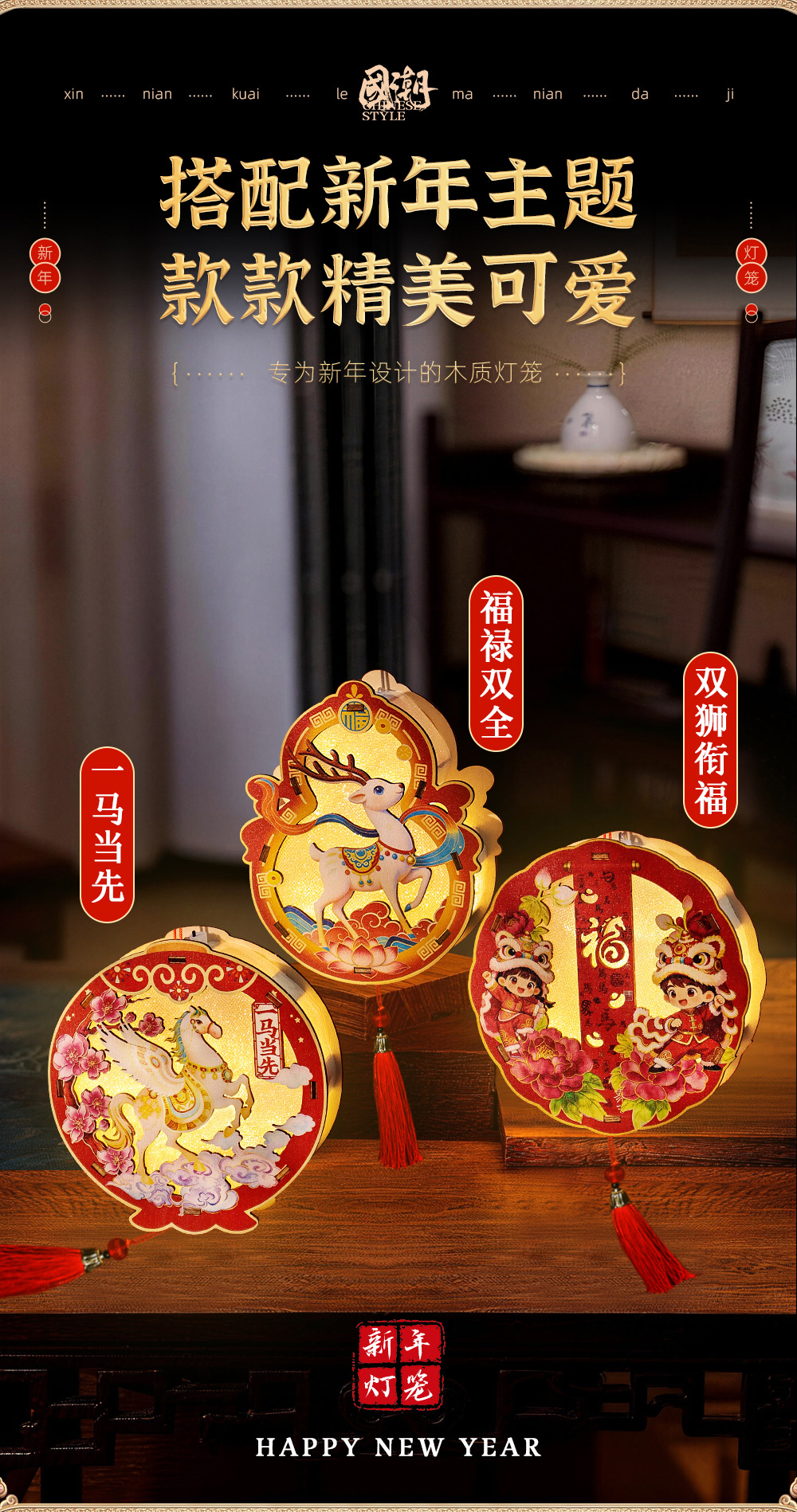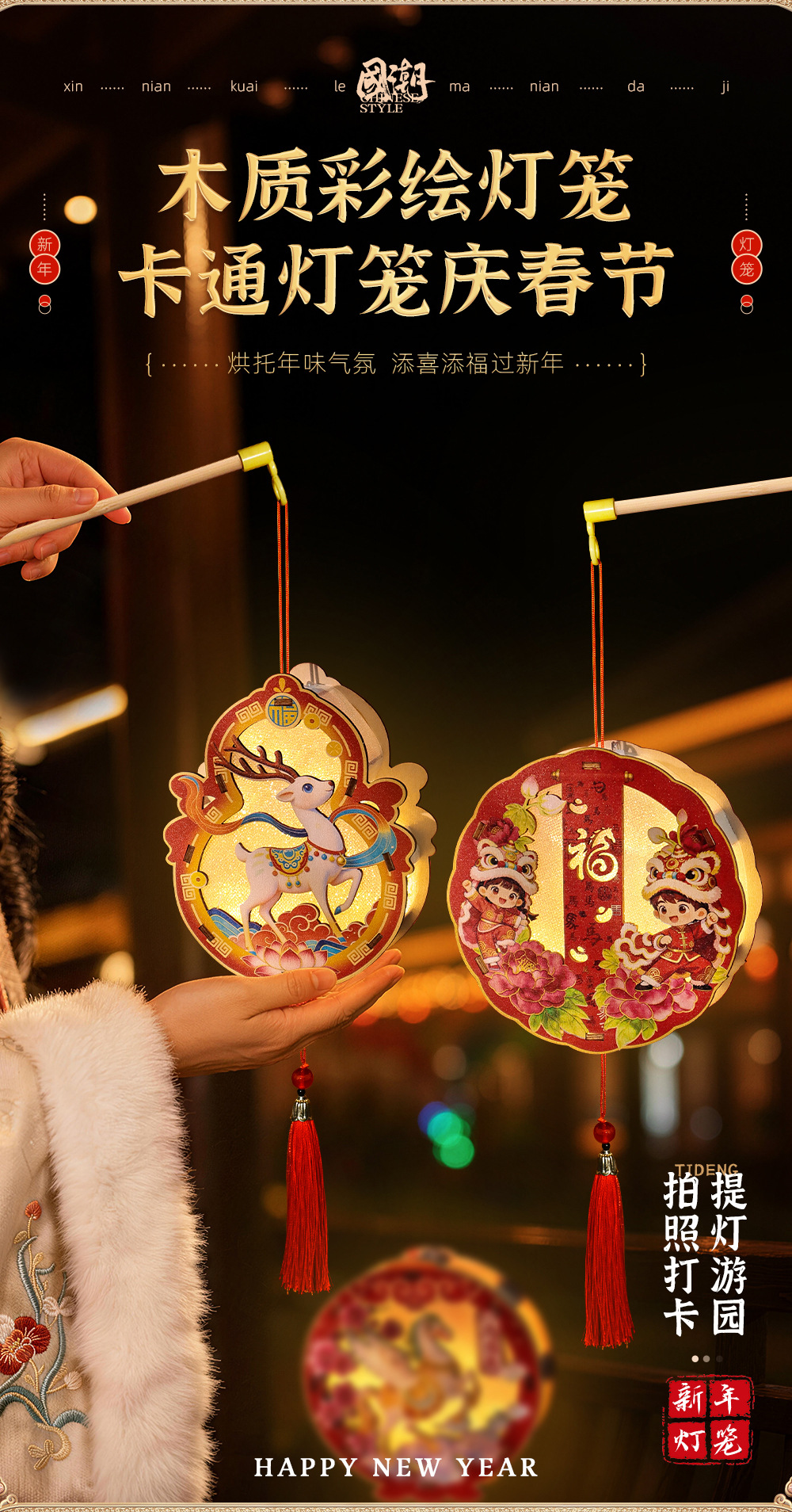 2026非遗古风春节元宵灯笼儿童diy制作木质灯材料包马年手工活动