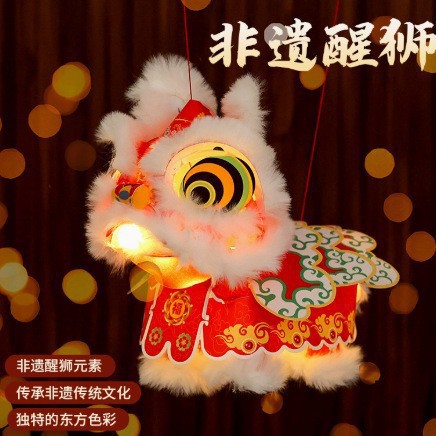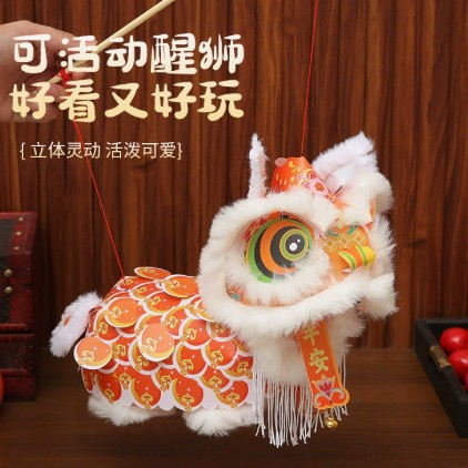【包邮】新春马年瑞宝醒狮灯笼手工DIY材料古风花灯醒狮手提玩偶