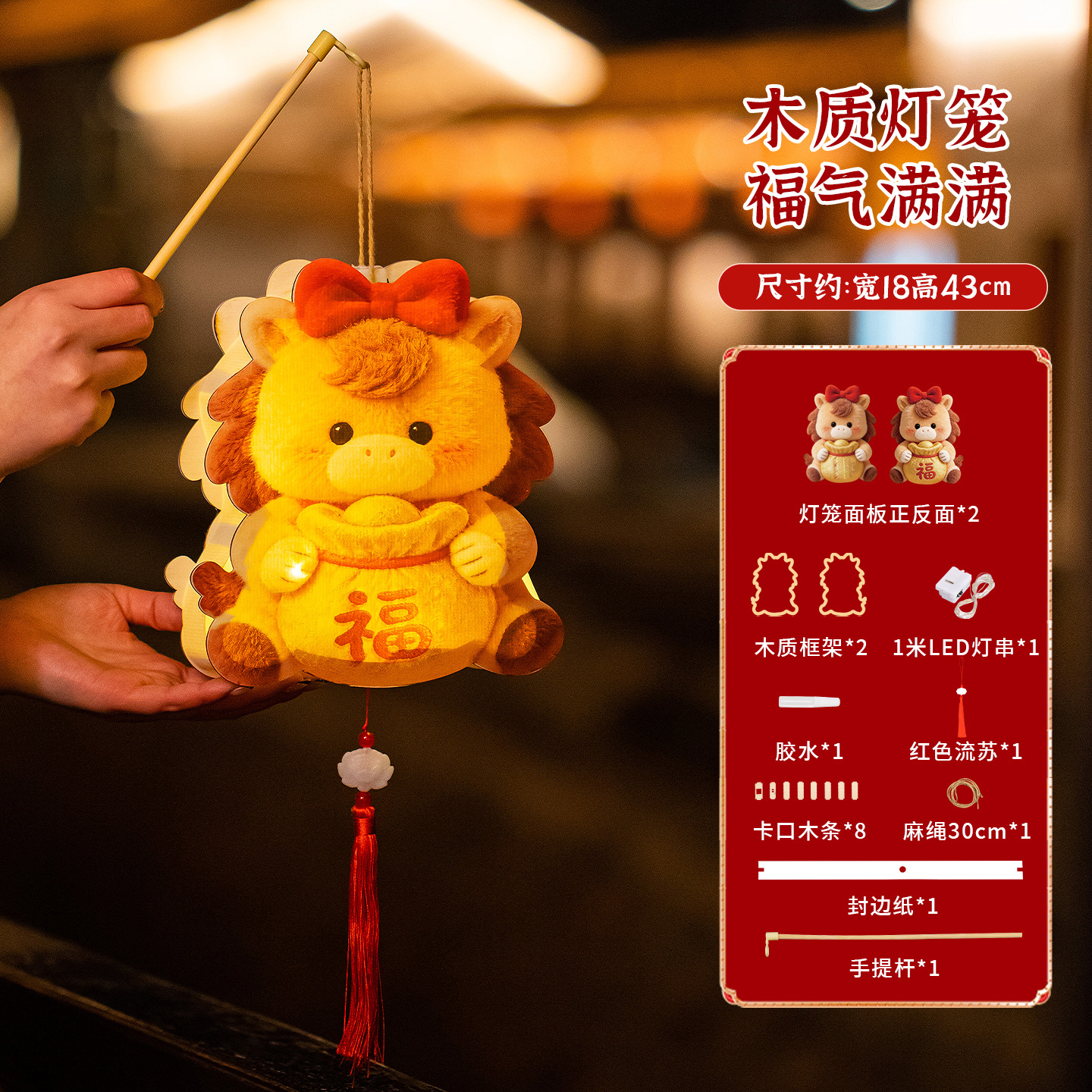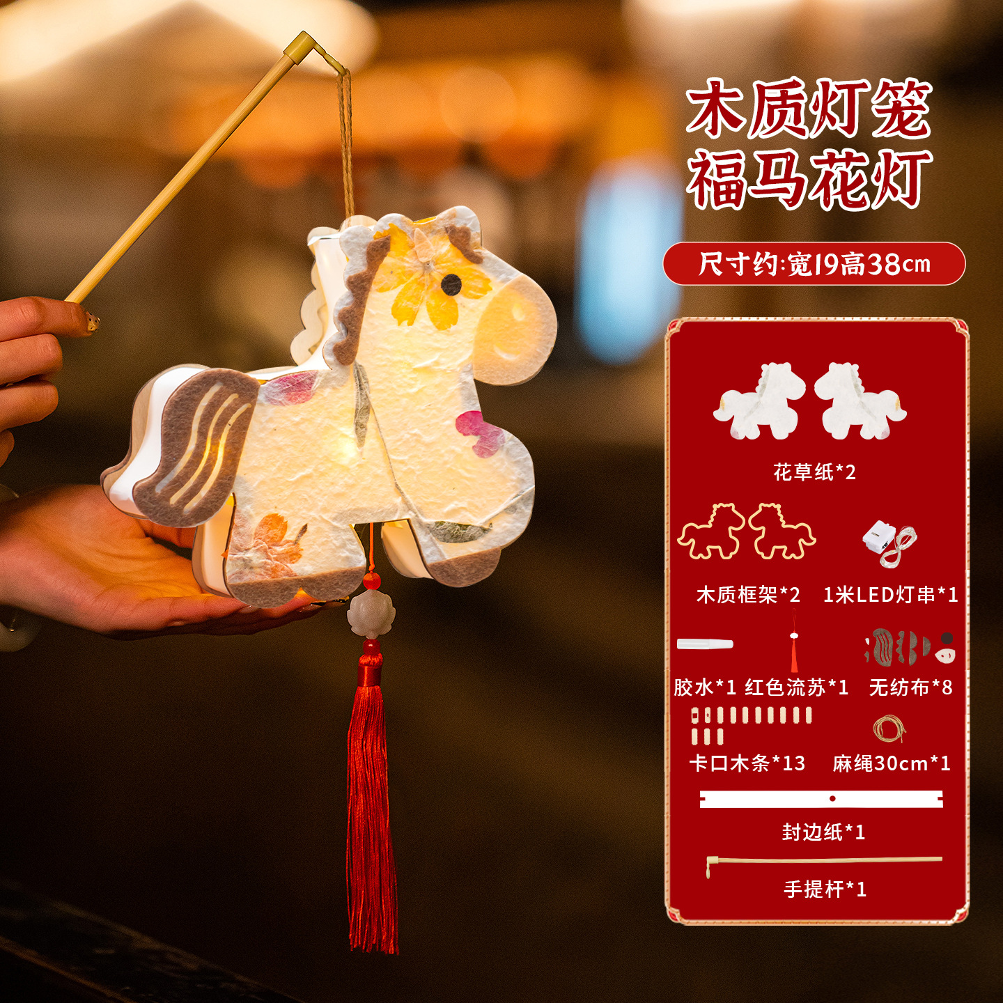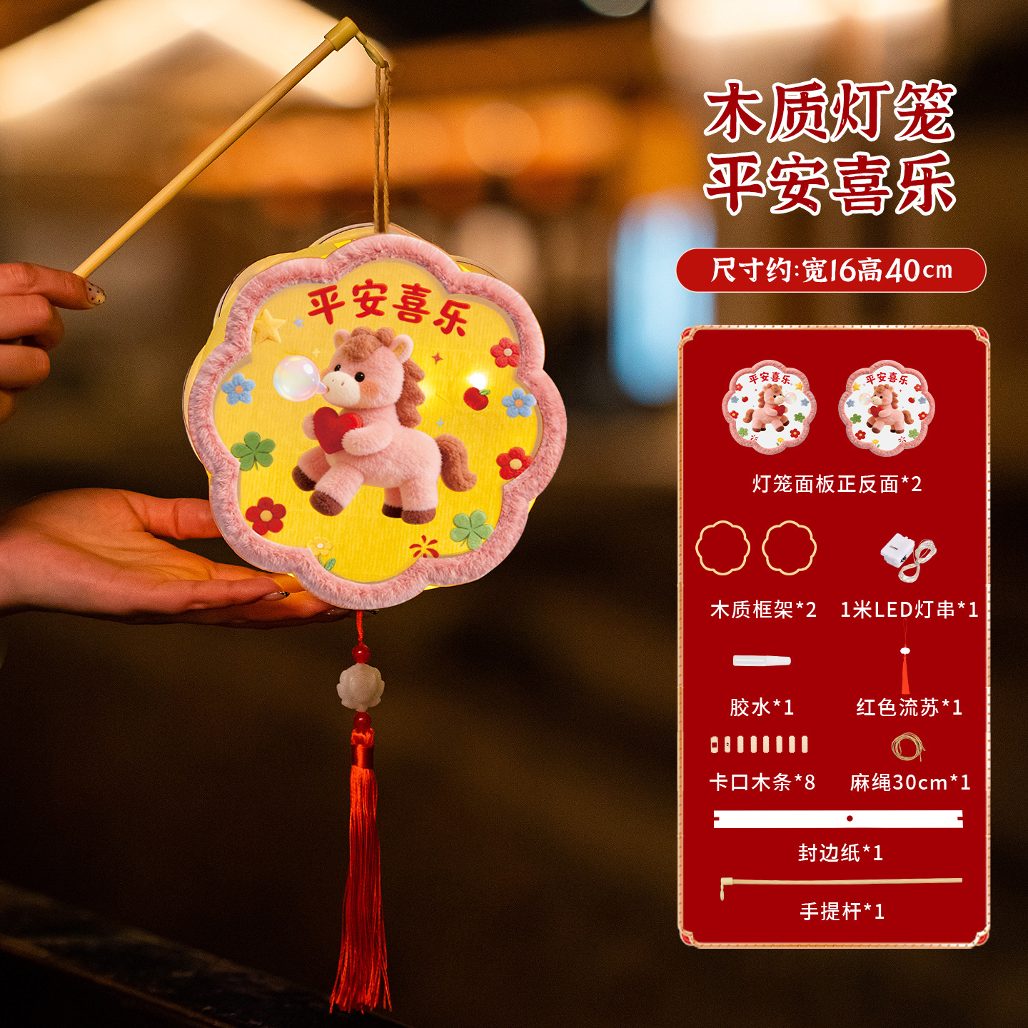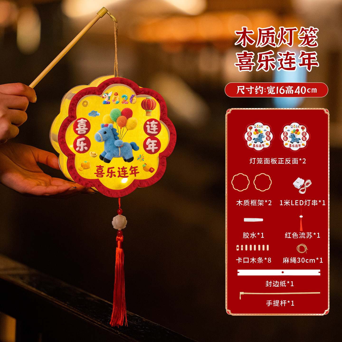 2026马年新年灯笼元宵节幼儿园儿童手工diy材料手提发光花灯拍照