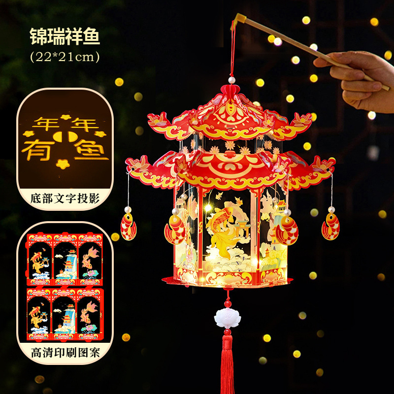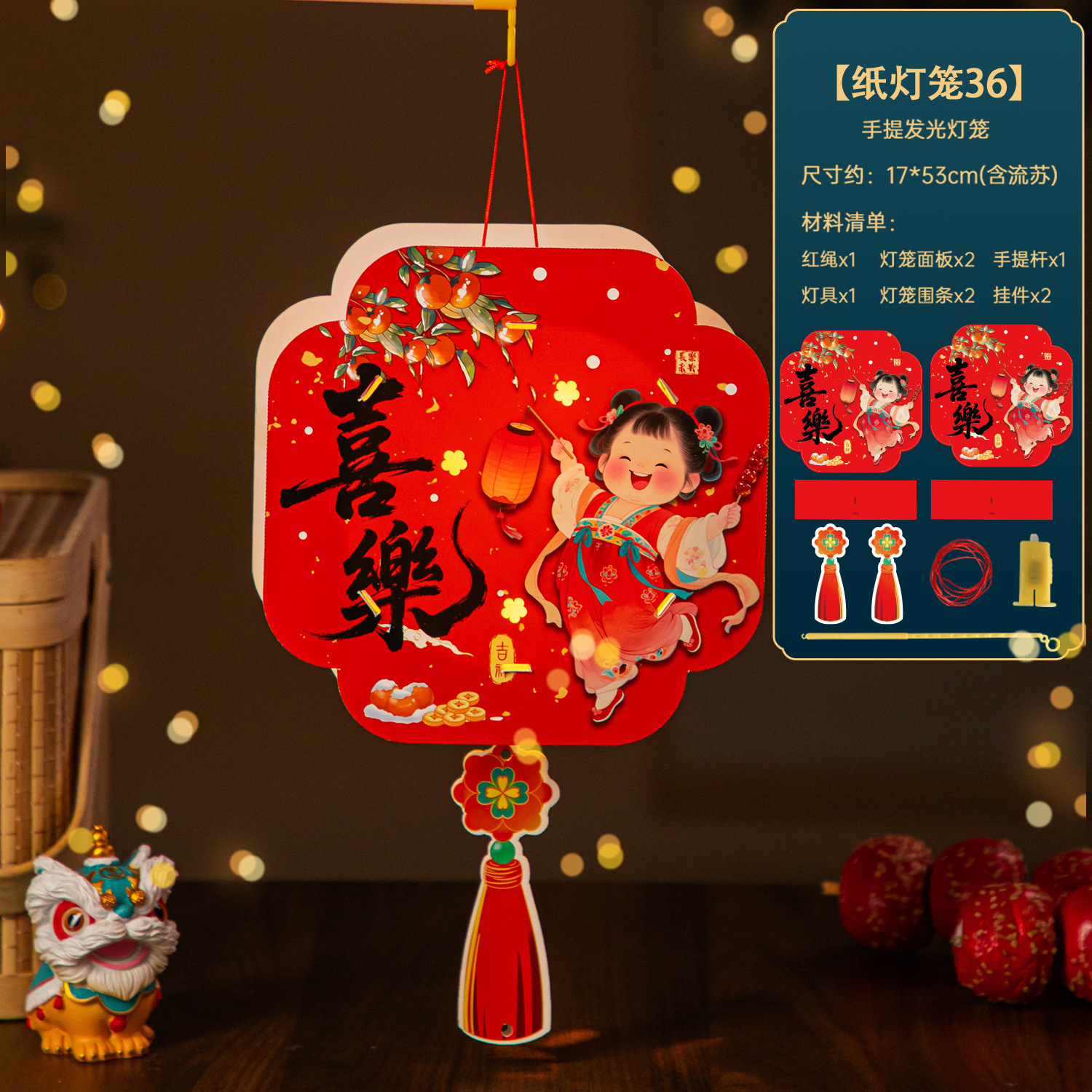 新年春节元宵马年国潮醒狮灯笼儿童手工diy材料古风手提花灯批发