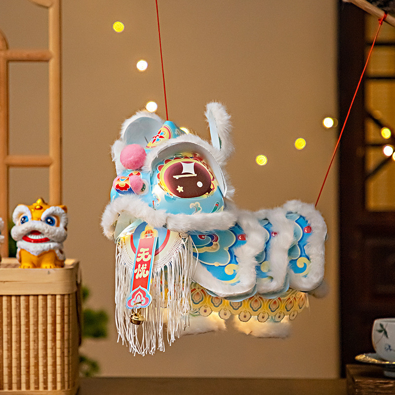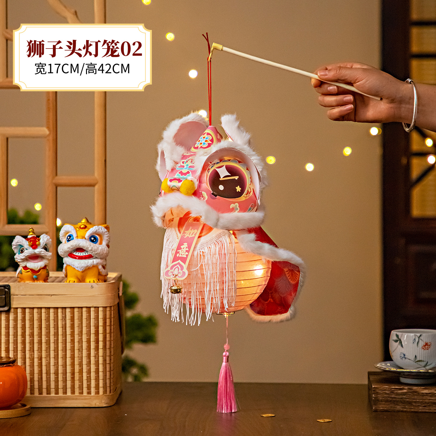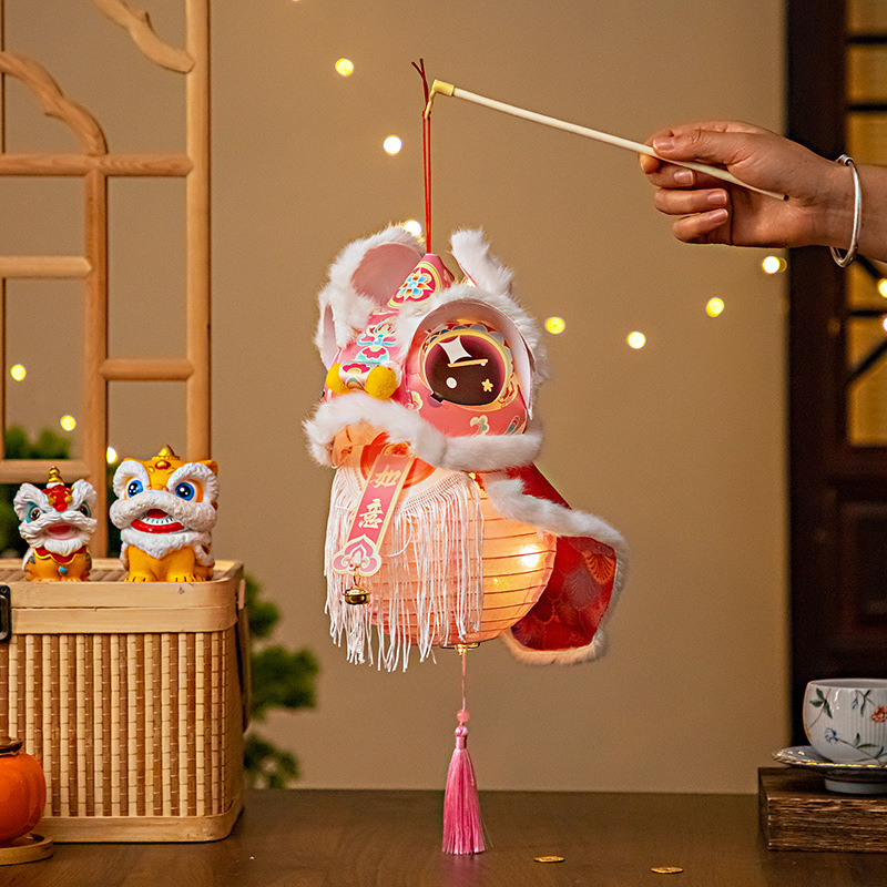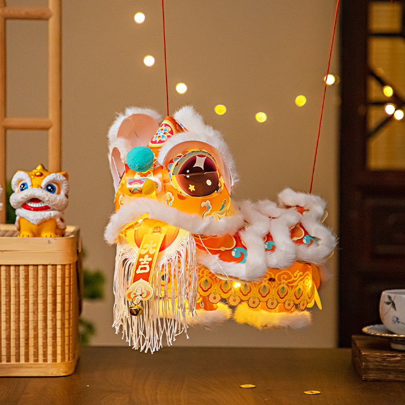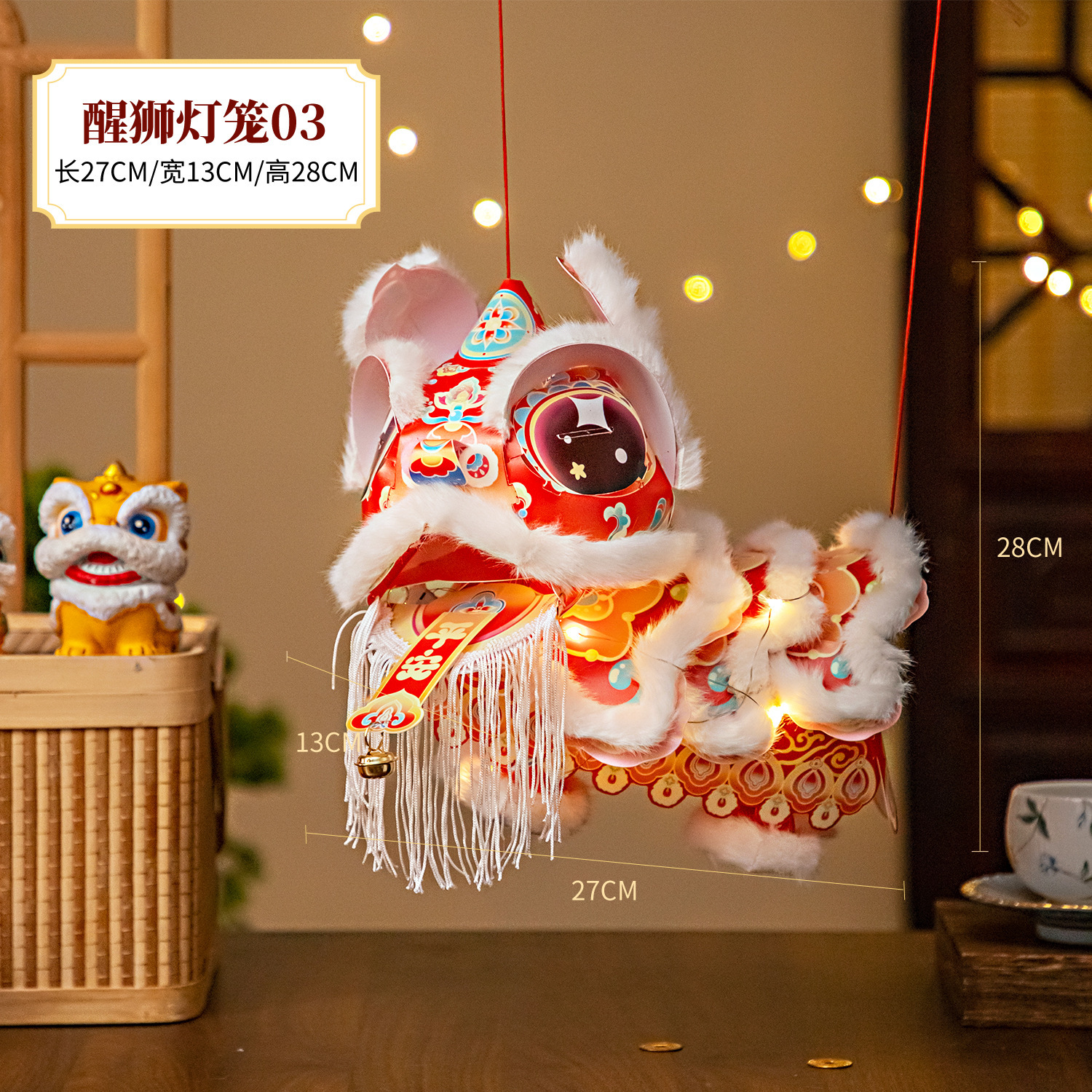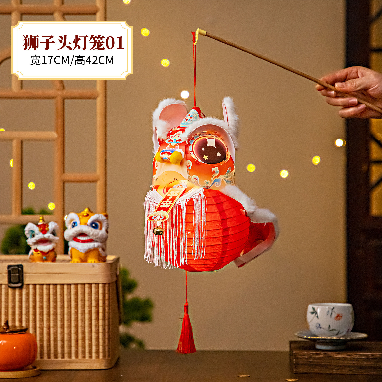 2026马年国潮儿童手工diy发光醒狮灯笼材料包古风舞狮手提花灯