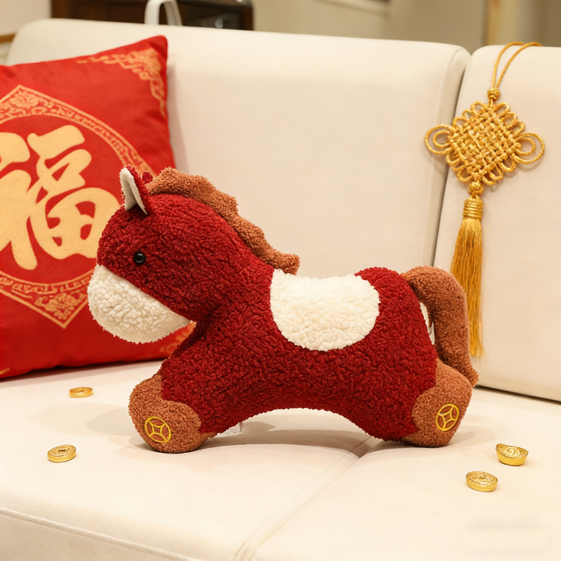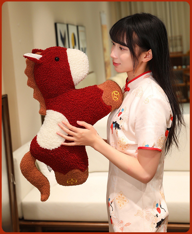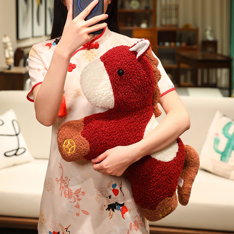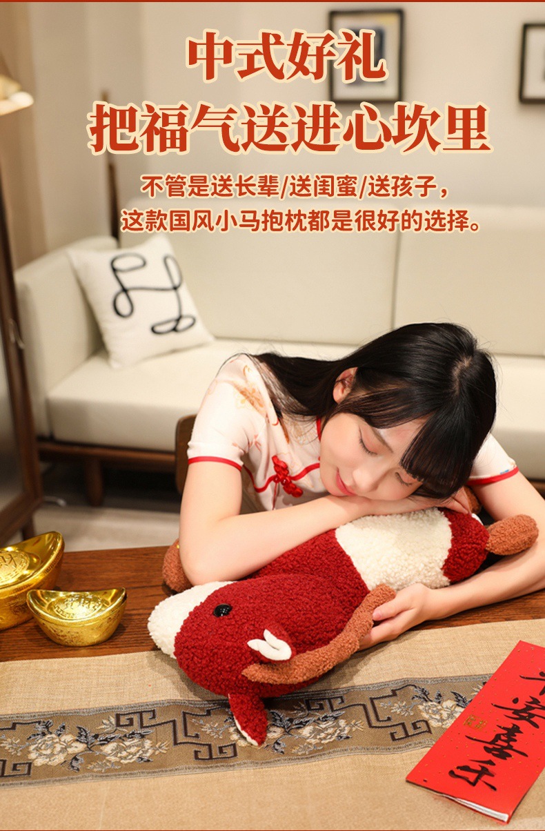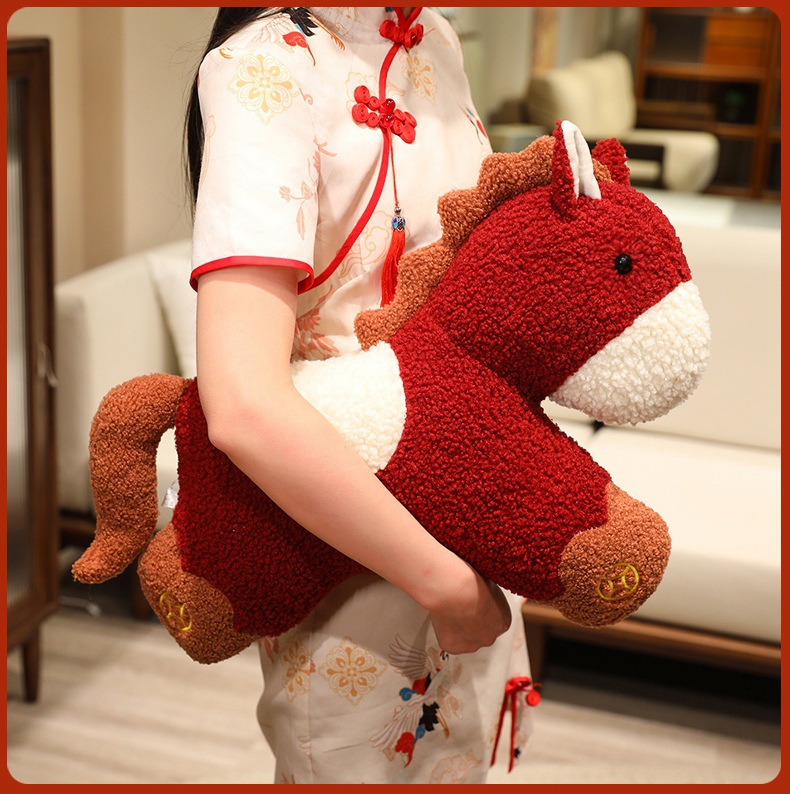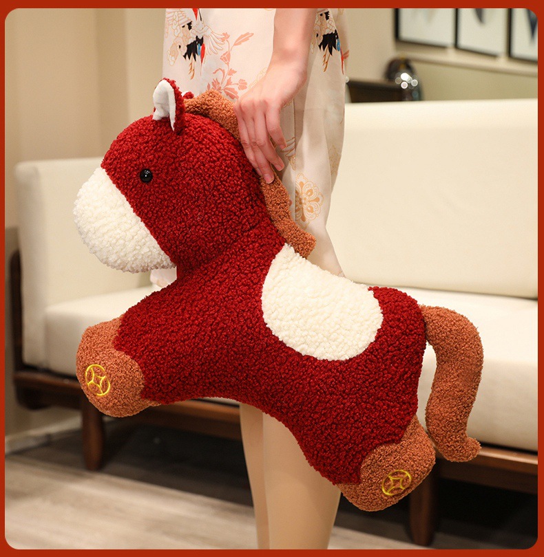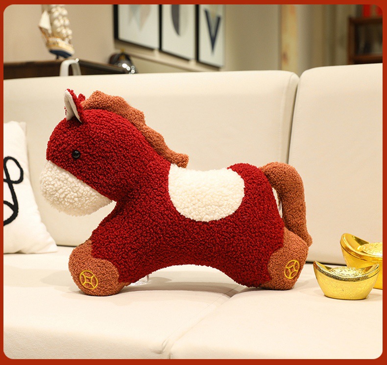新年马年吉祥物创意小马玩偶抱枕沙发客厅毛绒靠垫春节装饰小摆件
