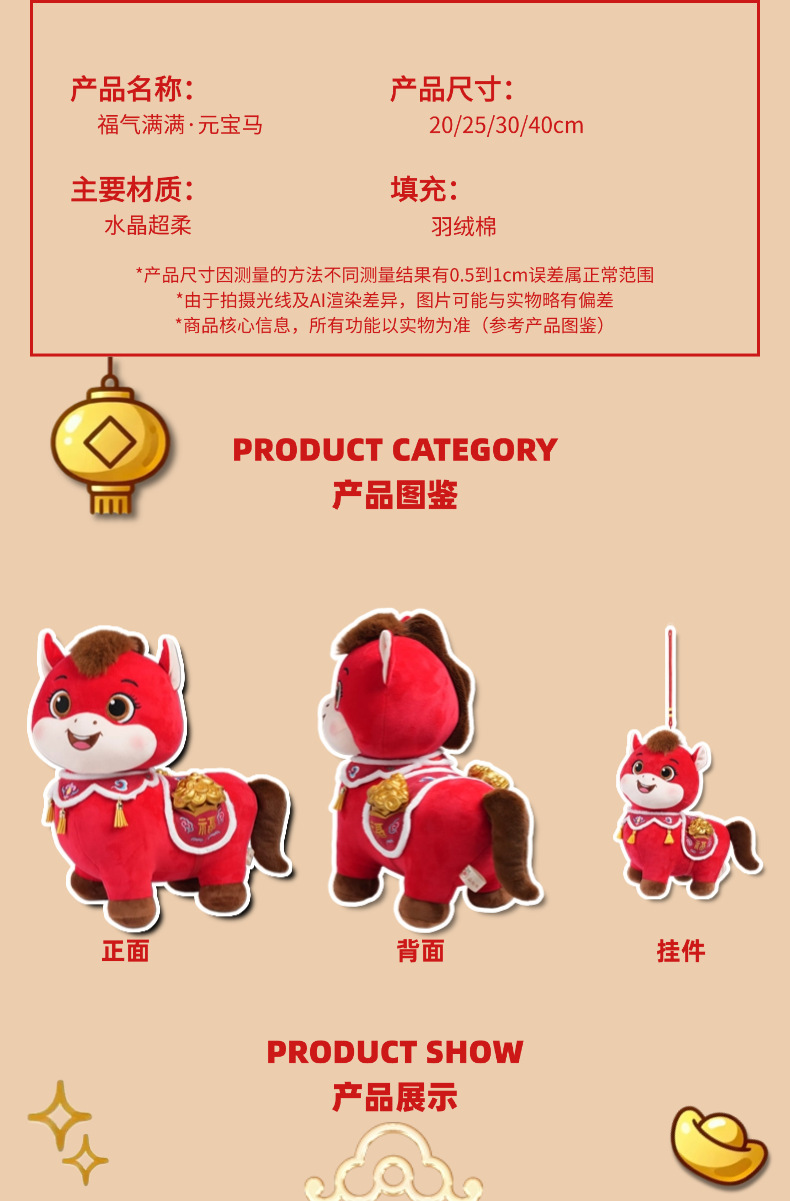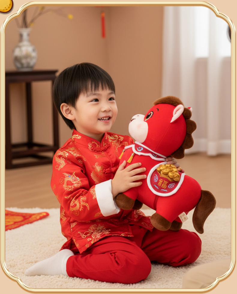 福气满满元宝马玩偶生肖小马毛绒玩具年会新年礼品马年吉祥物公仔