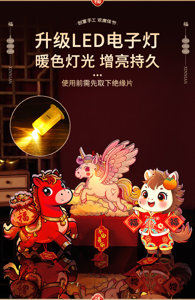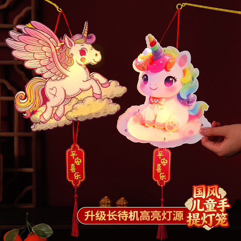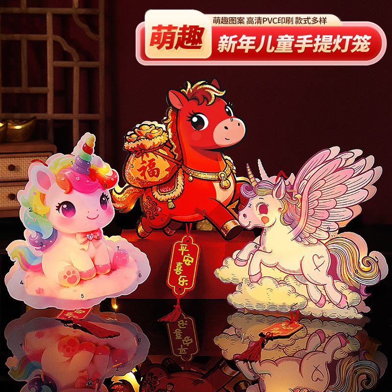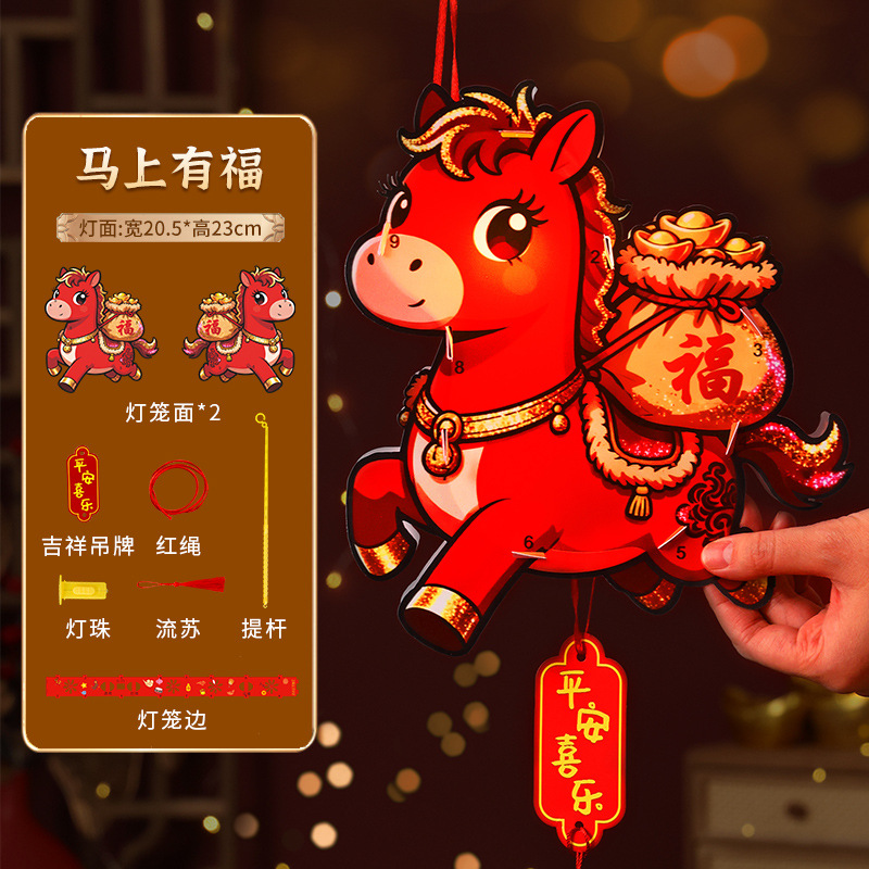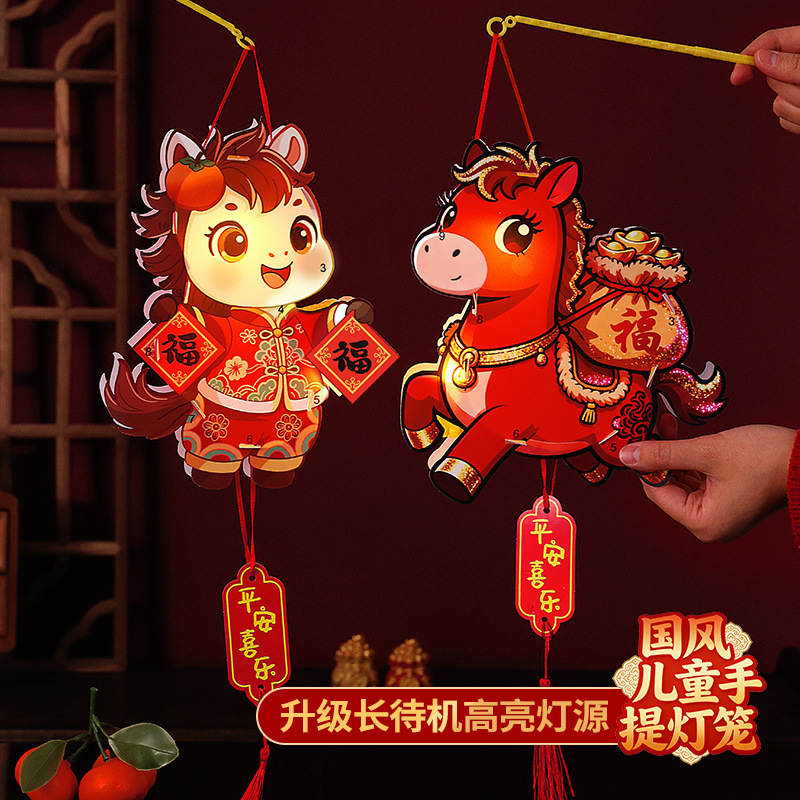 2026元旦新年马年灯笼手提发光花灯儿童卡通手工diy装饰宫灯挂饰