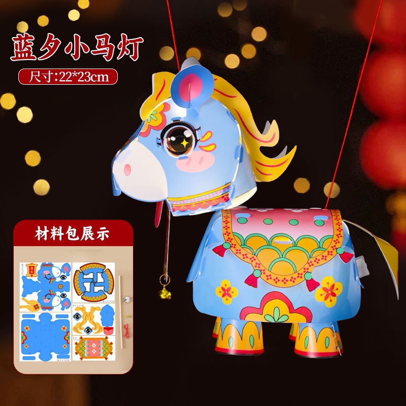 2026新款马年新年元宵节醒狮灯笼儿童手工diy手提发光舞狮子花灯