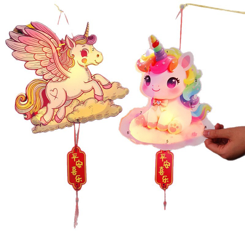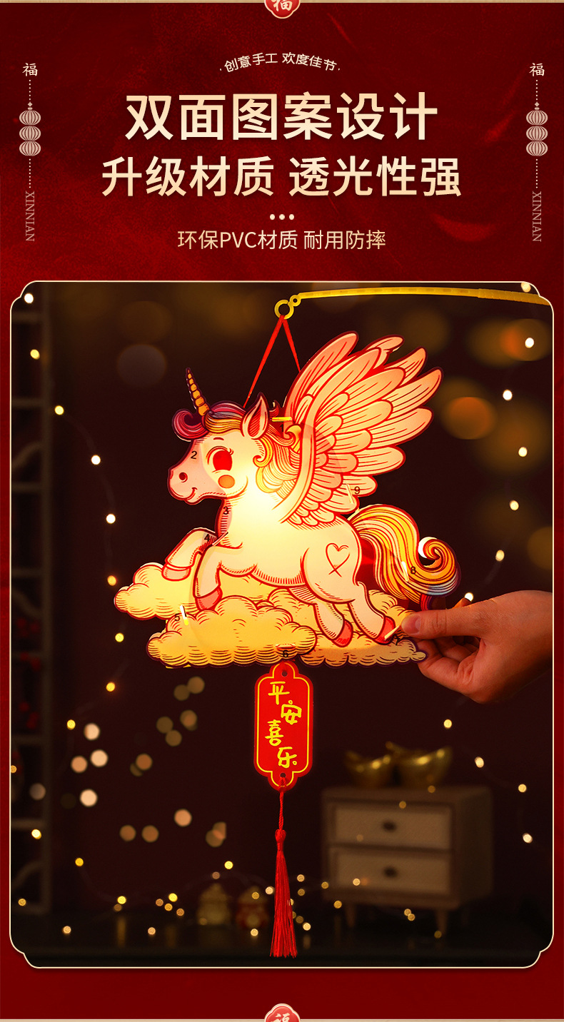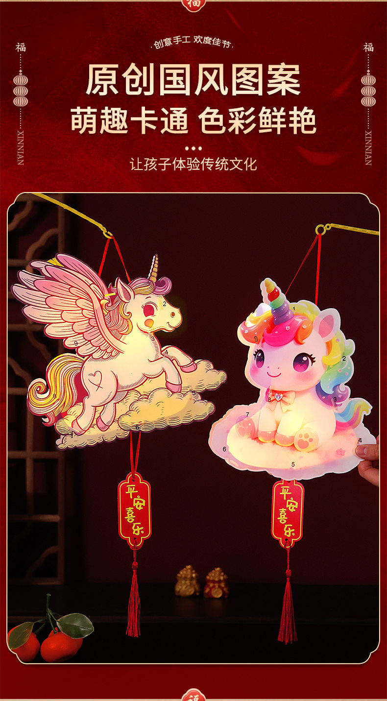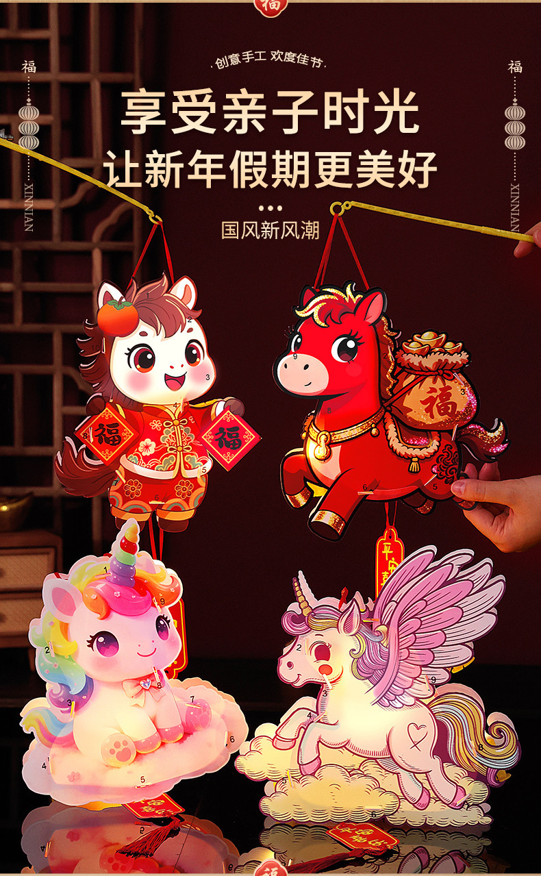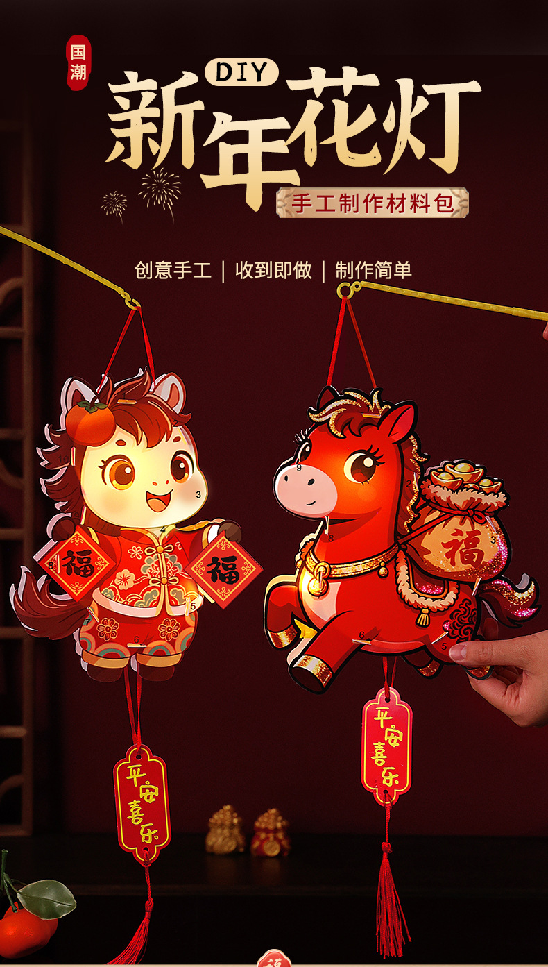2026新年元旦卡通马年灯笼儿童春节手提花灯手工diy材料制作发光