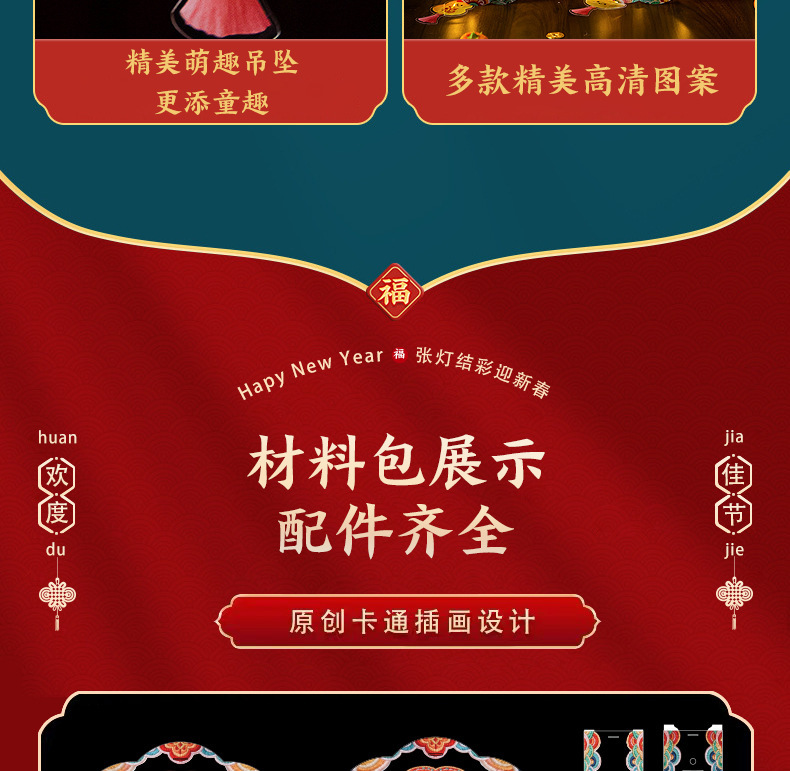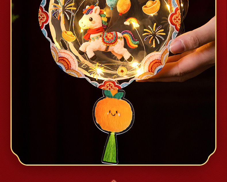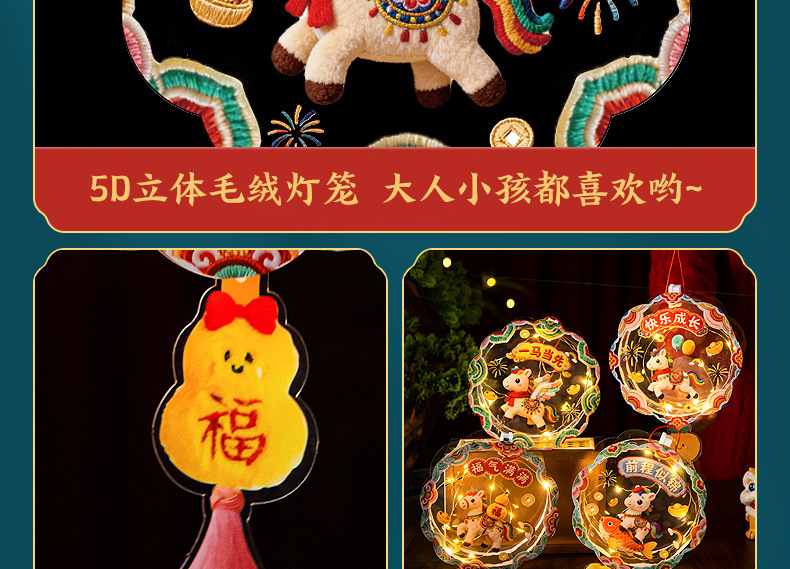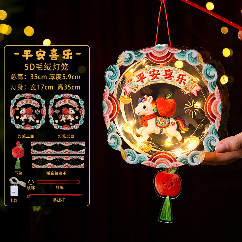 马年新款5D立体毛绒灯笼手提发光花灯手工diy材料包过年儿童卡通