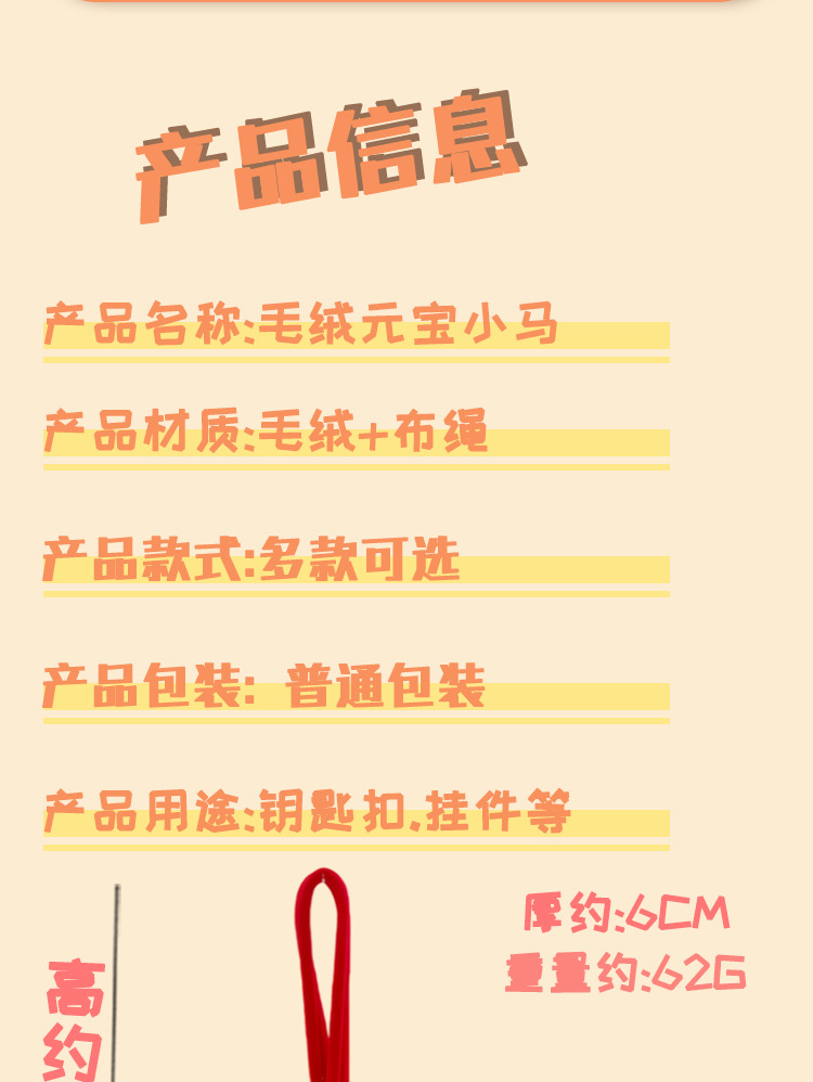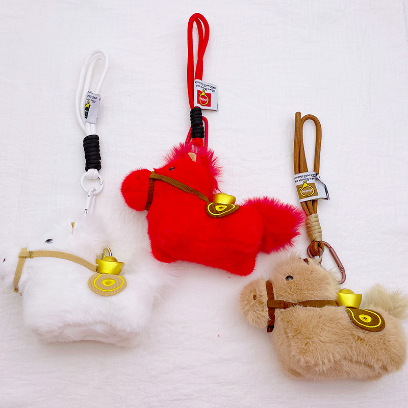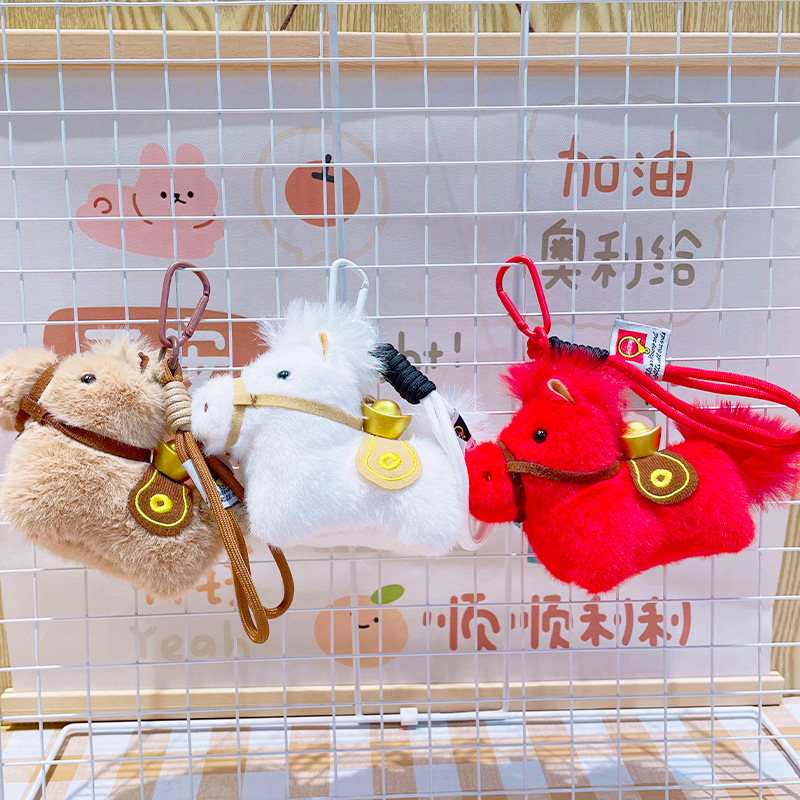 2026马上有钱挂件金元宝小马钥匙扣马年吉祥物毛绒公仔小挂饰批发