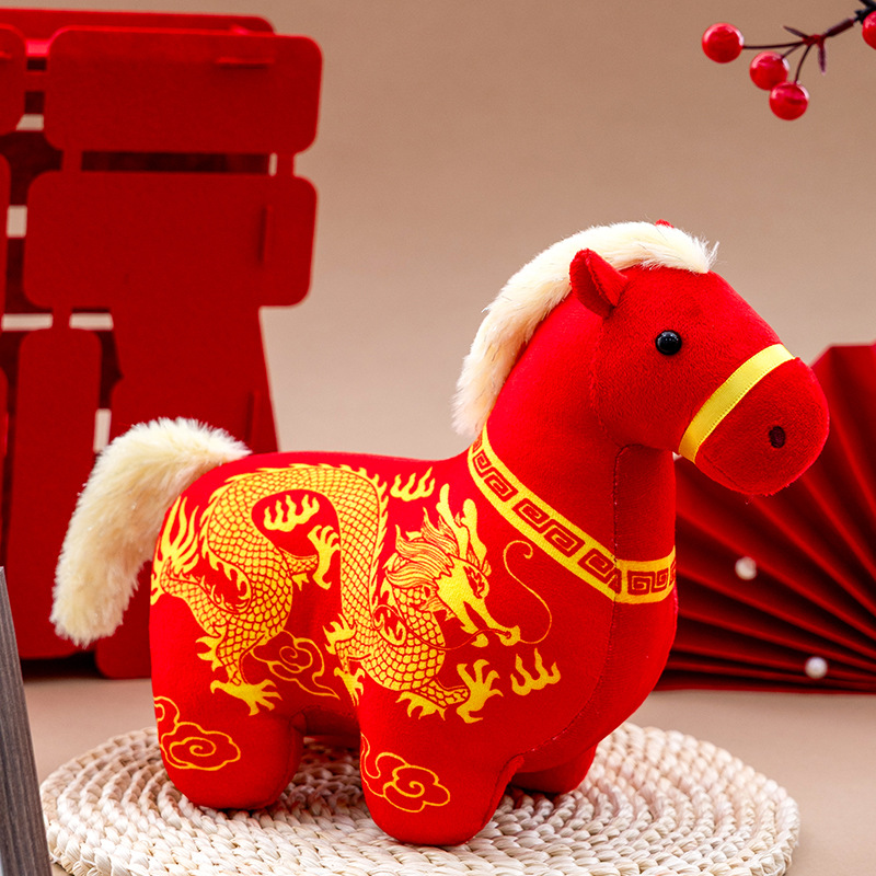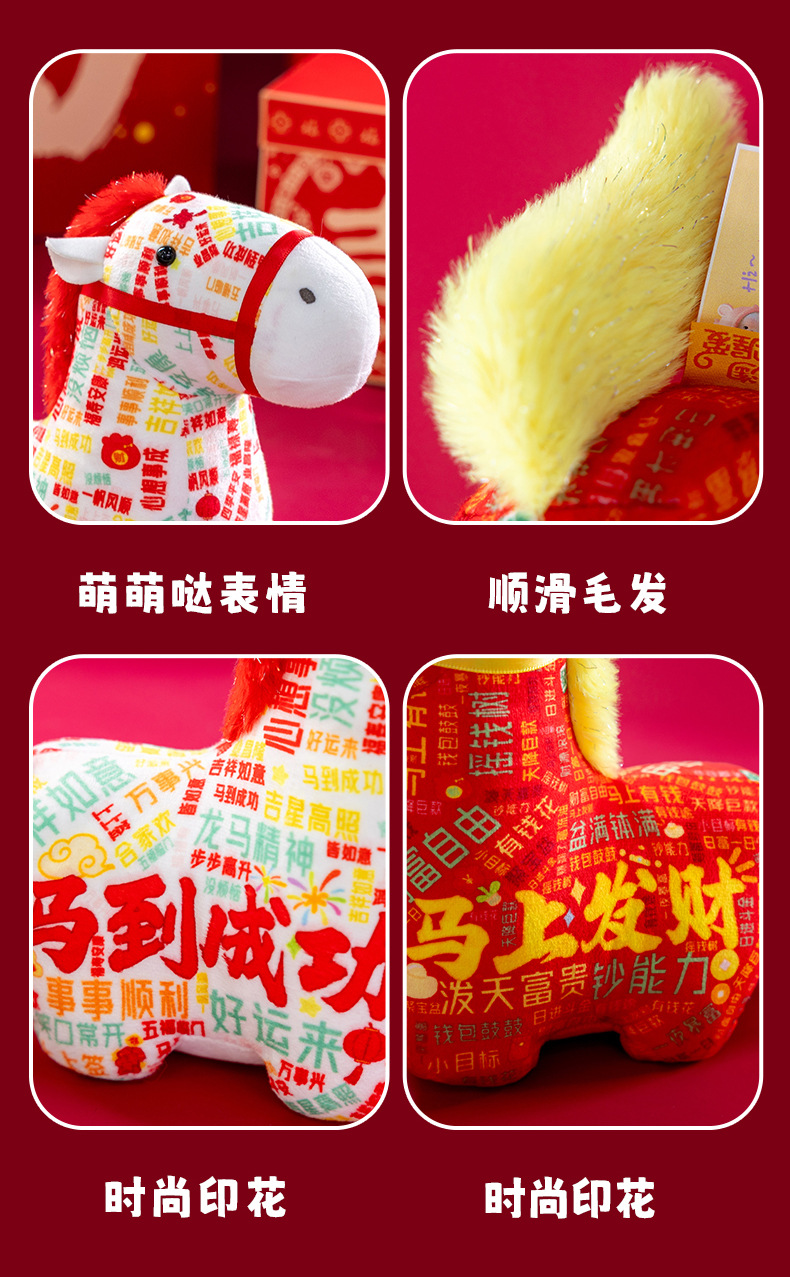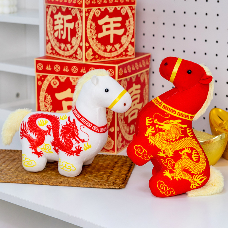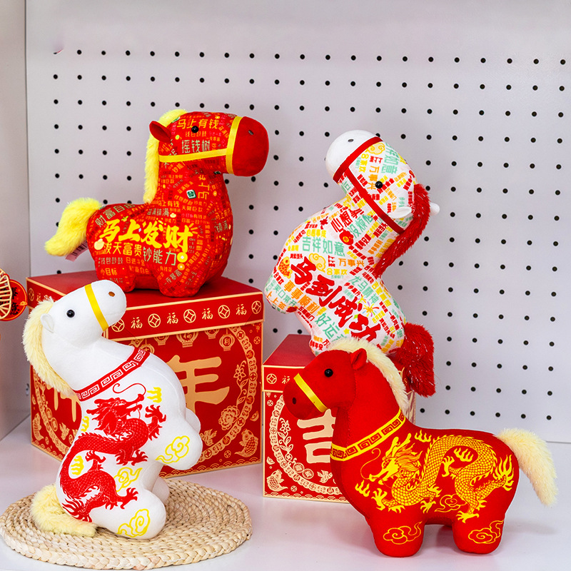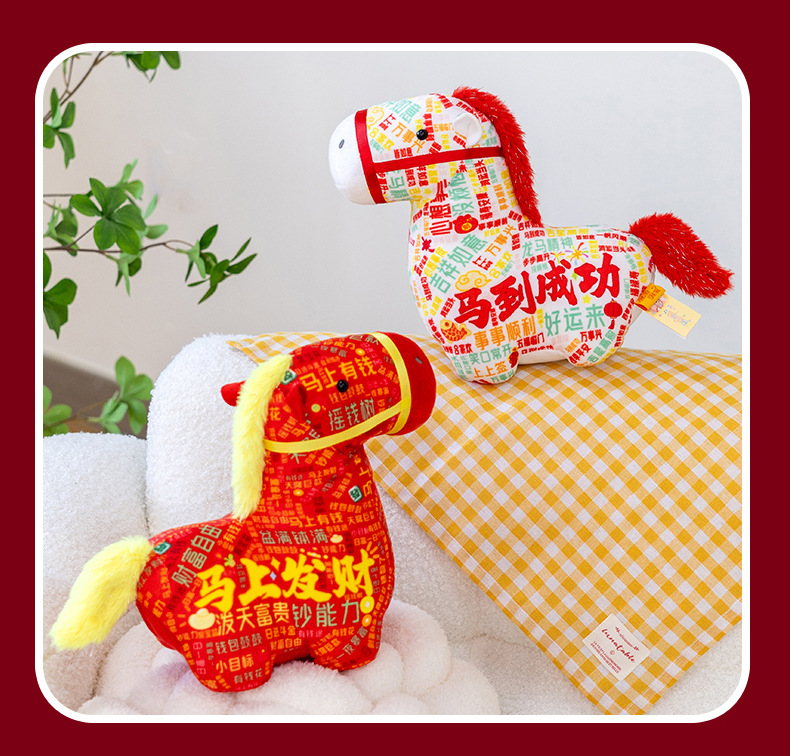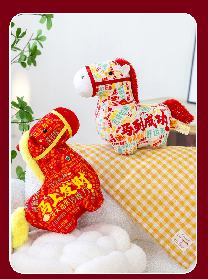 正版新品印花小马公仔2026马年吉祥物摆件马到成功生肖马国风玩偶