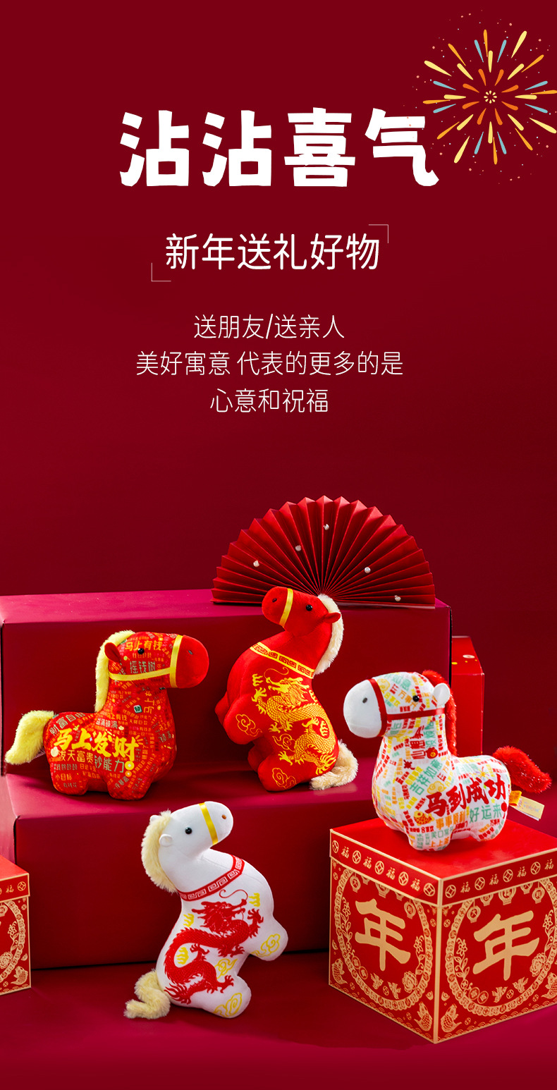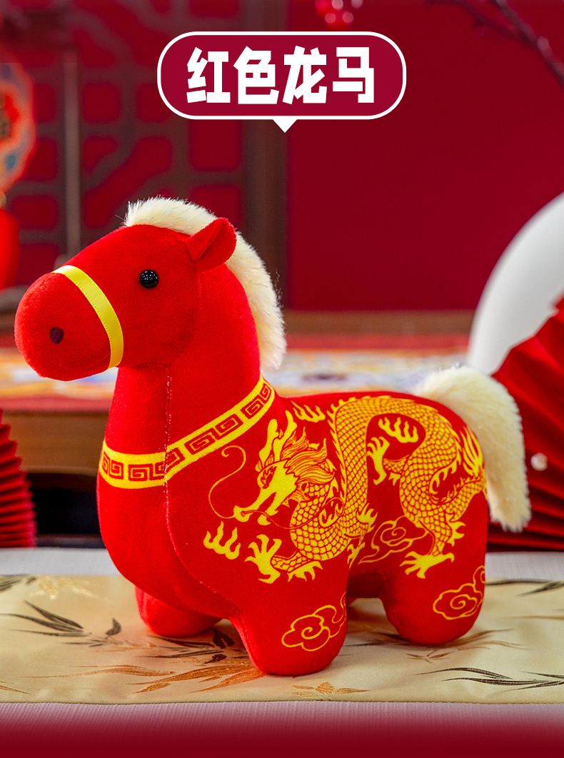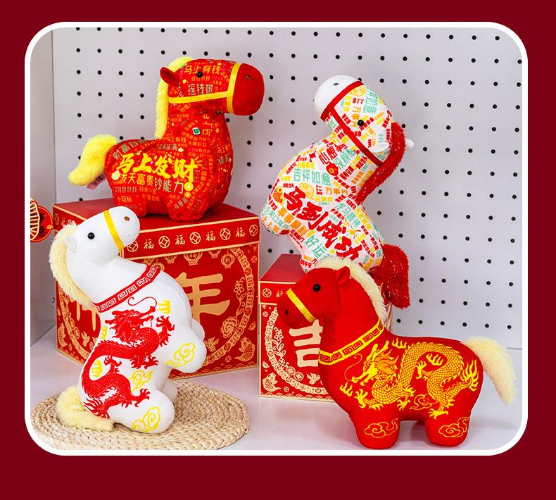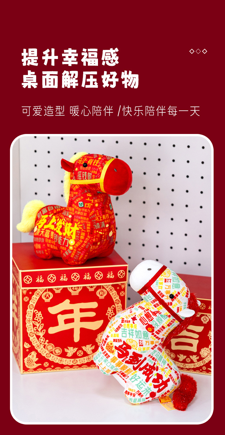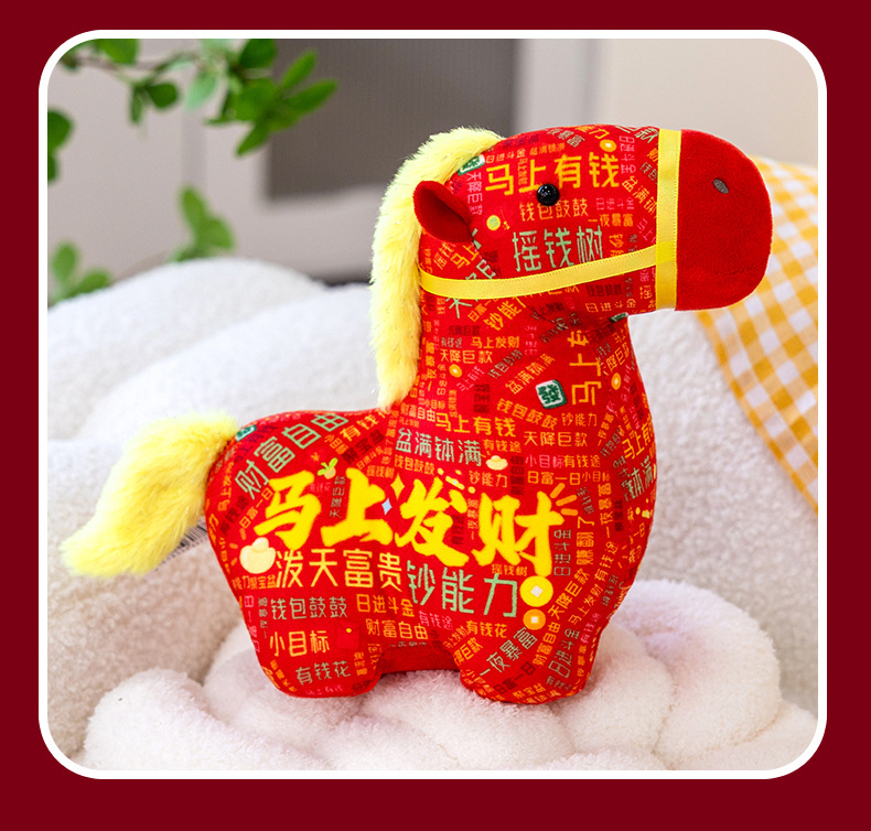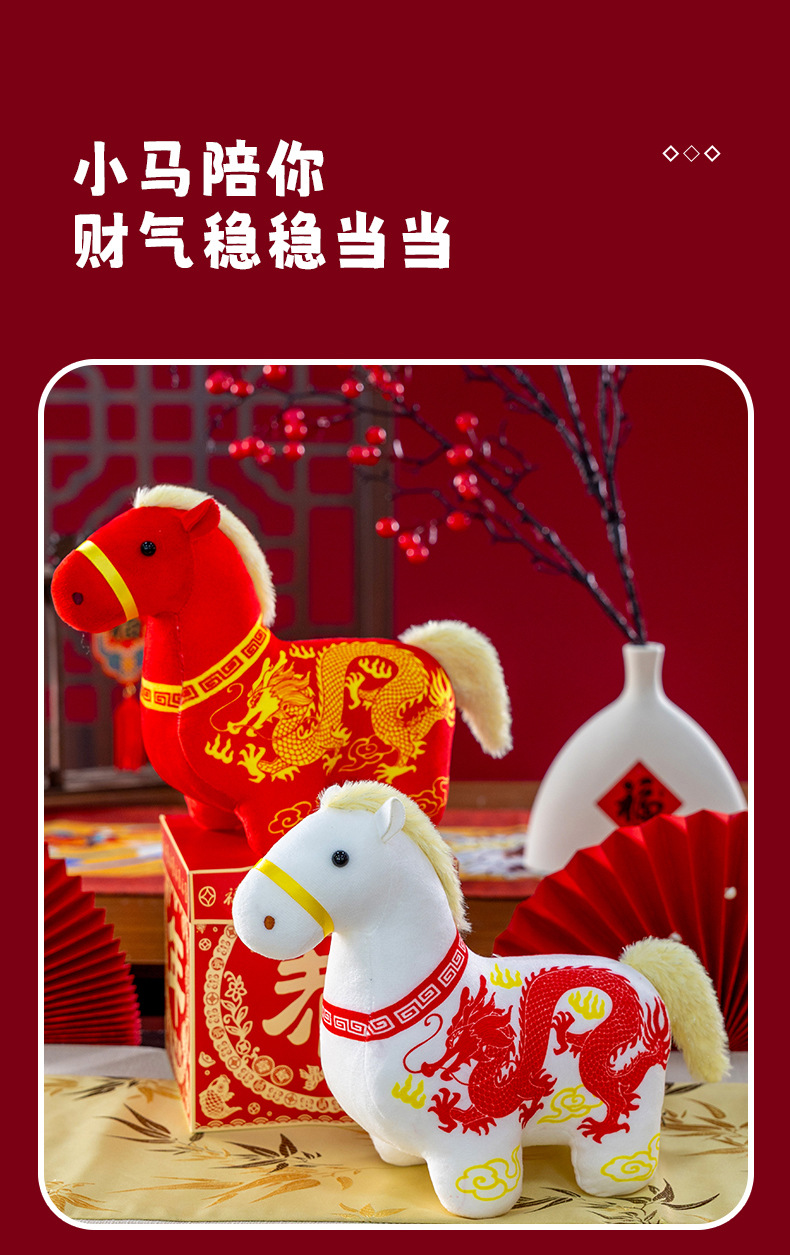 正版新品印花小马公仔2026马年吉祥物摆件马到成功生肖马国风玩偶