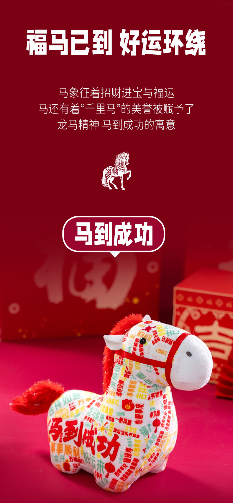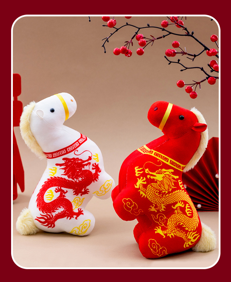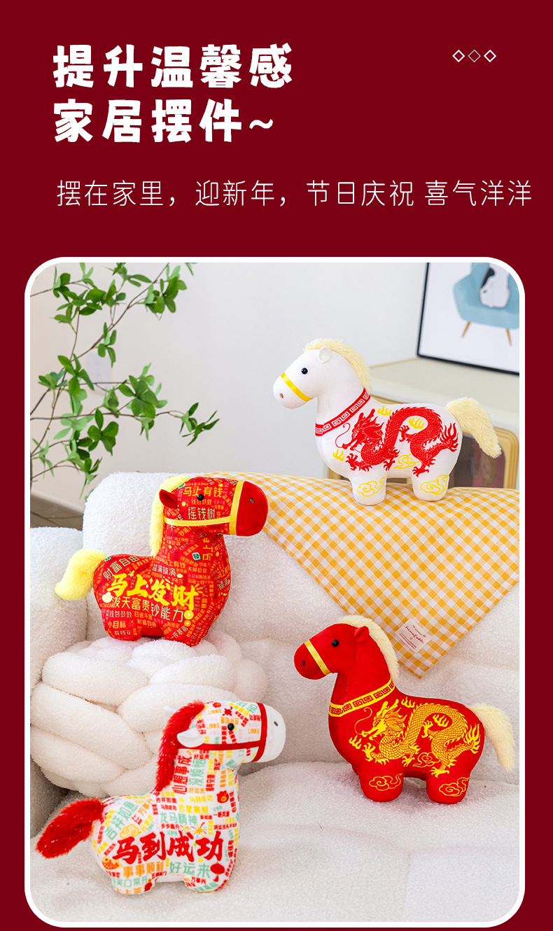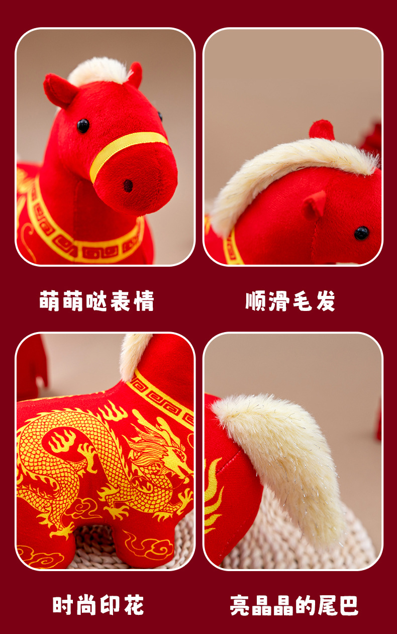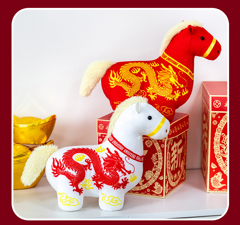 正版新品印花小马公仔2026马年吉祥物摆件马到成功生肖马国风玩偶