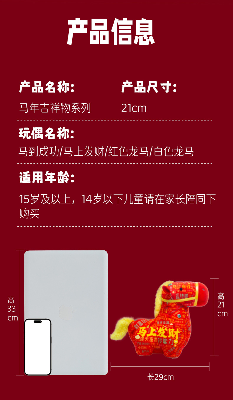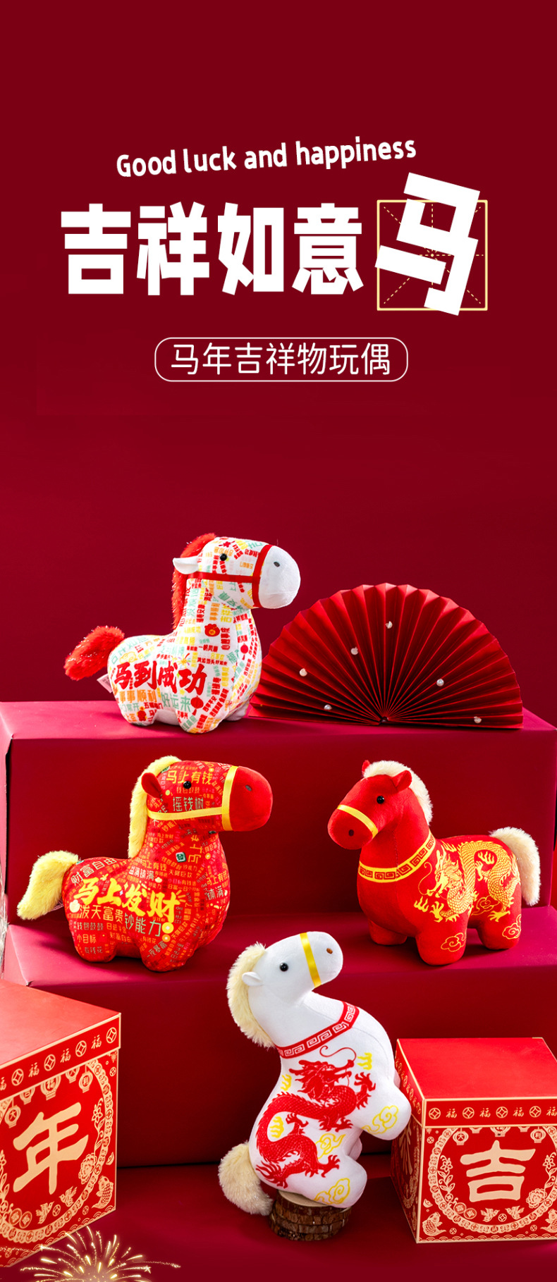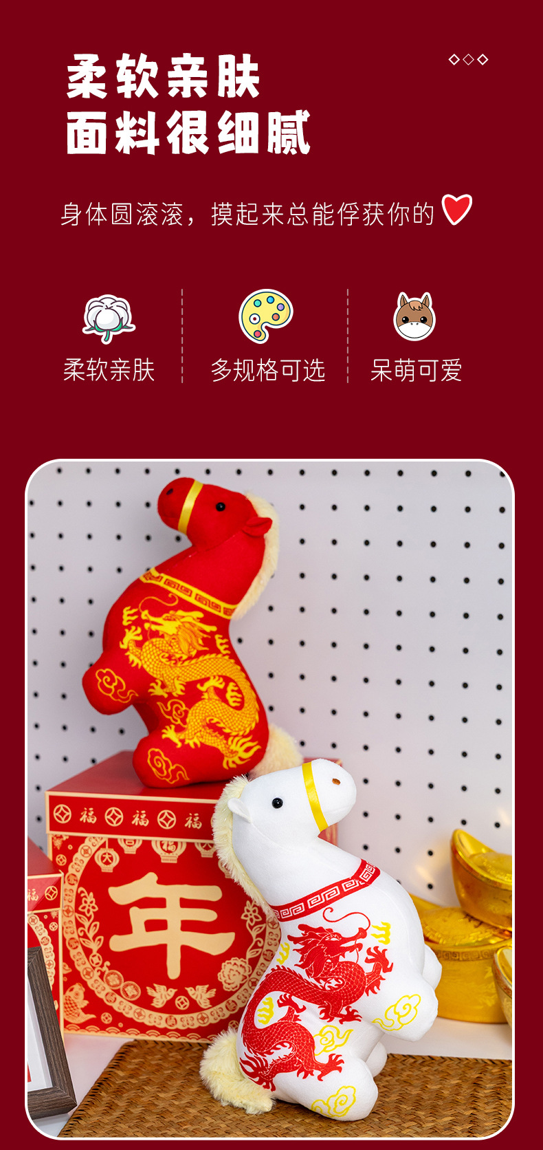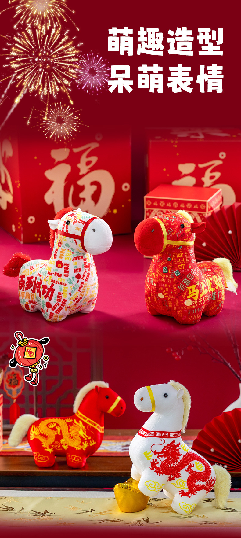 正版新品印花小马公仔2026马年吉祥物摆件马到成功生肖马国风玩偶