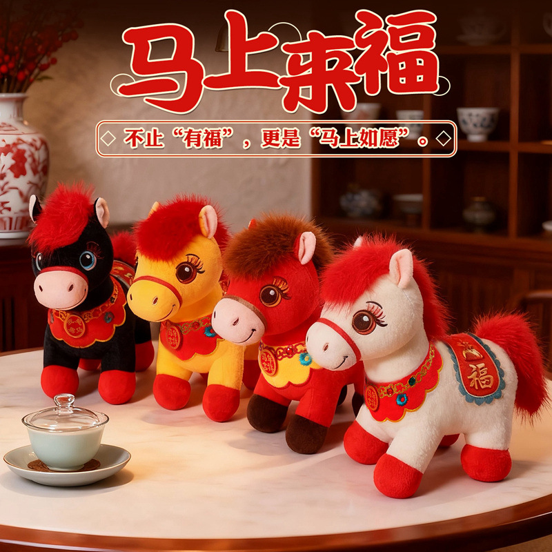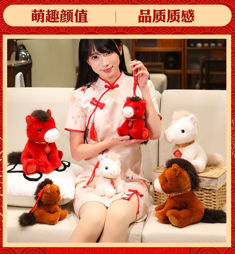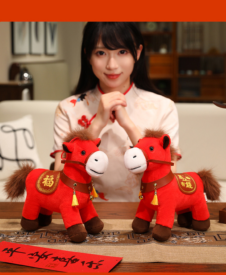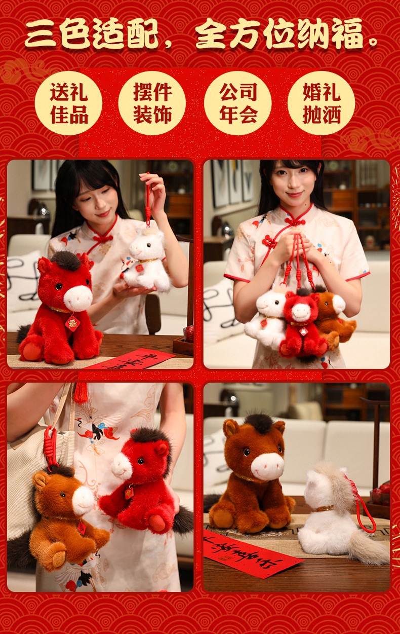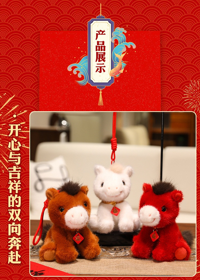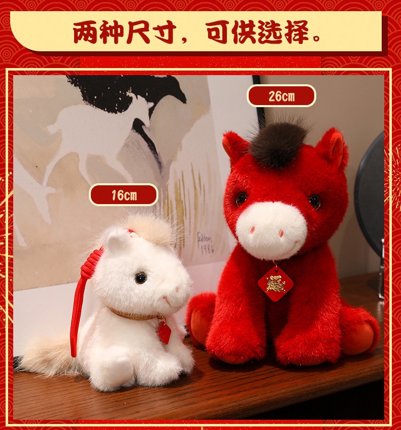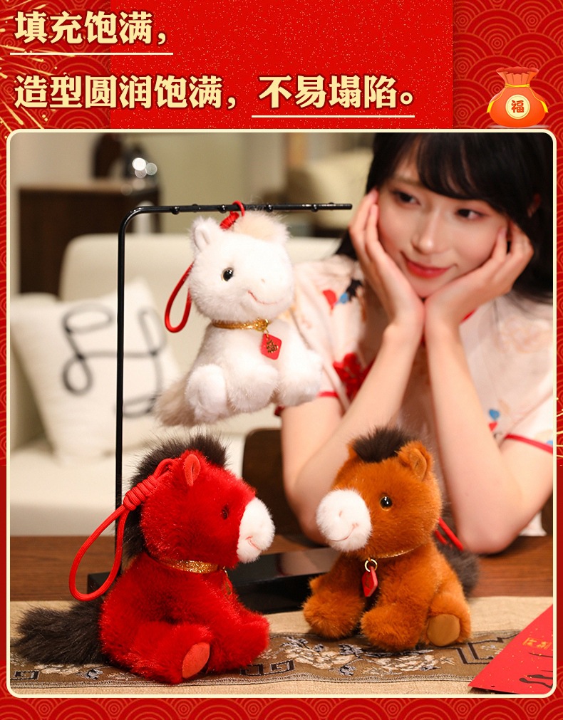 2026马年吉祥物红色小马公仔红色福马毛绒玩具小马挂件钥匙扣玩偶
