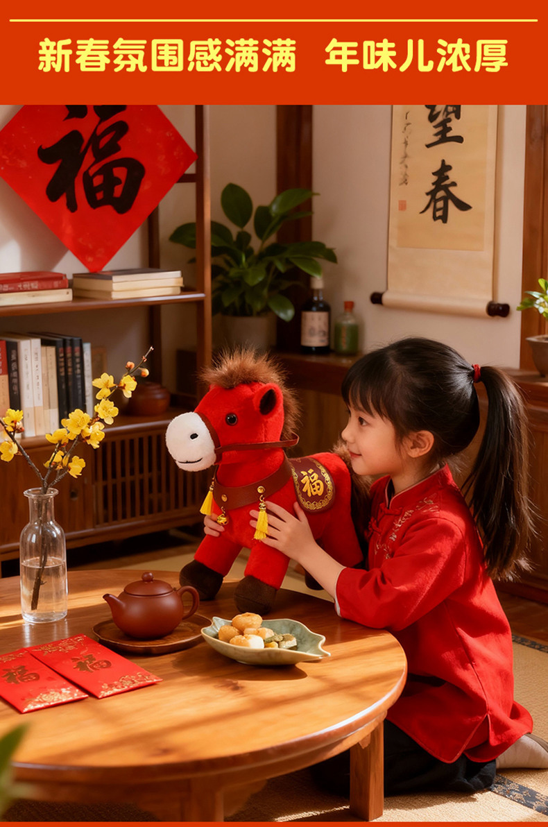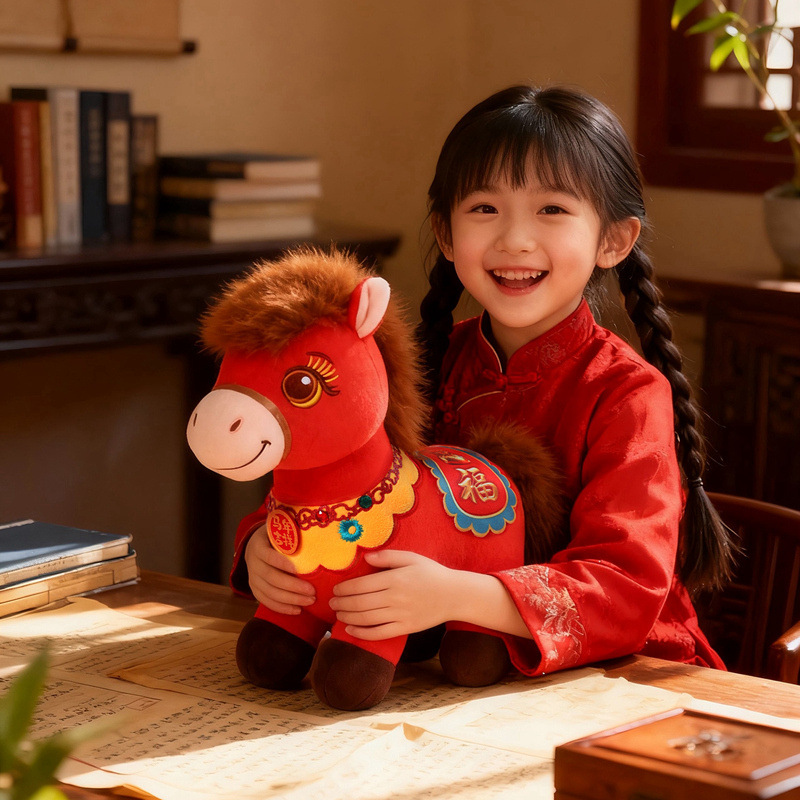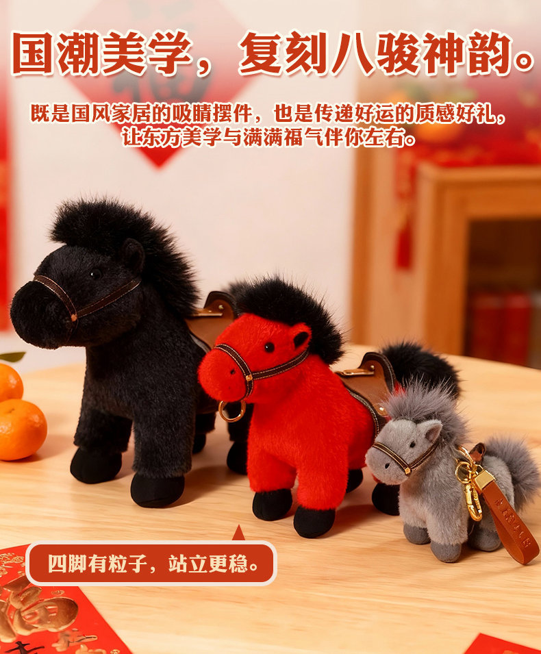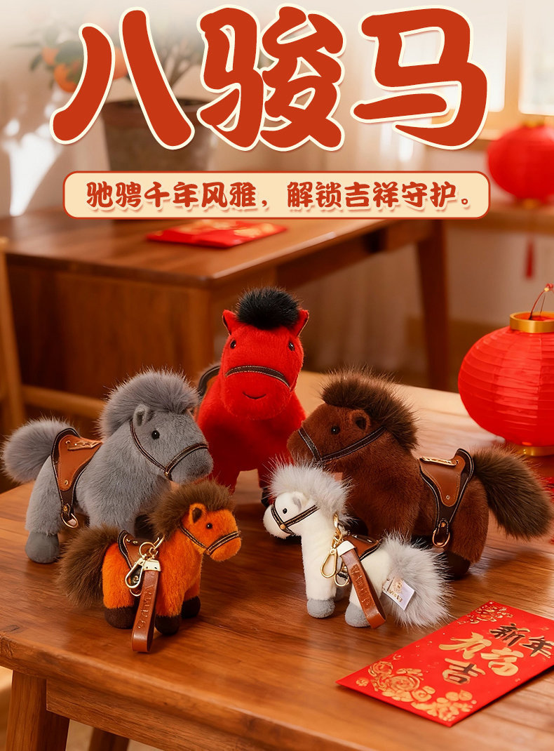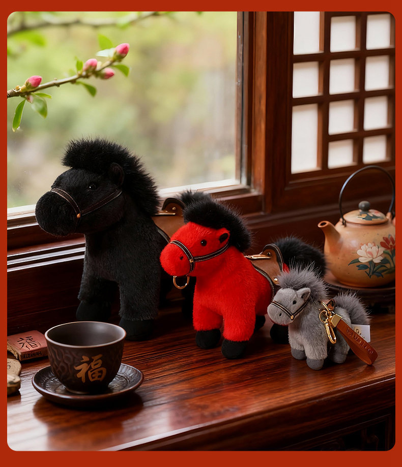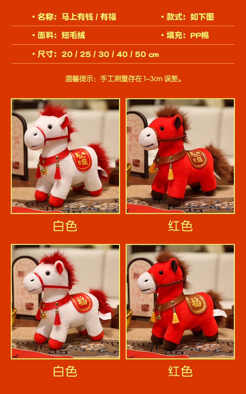 2026马年吉祥物红色小马公仔红色福马毛绒玩具小马挂件钥匙扣玩偶