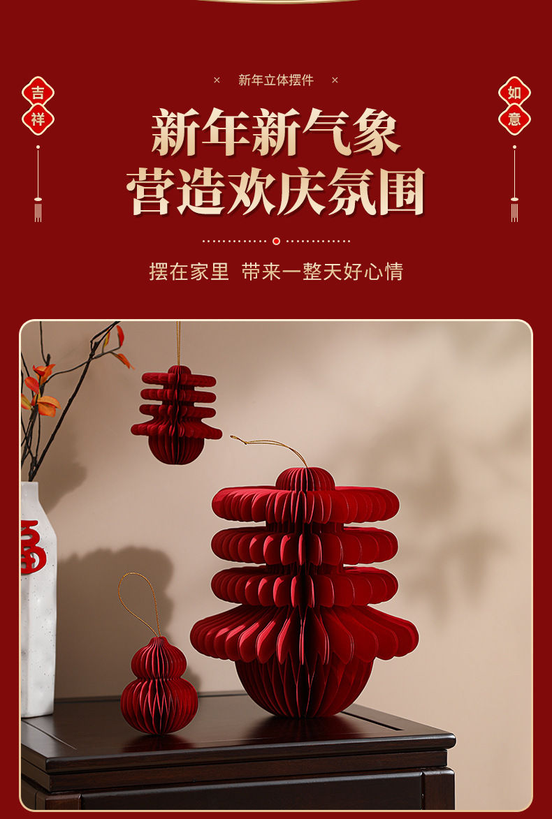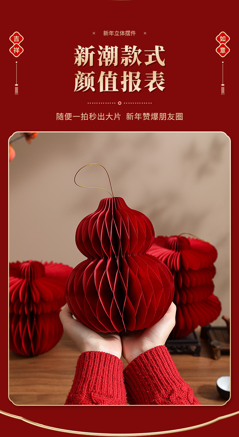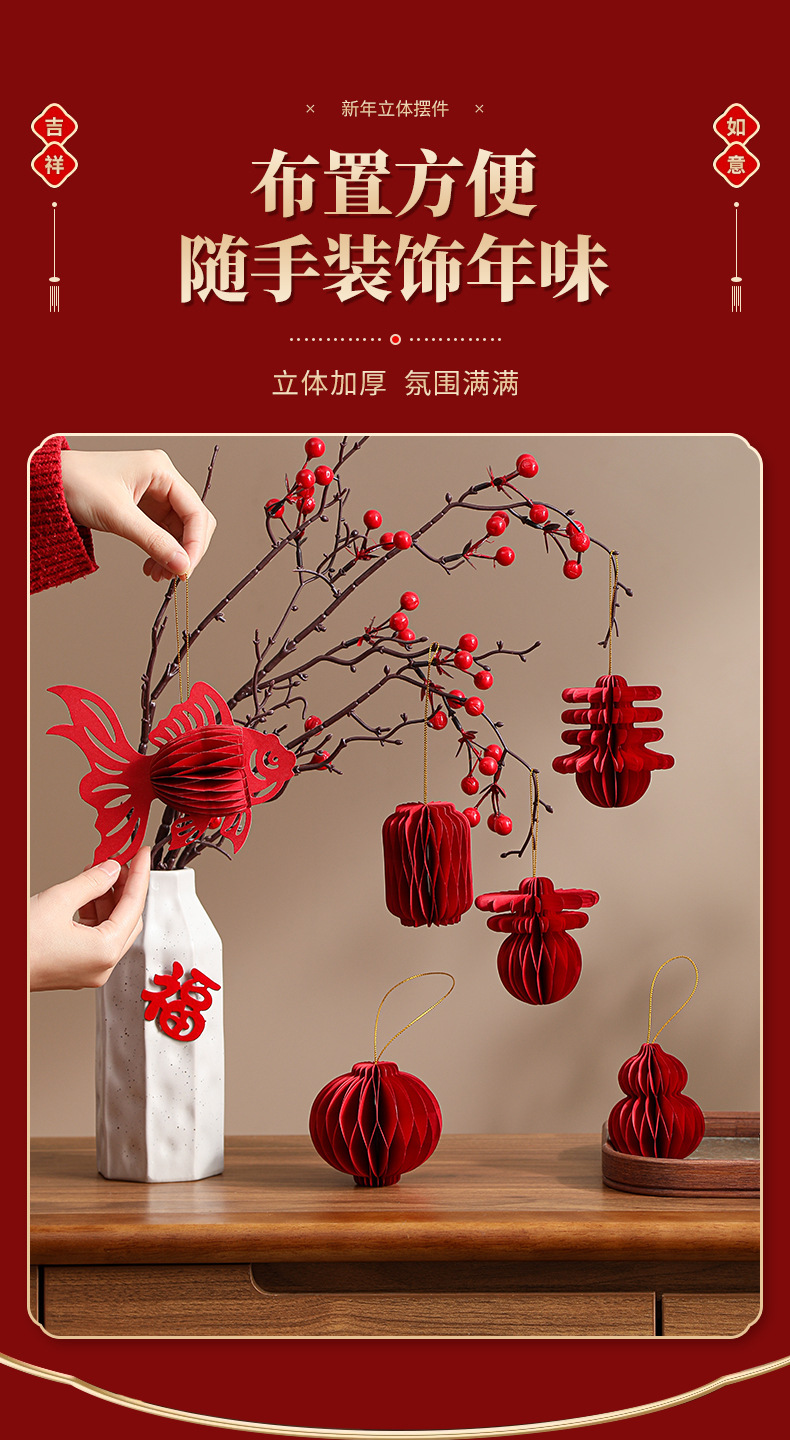 2026新款马年蜂窝灯笼挂饰新年绿植装饰品元旦场景氛围布置小挂件