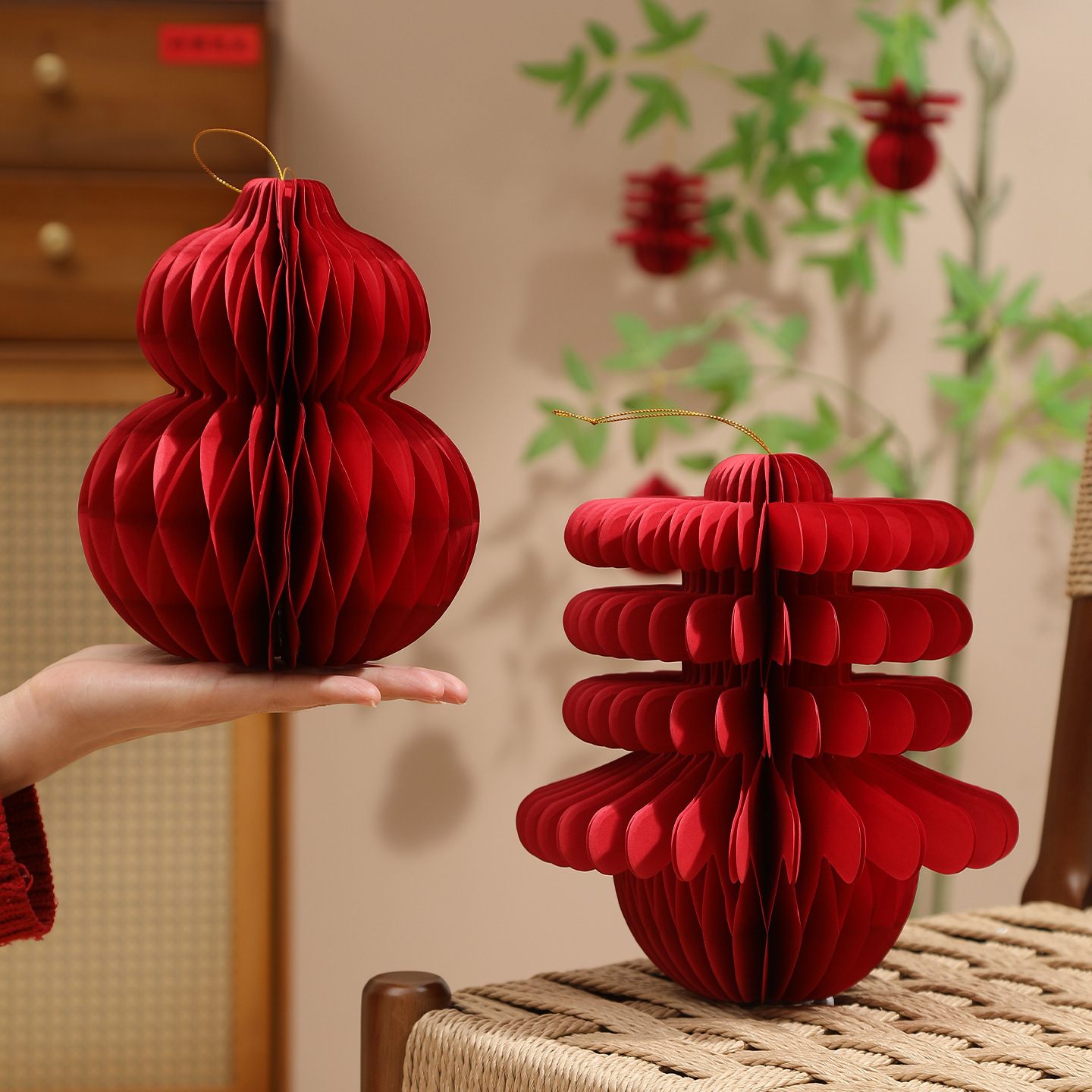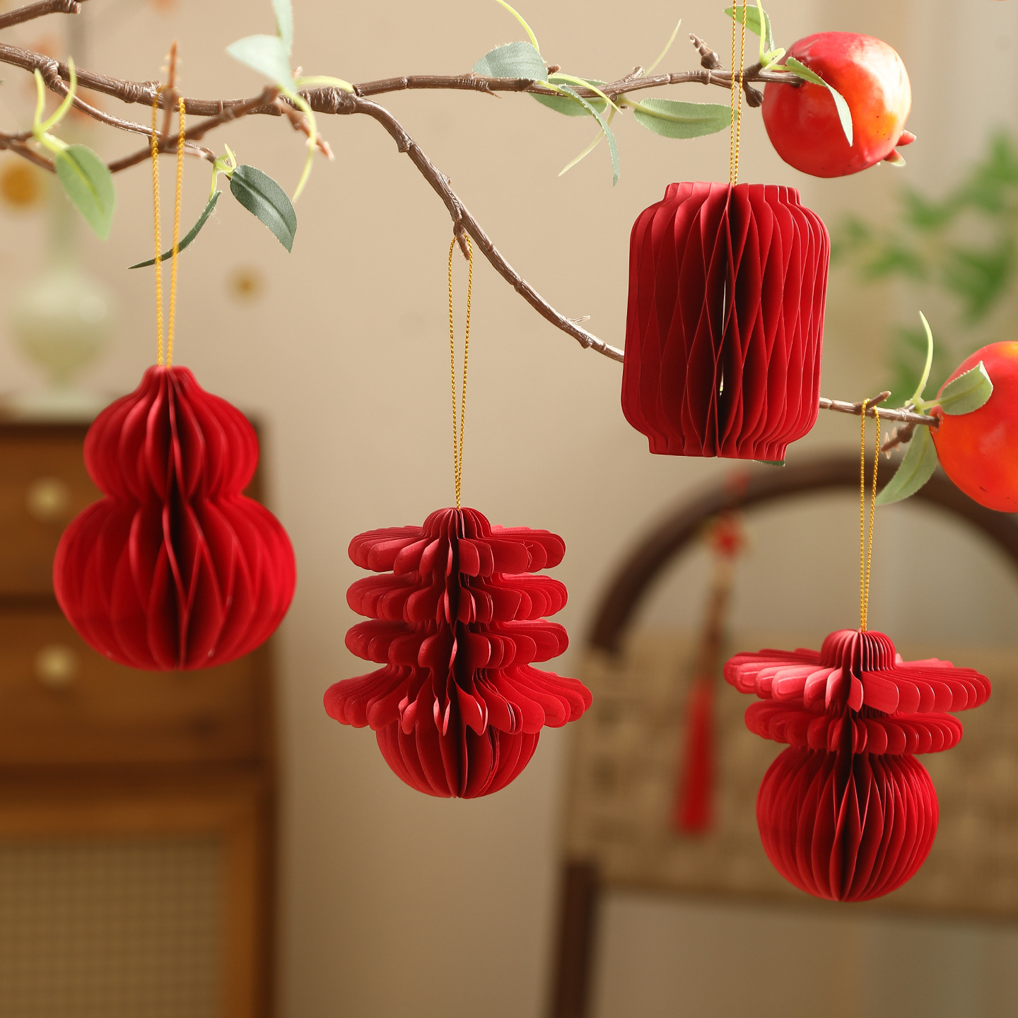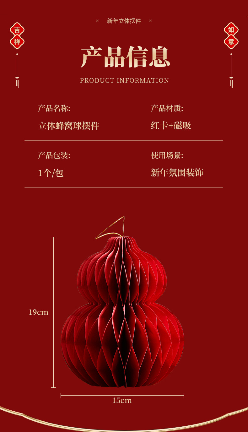 2026新款马年蜂窝灯笼挂饰新年绿植装饰品元旦场景氛围布置小挂件