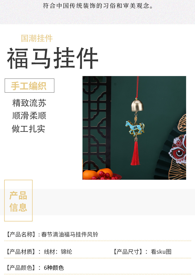 新年滴油福马挂件风铃新年节日车载包包装饰品马年百搭小挂饰挂件