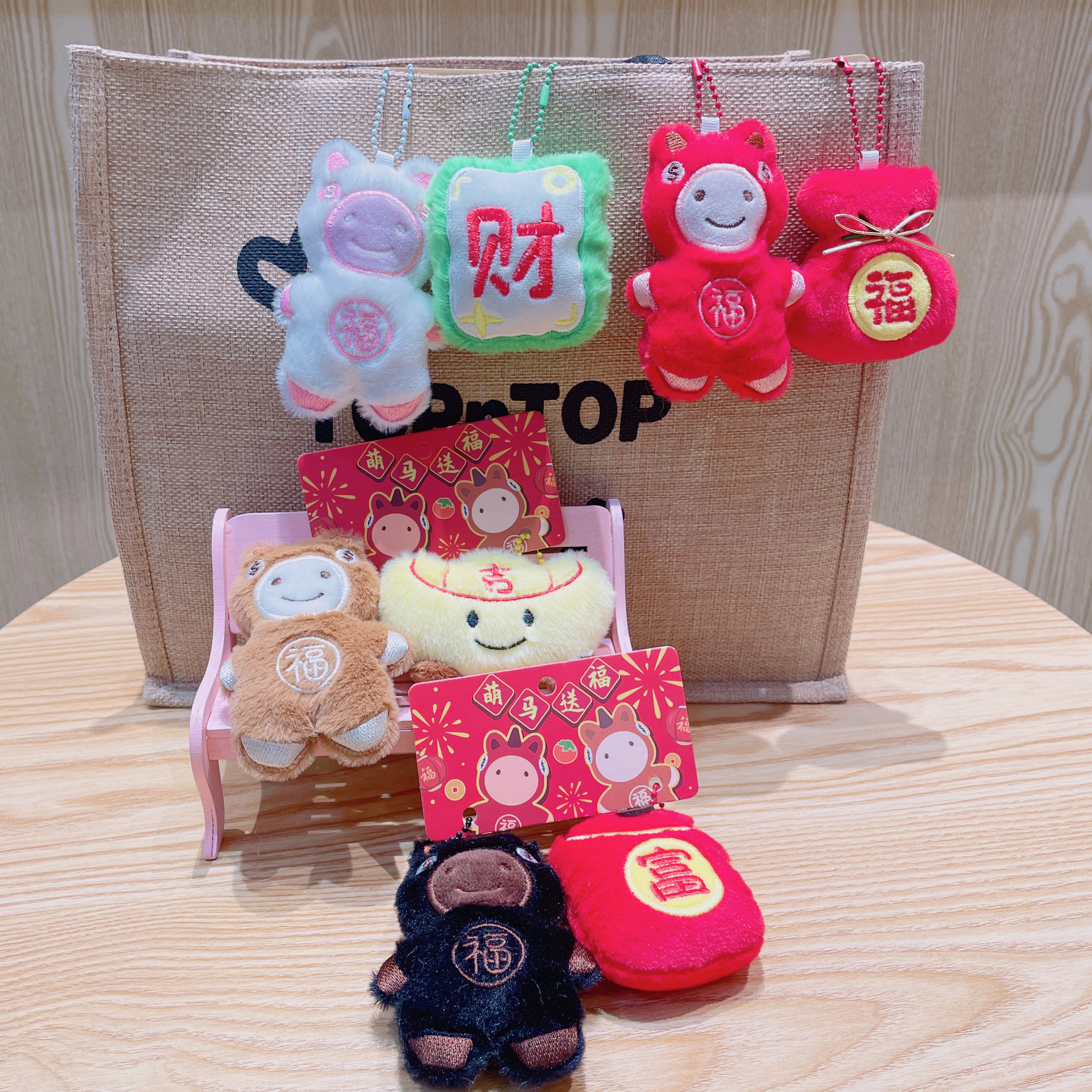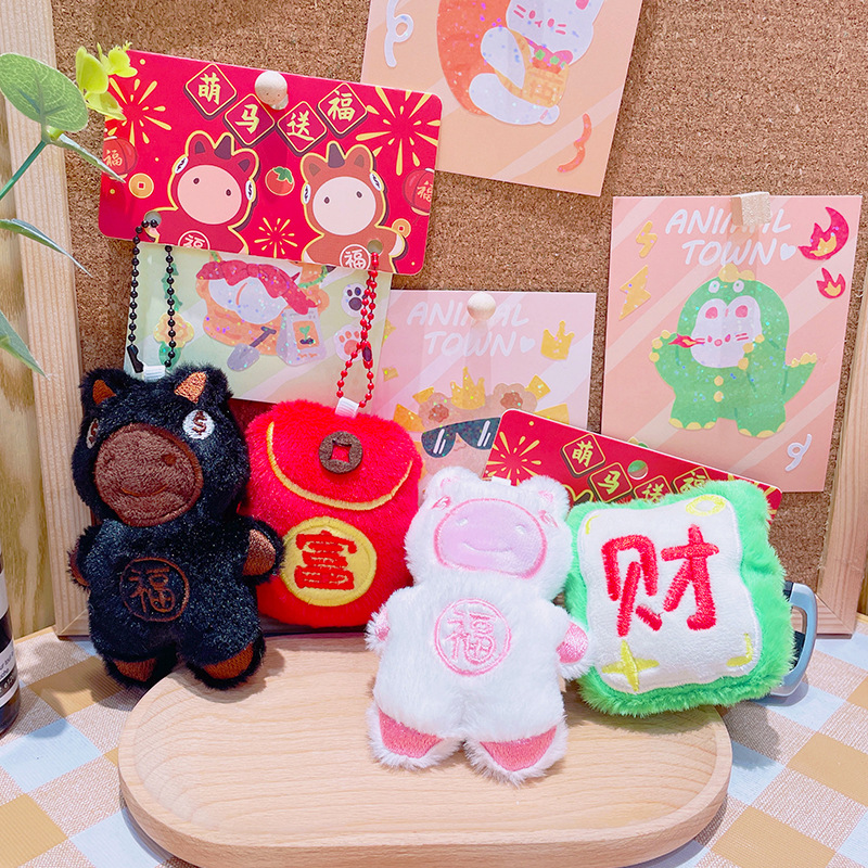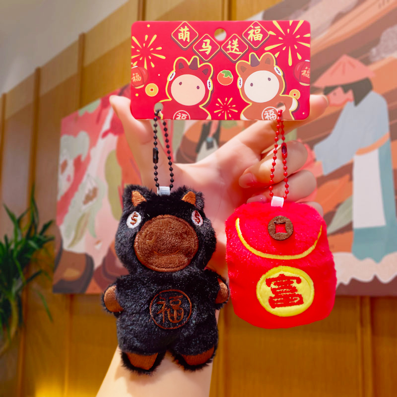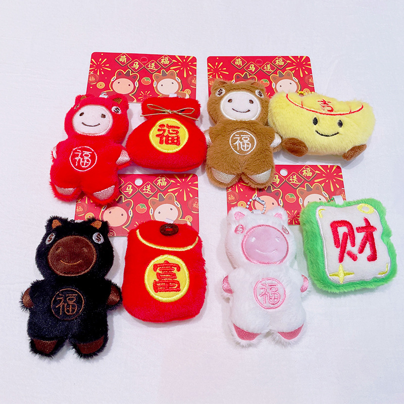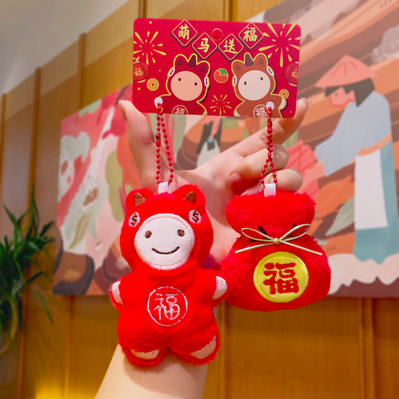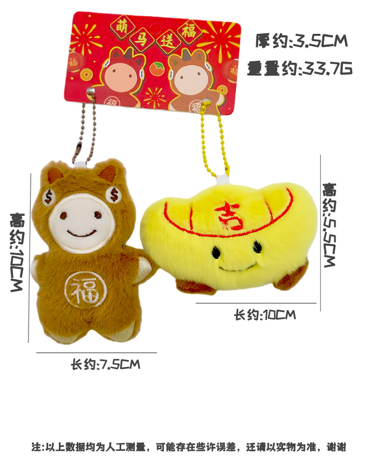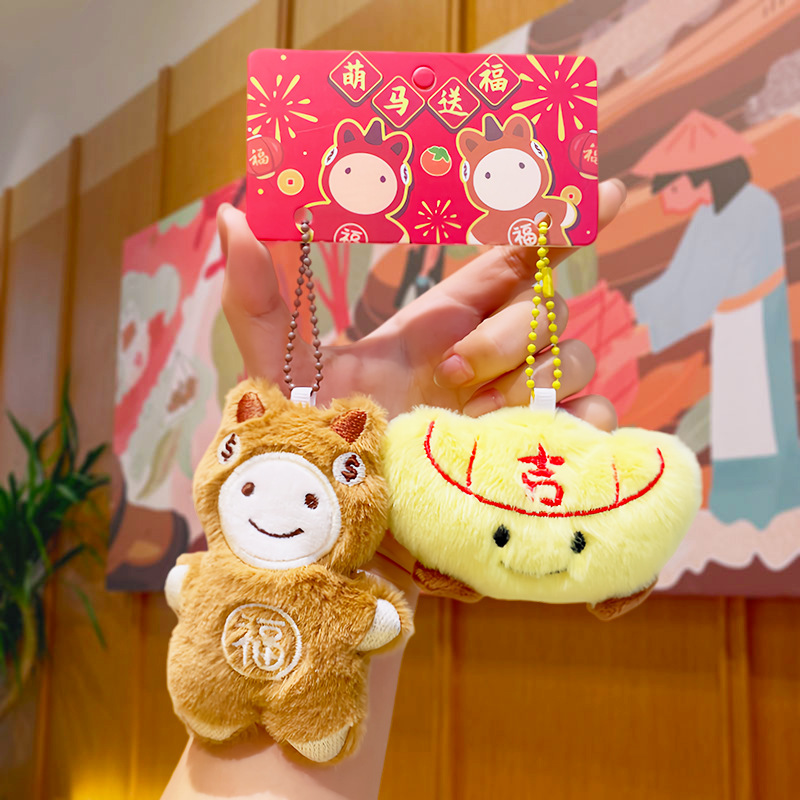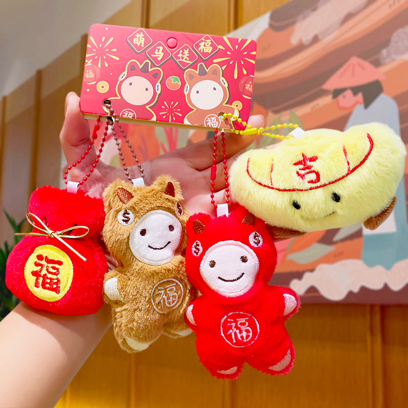 原创新年毛绒小玩具福袋元宝玩偶喜庆马年钥匙扣配件批发小马挂件