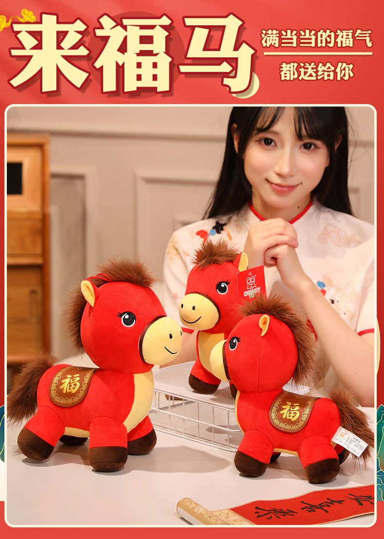 现货2026马年吉祥物来福马毛绒玩具生肖马公仔玩偶新年礼物定制
