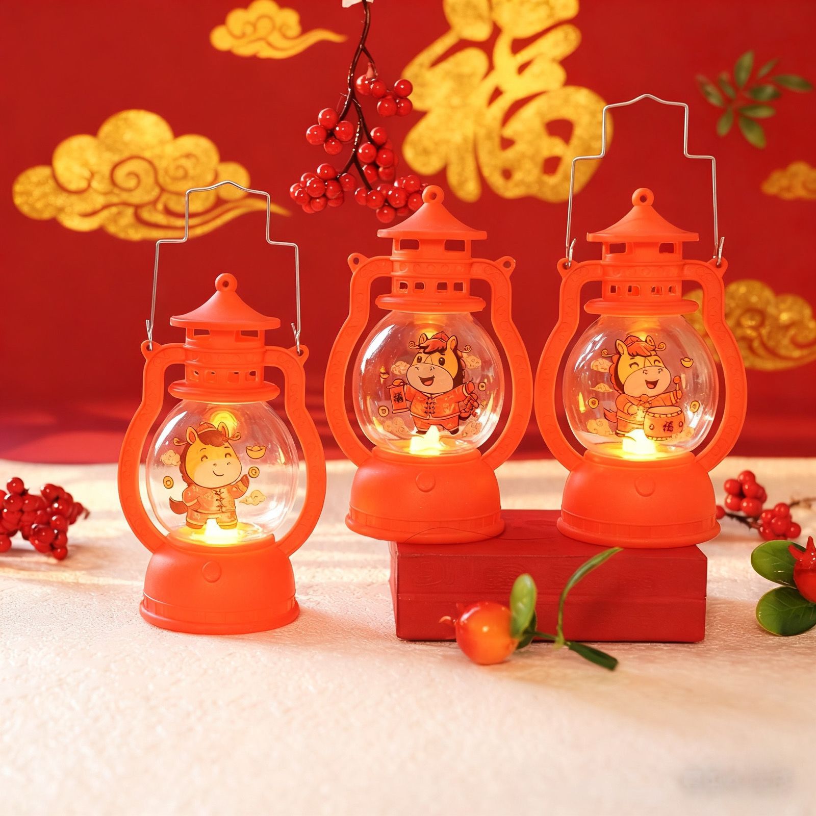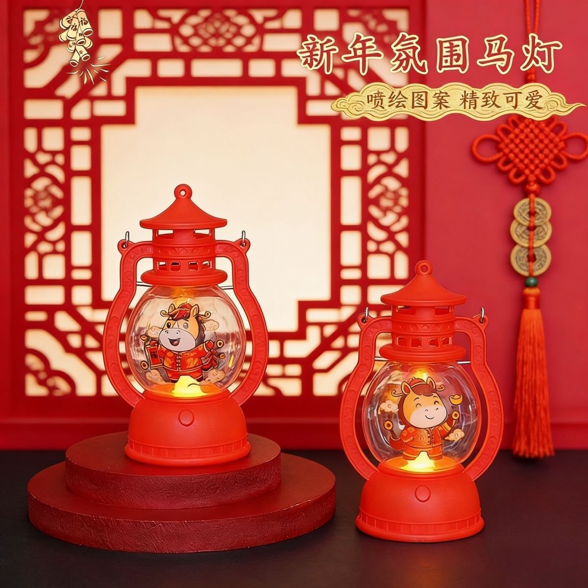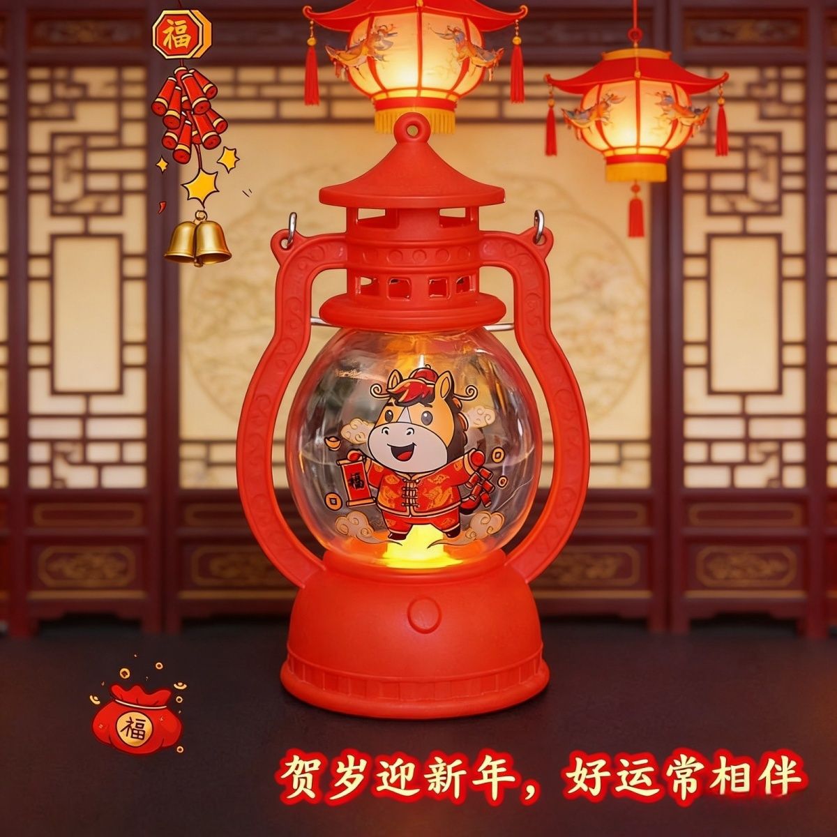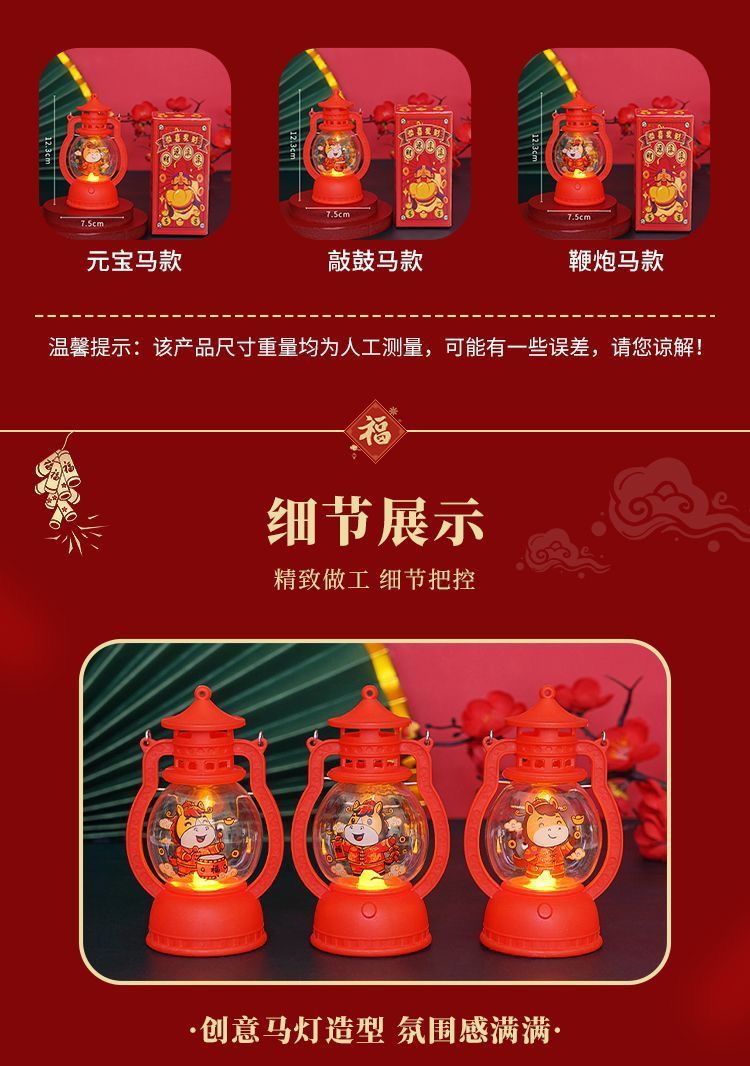 ぃ马年喜庆手提小马灯元旦礼物发光小灯笼送儿童朋友新年元宵节灯