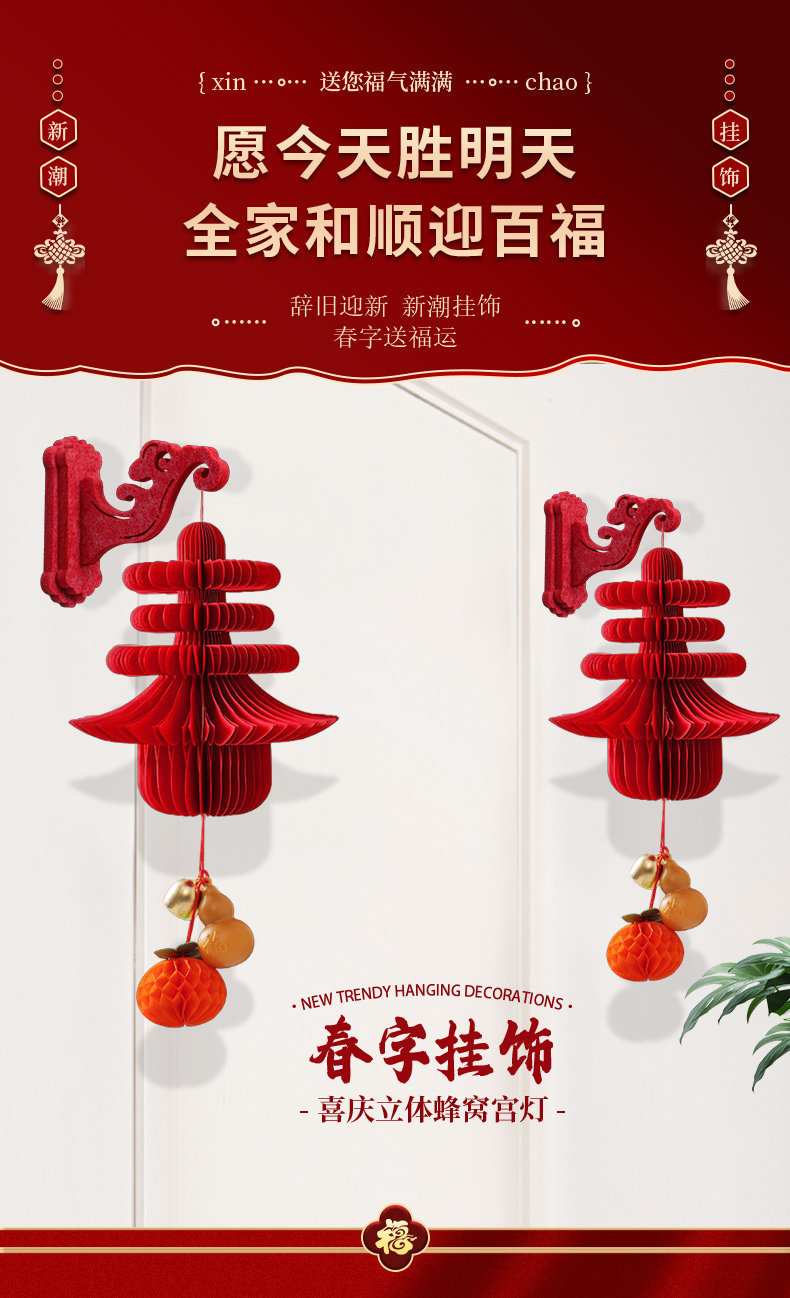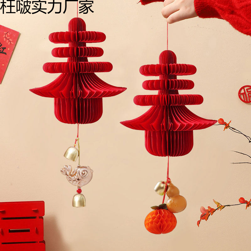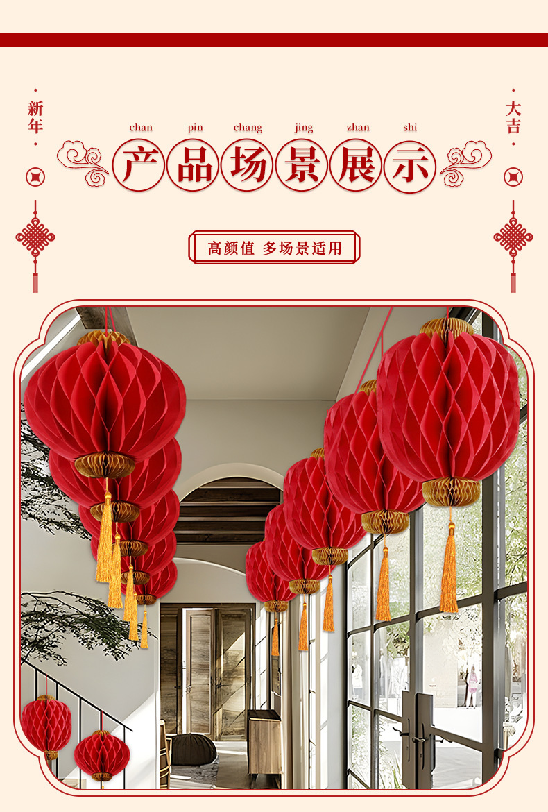 新年小红灯笼装饰2026马年春节绣球挂件元旦商场过年挂饰场景布置