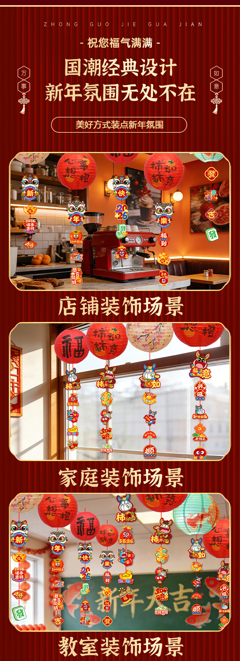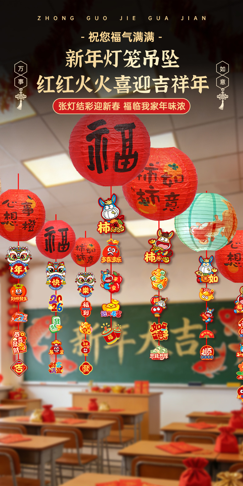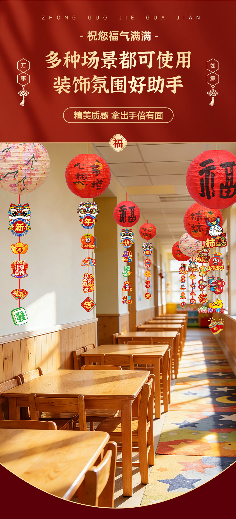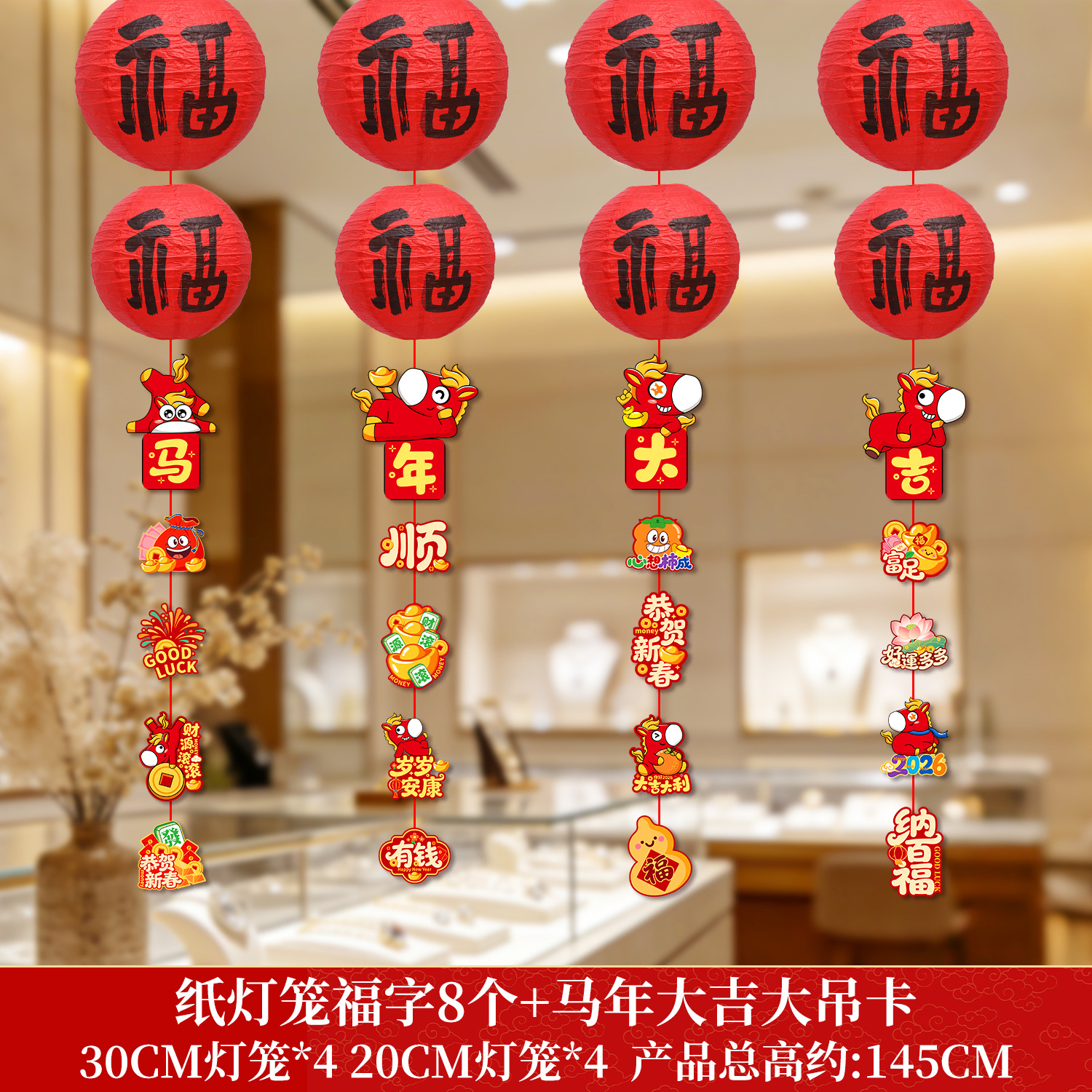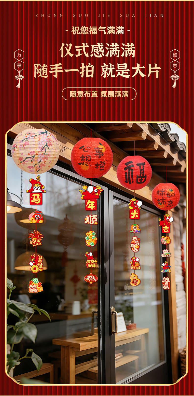 2026新年马年过年春节小红福字灯笼教室氛围装饰挂饰挂件摆摊批发