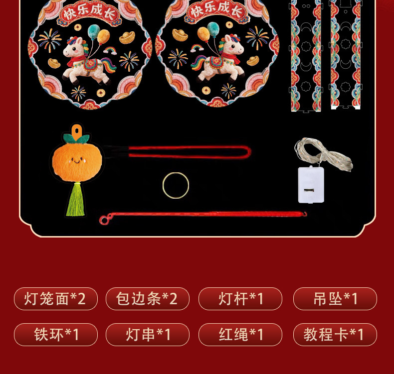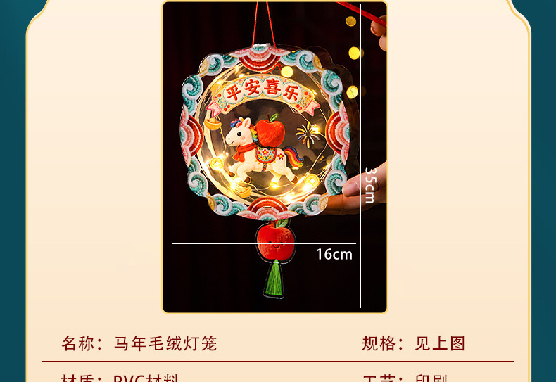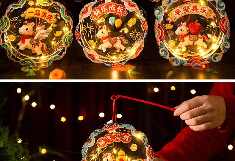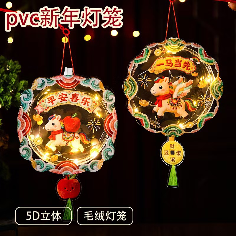 马年灯笼5D立体毛绒手提发光花灯卡通儿童手工diy材料包元宵灯笼