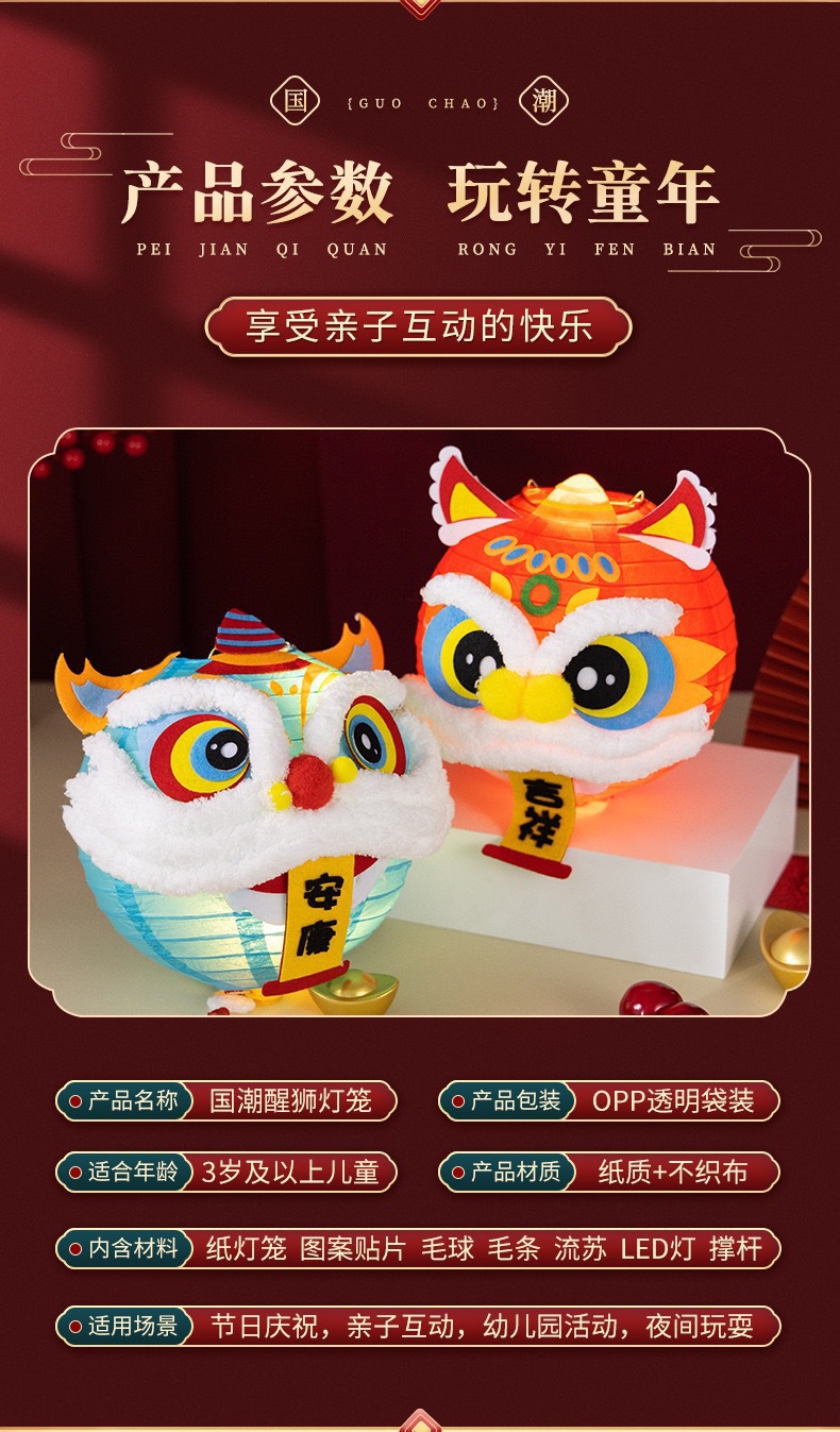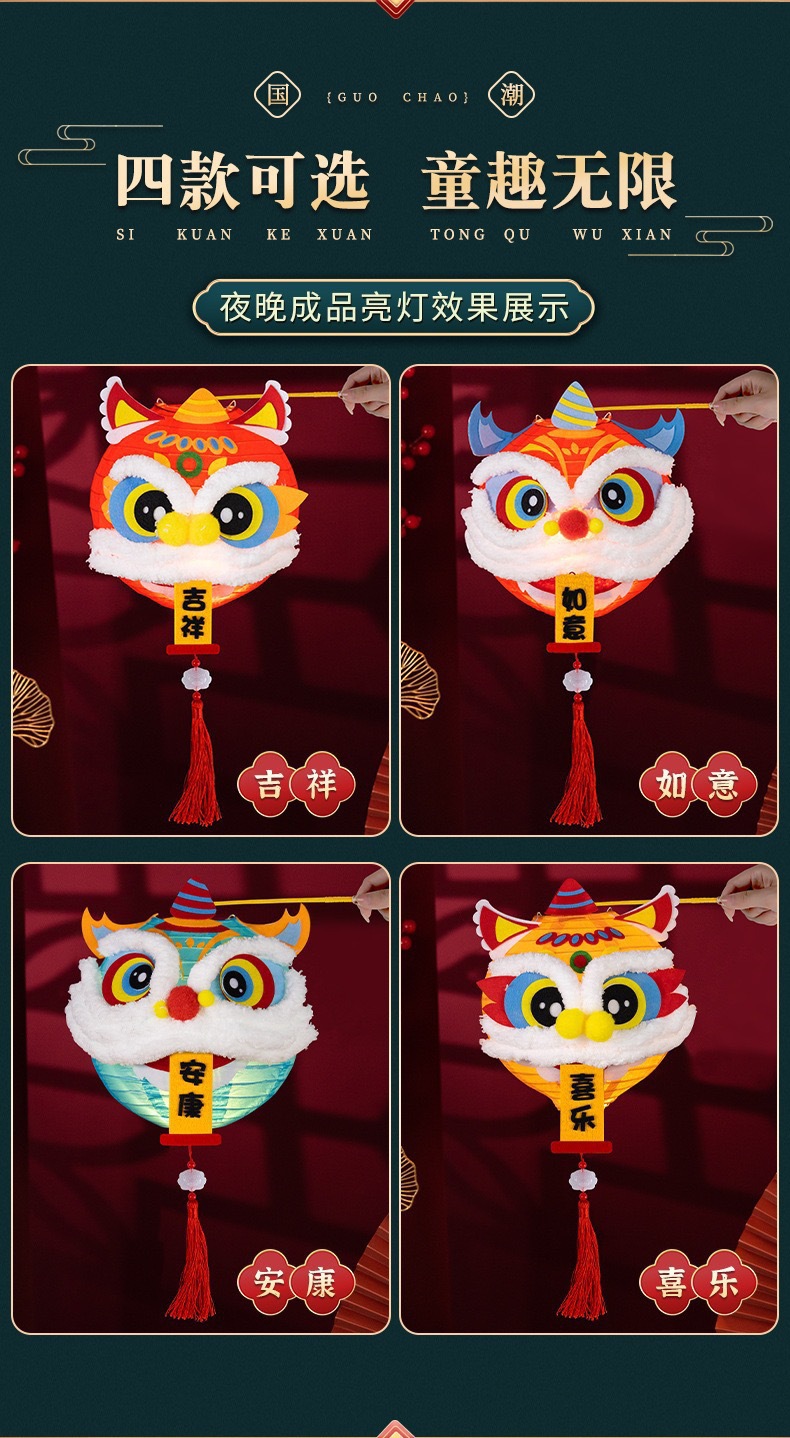 醒狮灯笼手工diy材料包手提花灯礼物结婚拍照道具晨袍灯笼