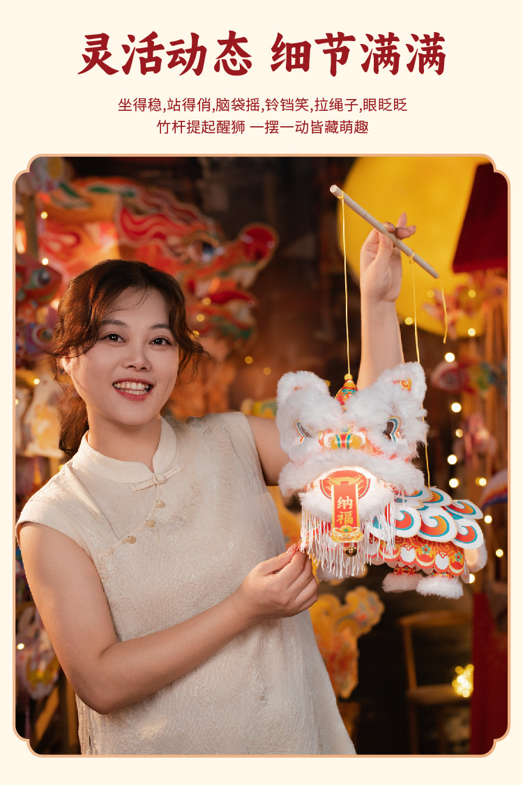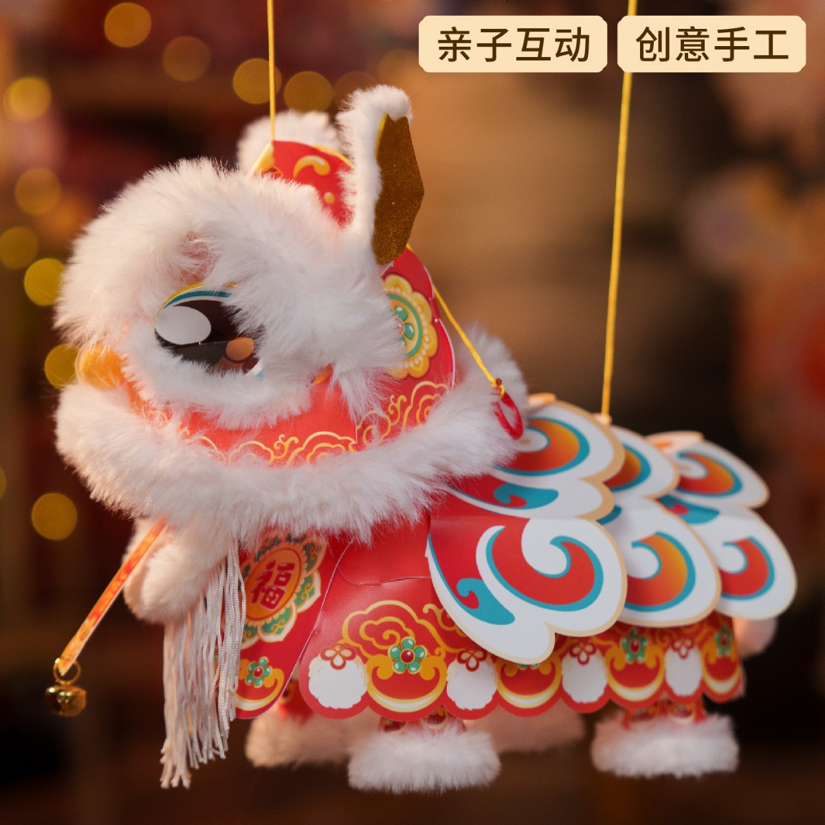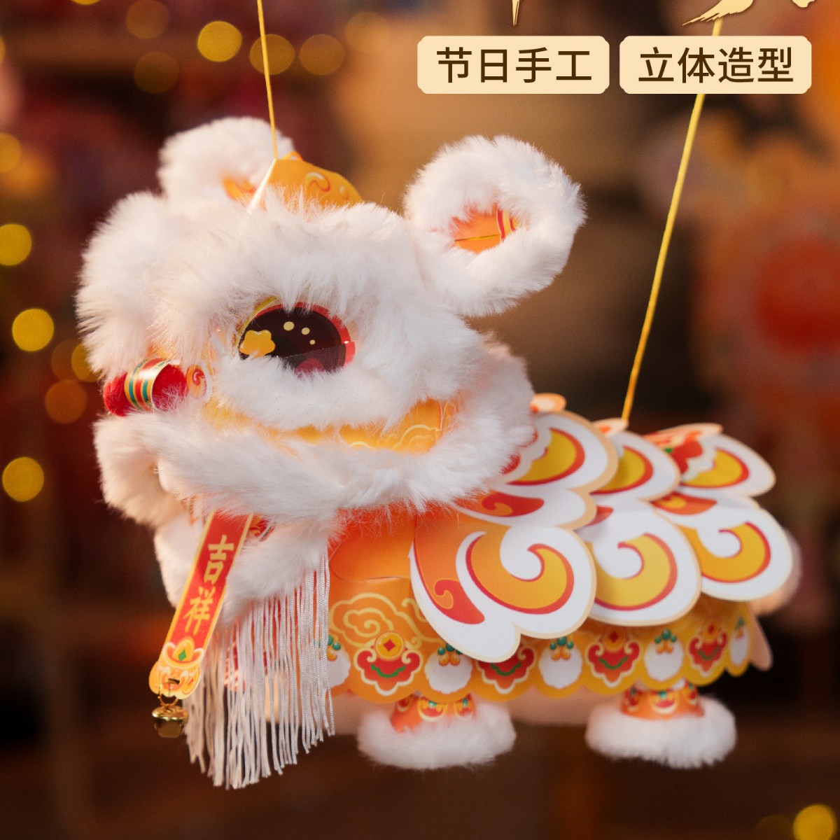 醒狮花灯灯笼diy材料包儿童手提发光新年灯笼中国风国潮醒狮灯笼