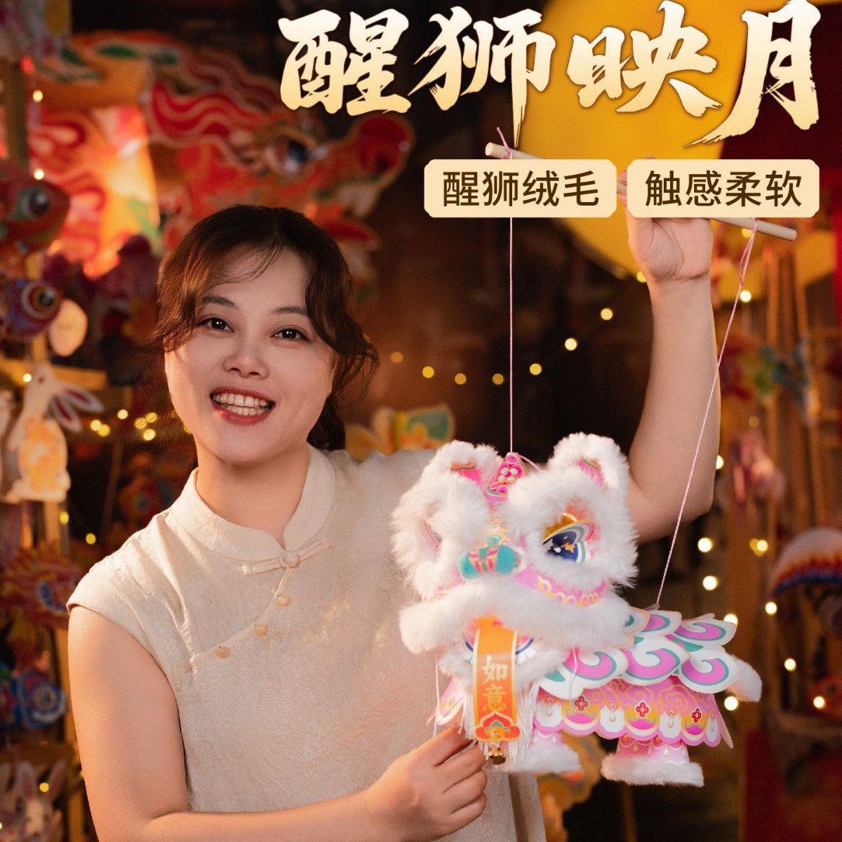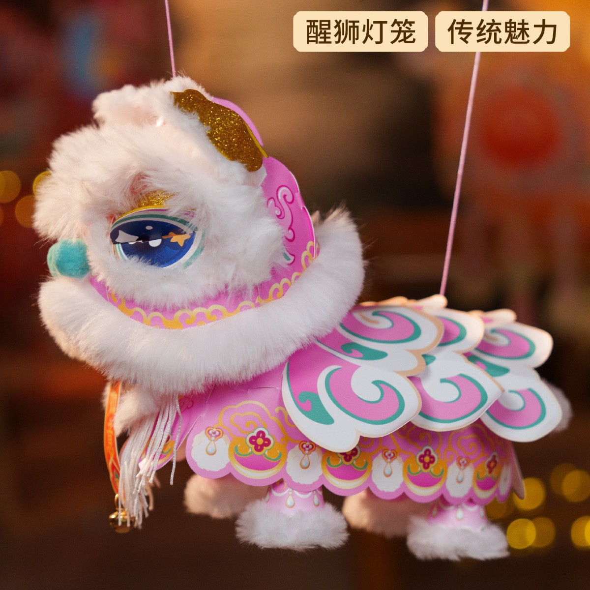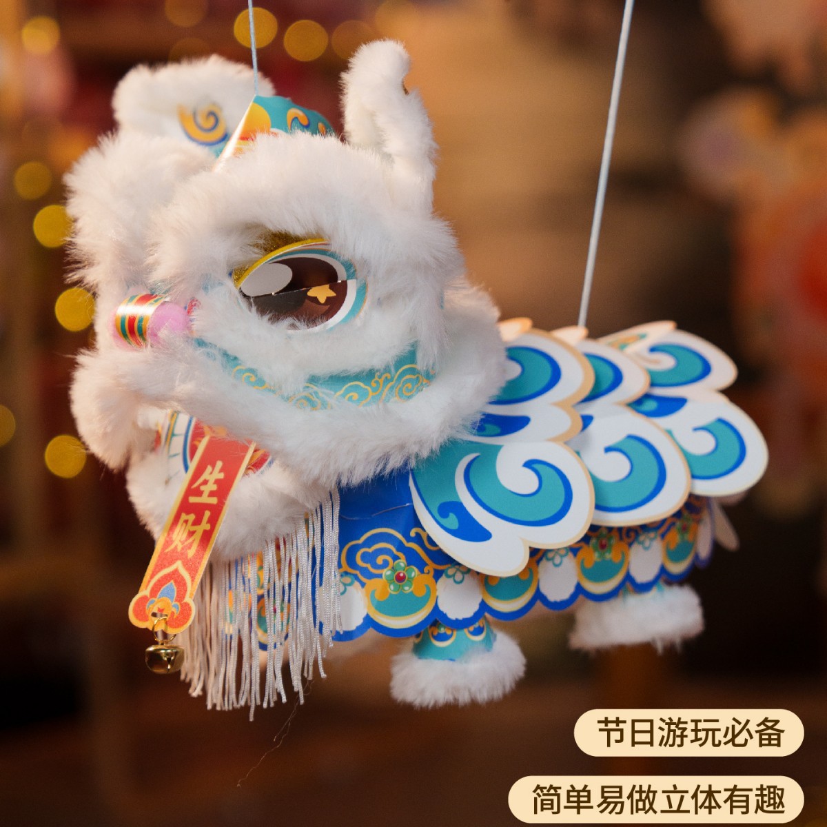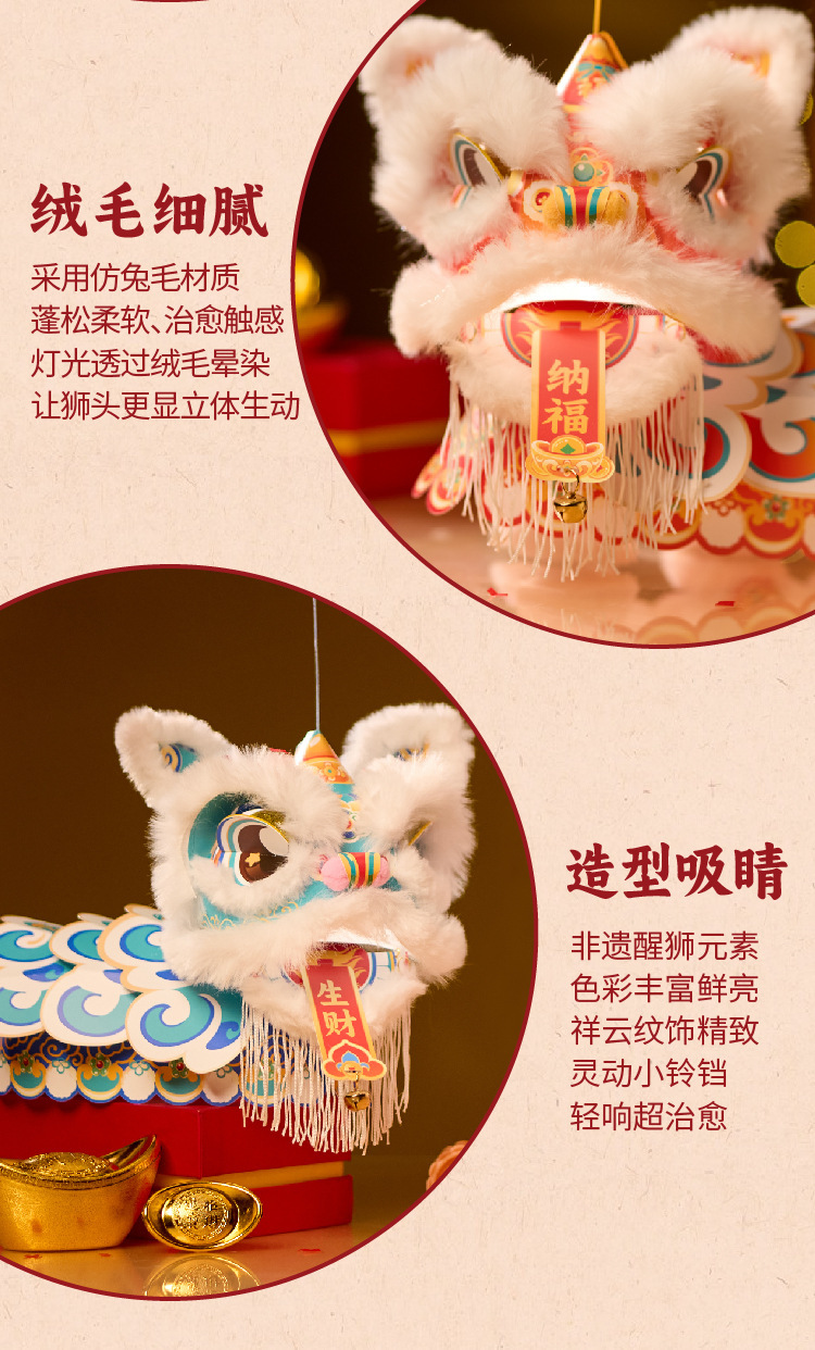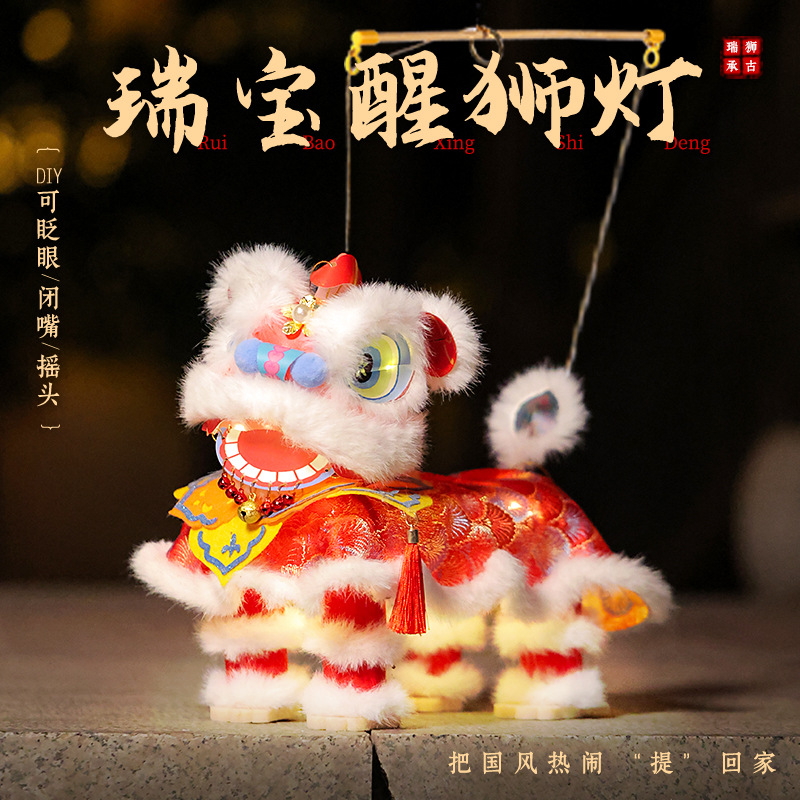 醒狮花灯灯笼diy材料包儿童手提发光新年灯笼中国风国潮醒狮灯笼