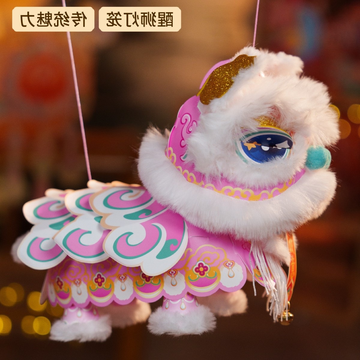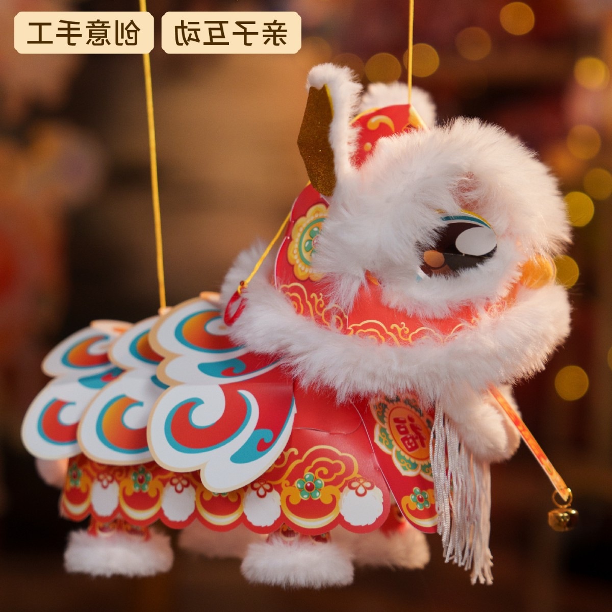 发光醒狮花灯儿童灯笼醒狮灯笼手提中国风国潮灯笼新年diy材料包