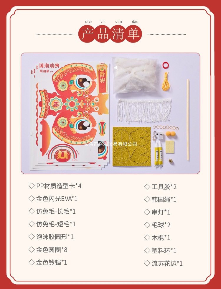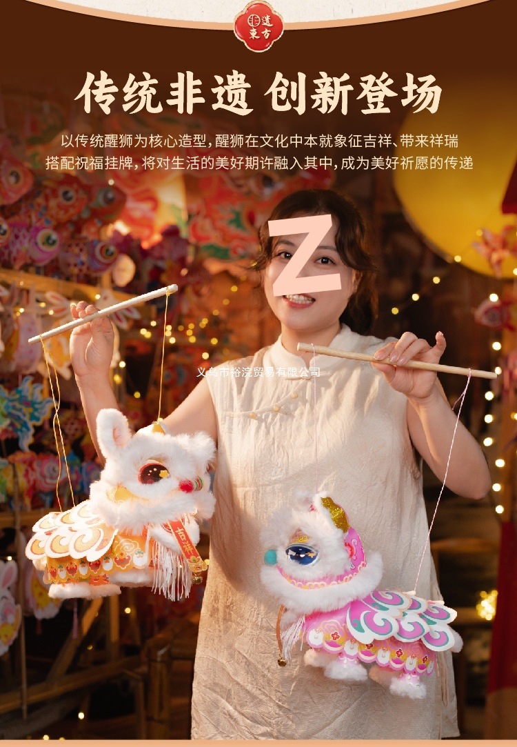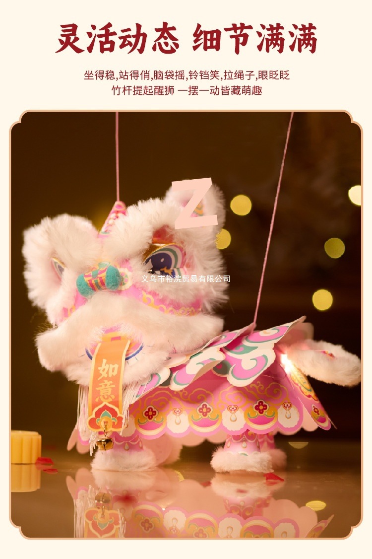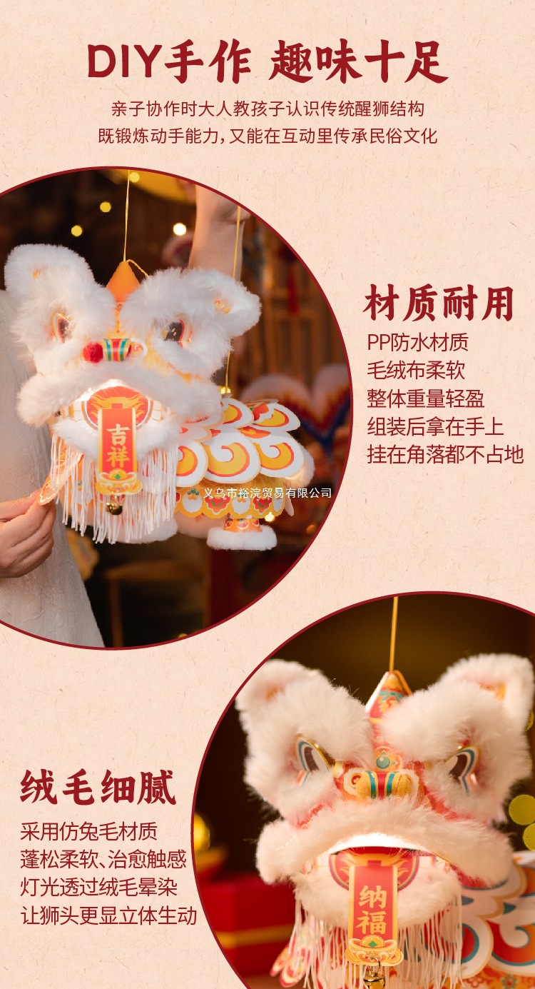 新年醒狮灯笼过年儿童手提灯手工diy材料包制作2026马年古风花灯