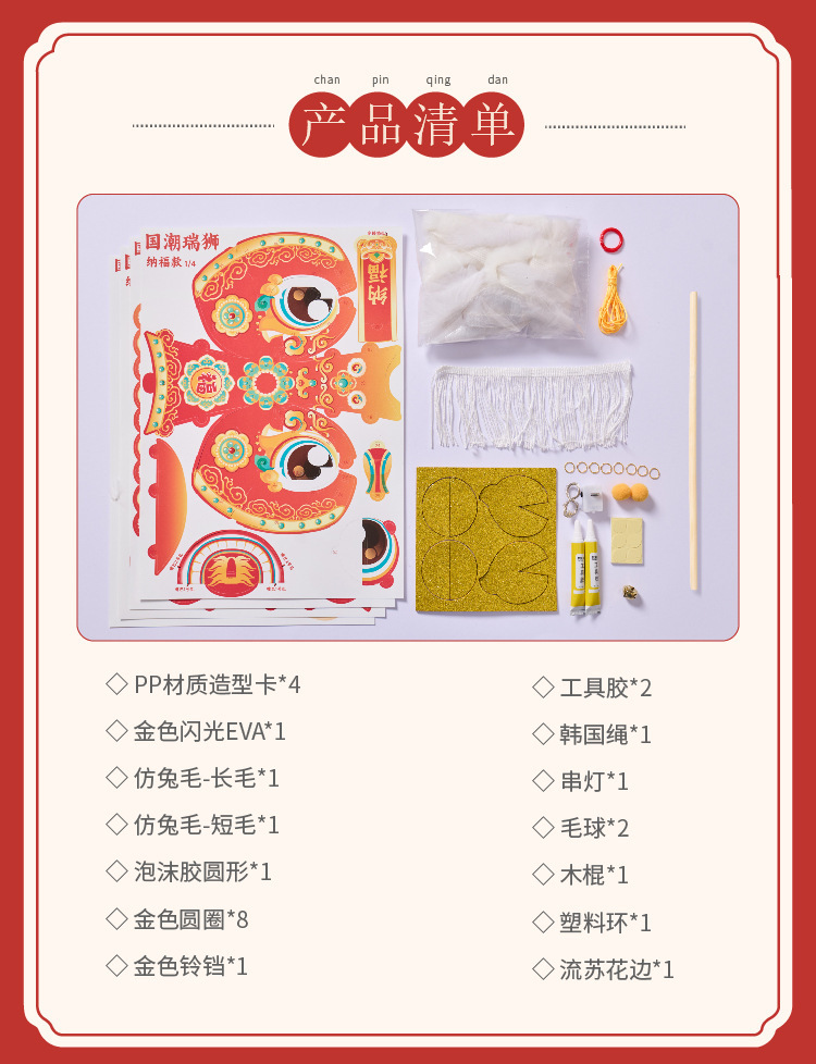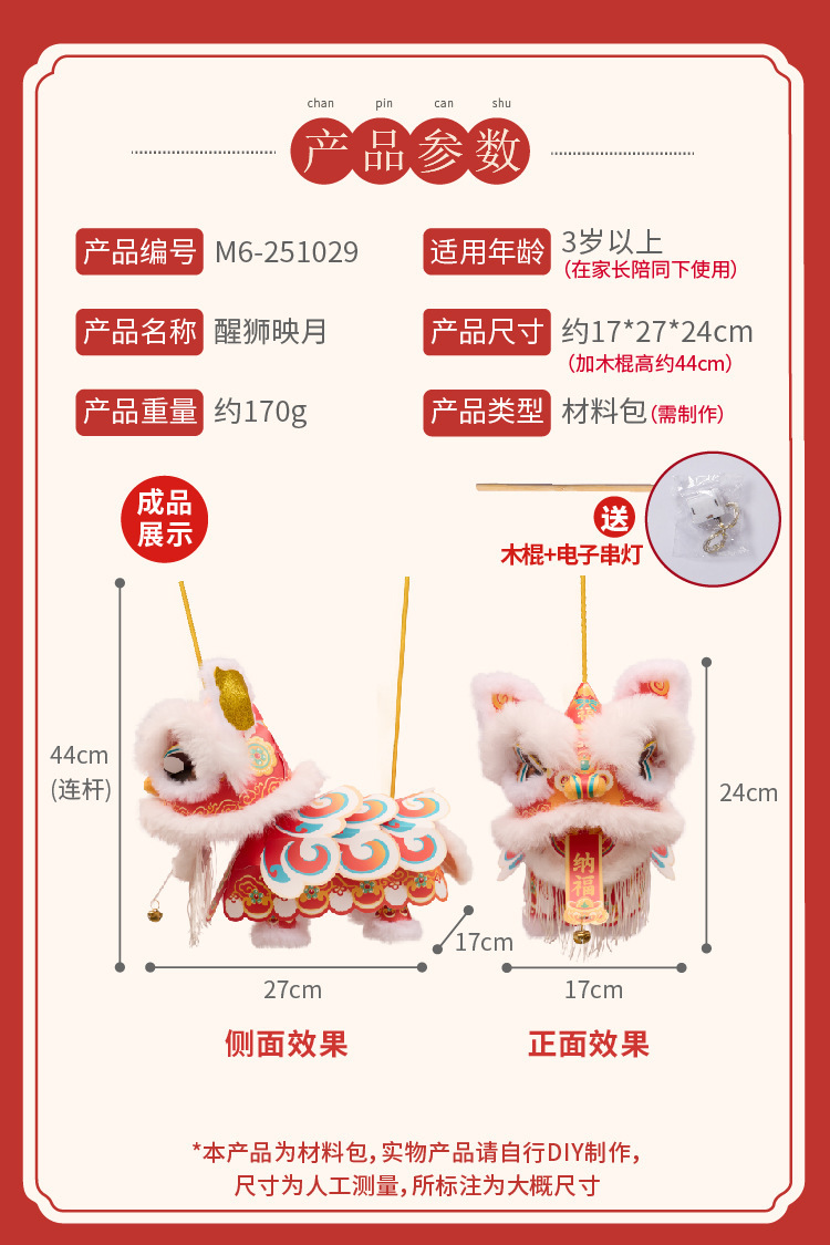 春节手工灯笼2026新款国潮醒狮手工diy材料儿童装饰拍照传统花灯