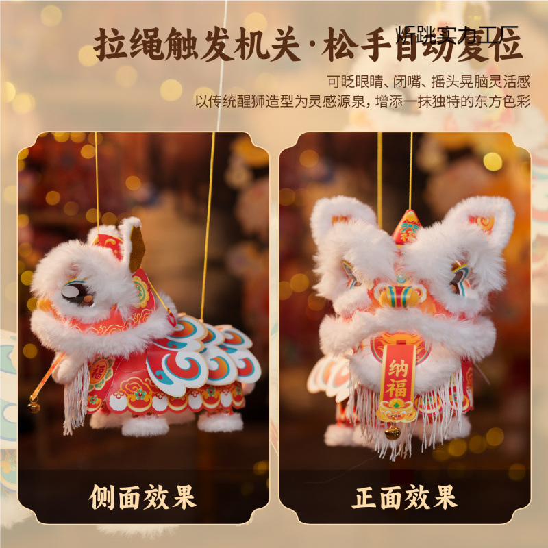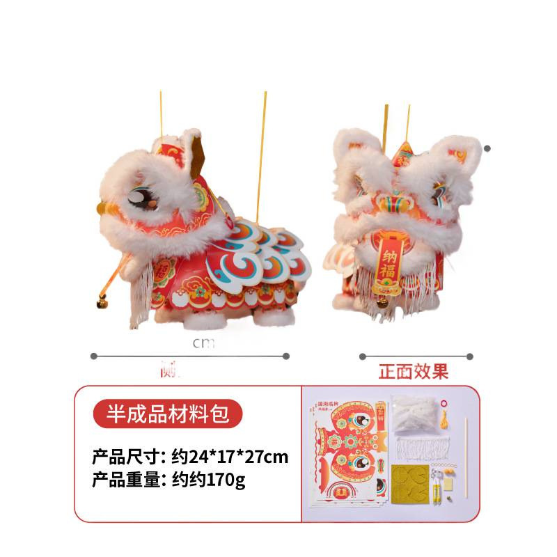 新年醒狮灯笼过年儿童手提灯手工diy材料包制作2026马年古风花灯