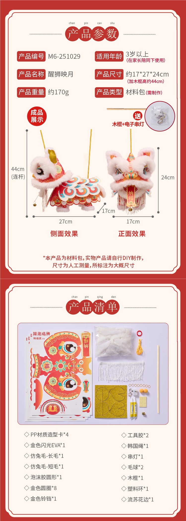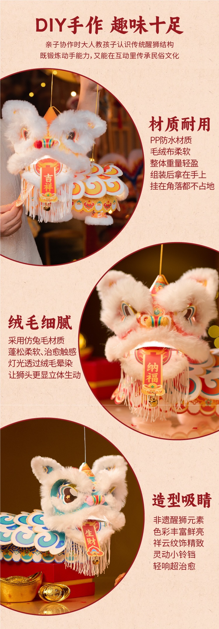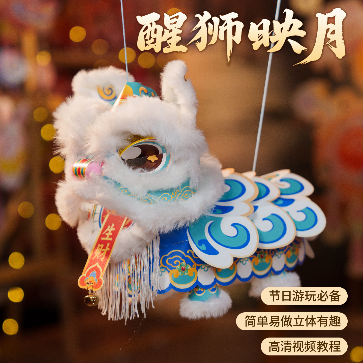 新年醒狮灯笼过年儿童手提灯手工diy材料包制作2026马年古风花灯