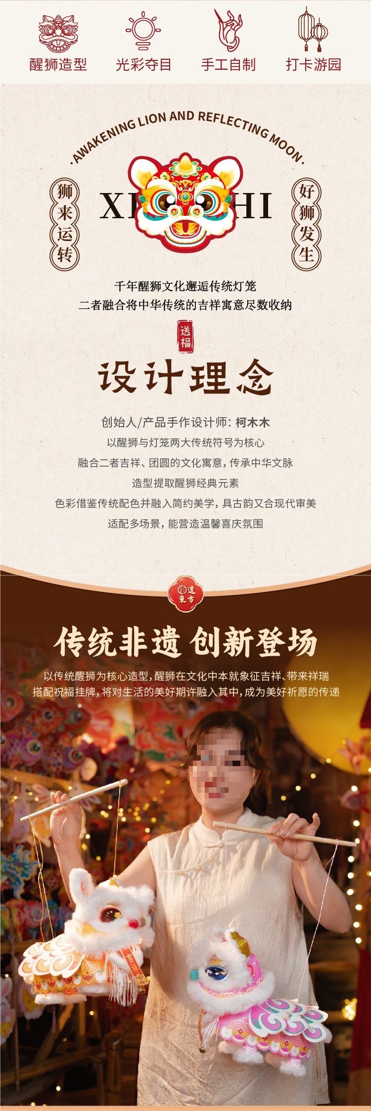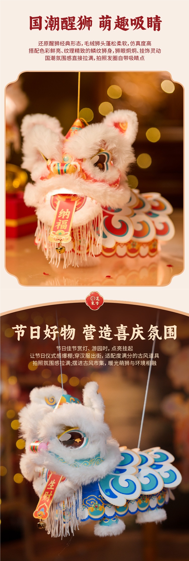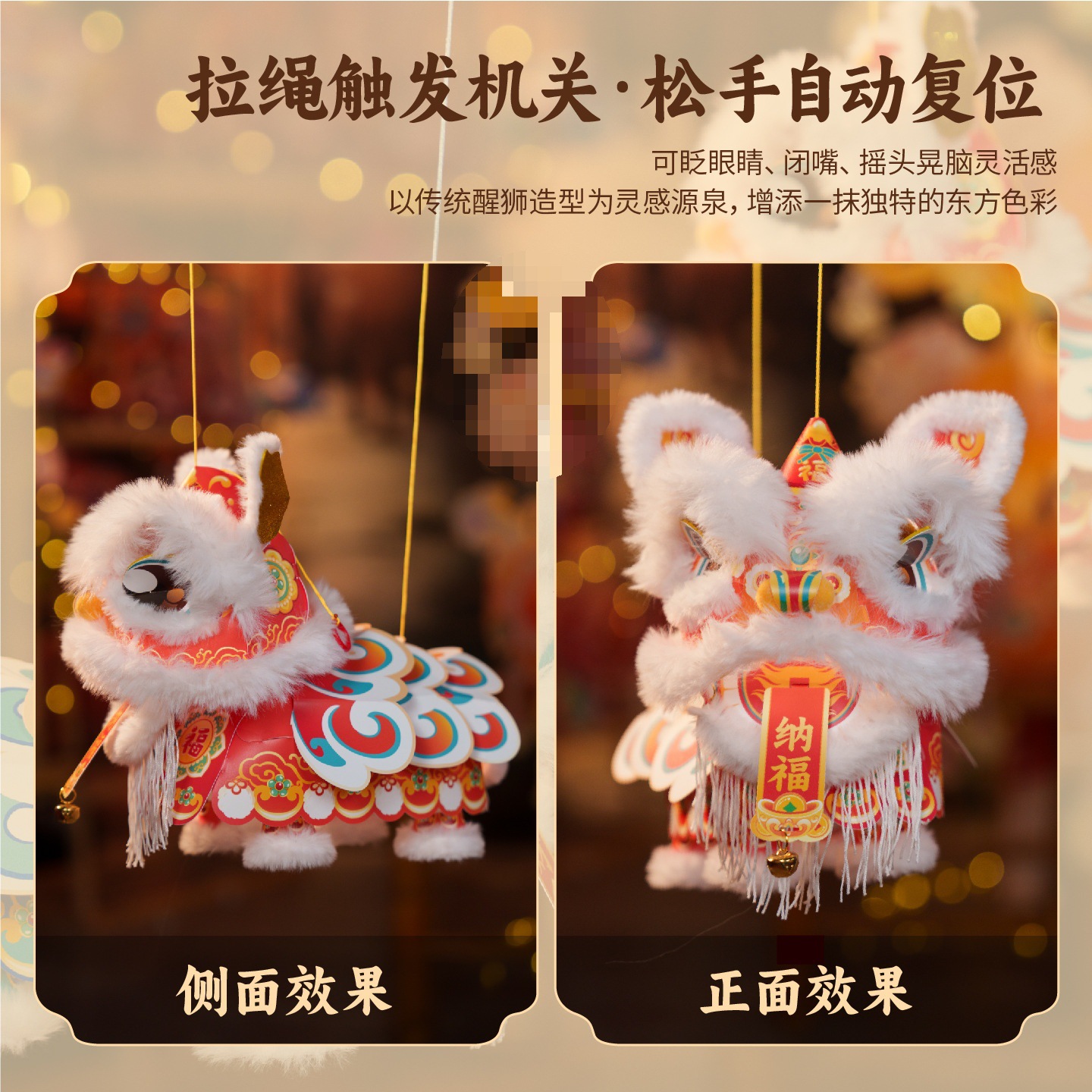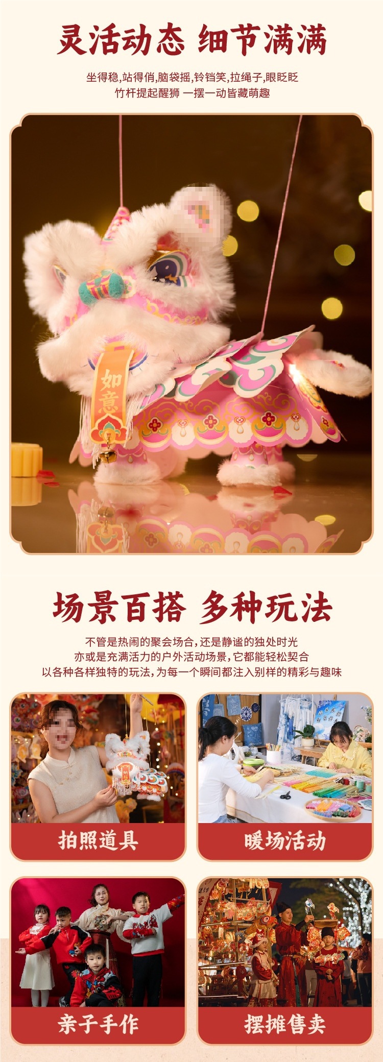 新年醒狮灯笼过年儿童手提灯手工diy材料包制作2026马年古风花灯