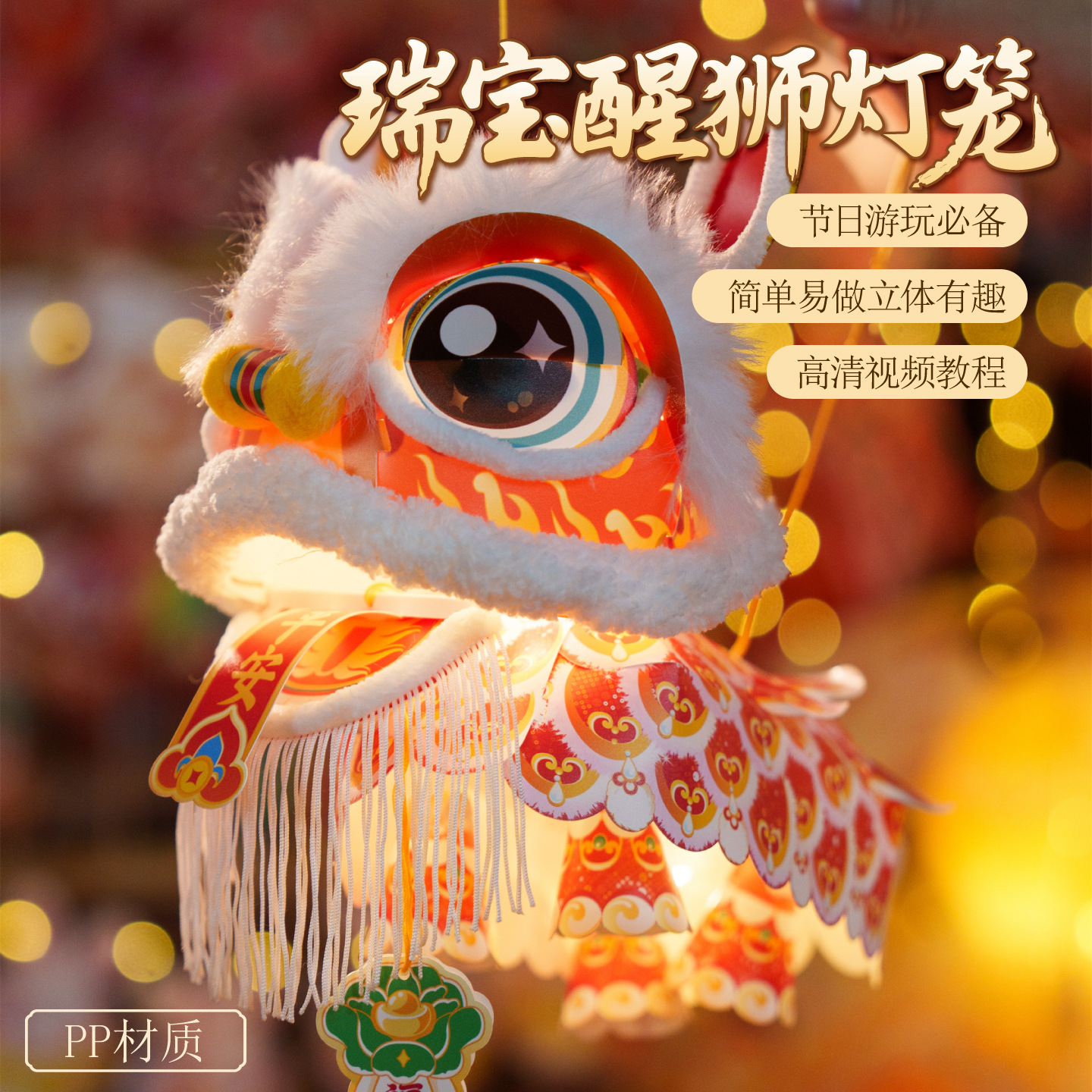 2026新春马年瑞宝醒狮灯笼手工diy材料包幼儿园古风花灯手提玩偶