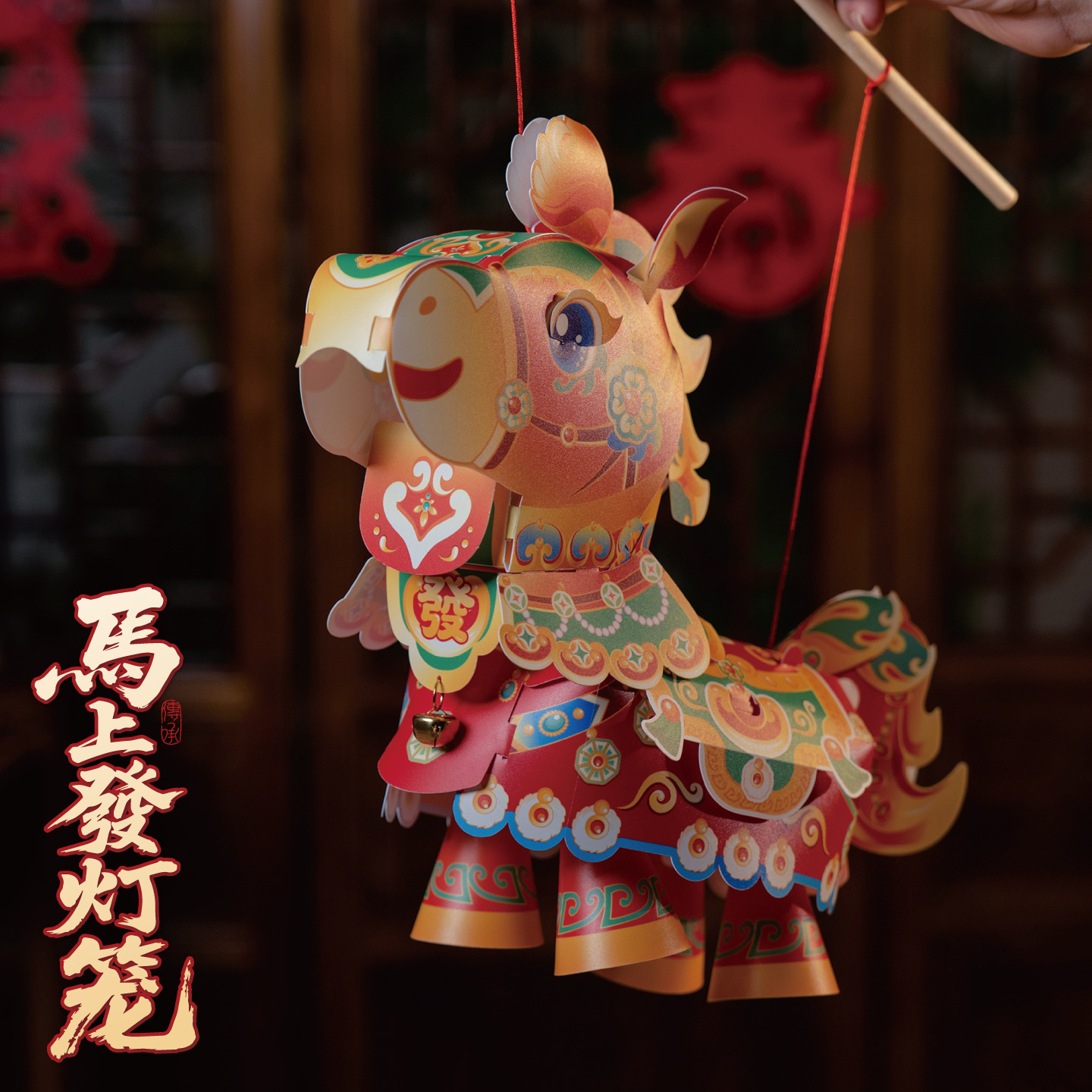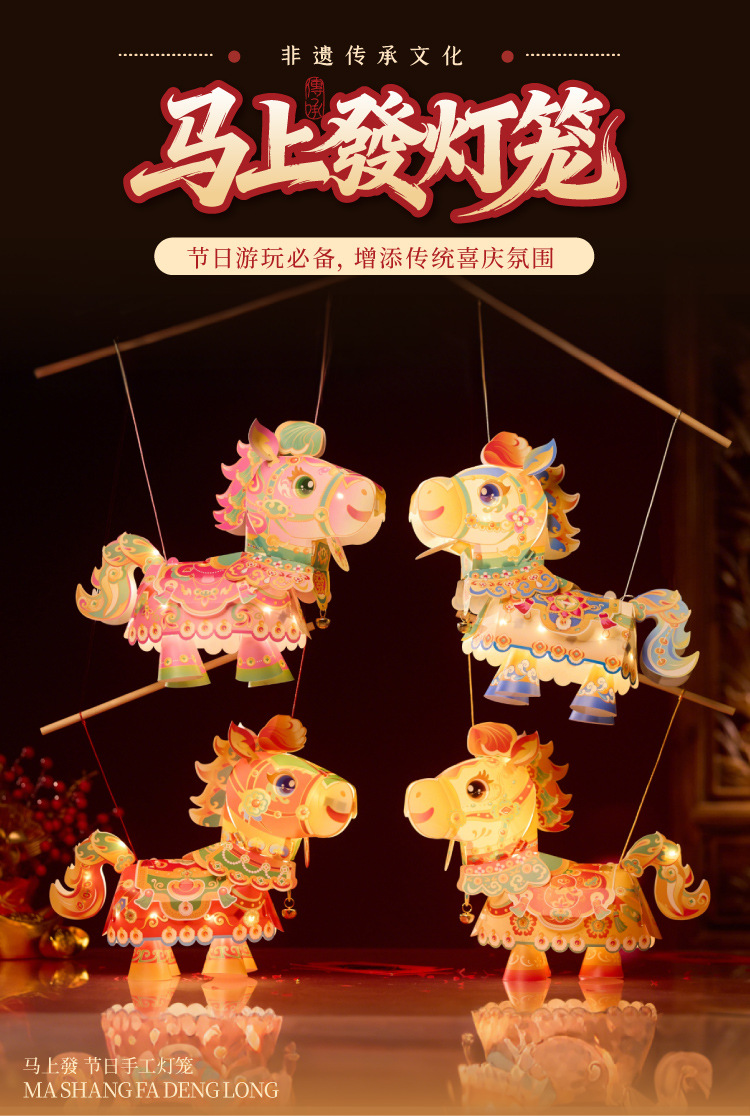 新年马上发国潮战马灯笼手工diy材料幼儿园益智手持发光花灯元宵