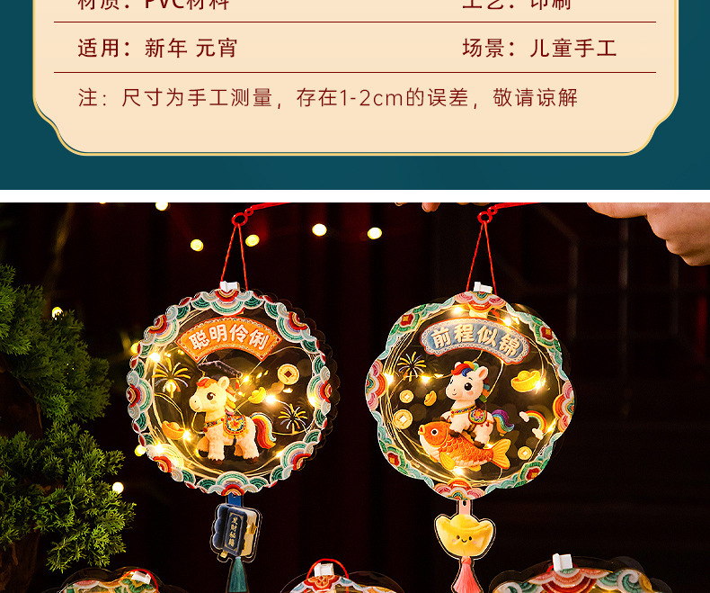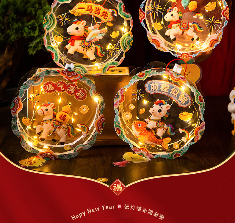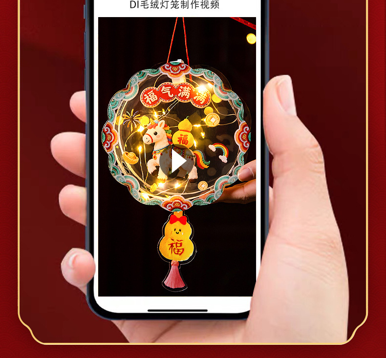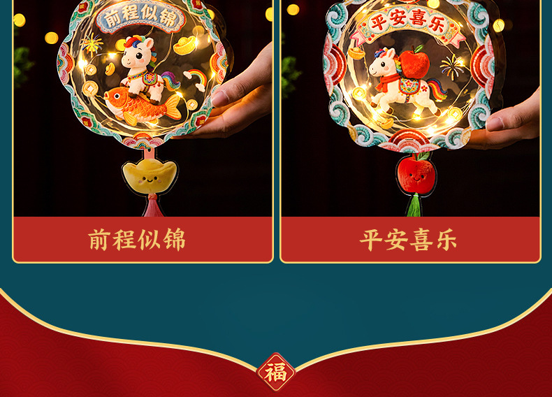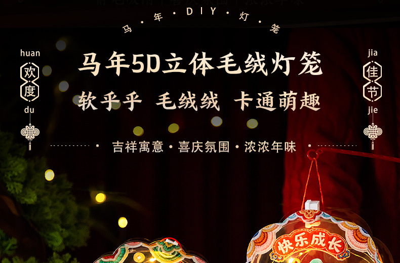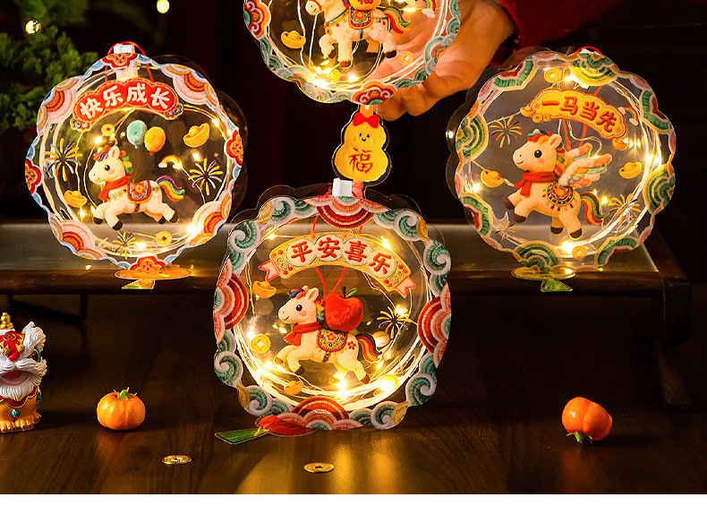 马年新年发光5D毛绒创意灯笼儿童手工diy材料包春节手提花灯摆摊