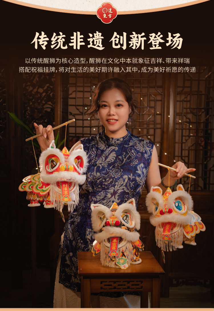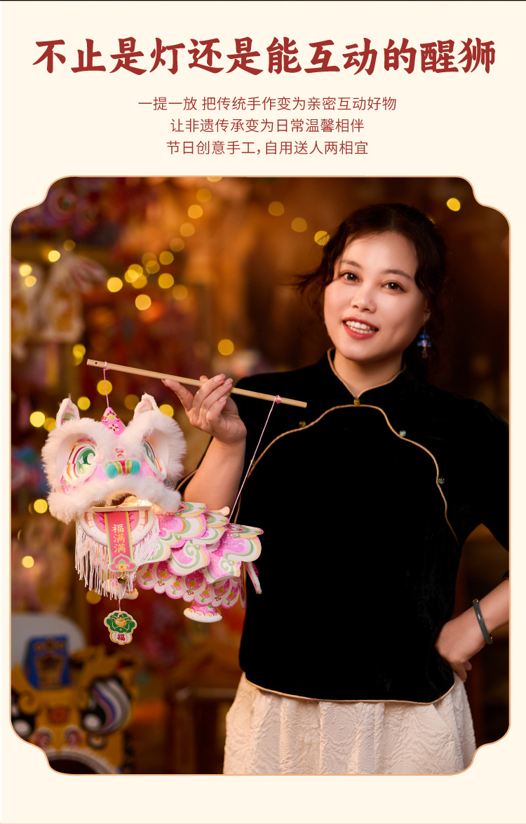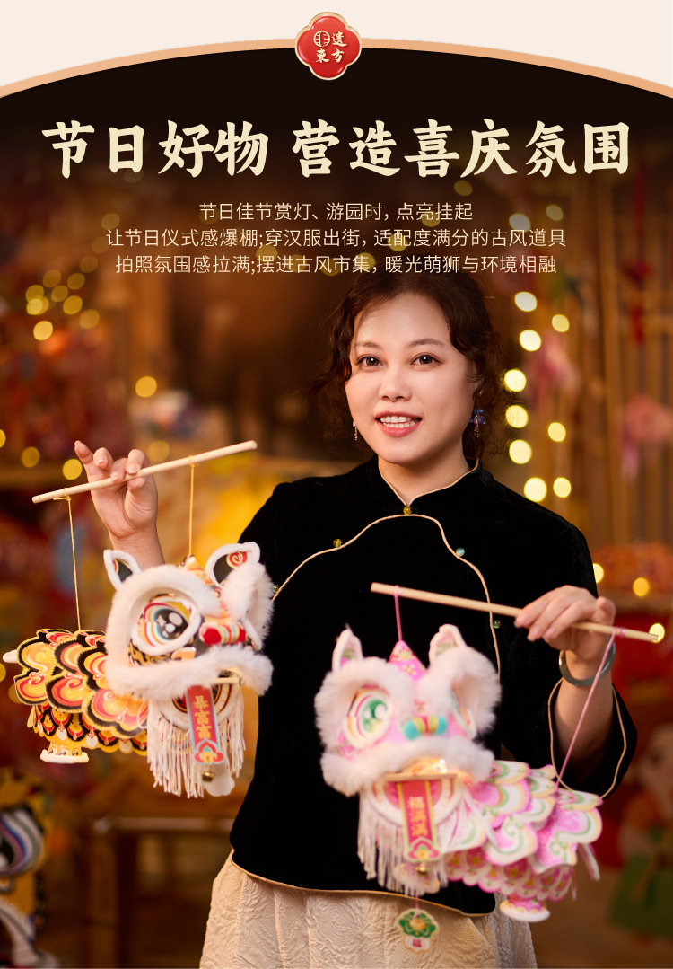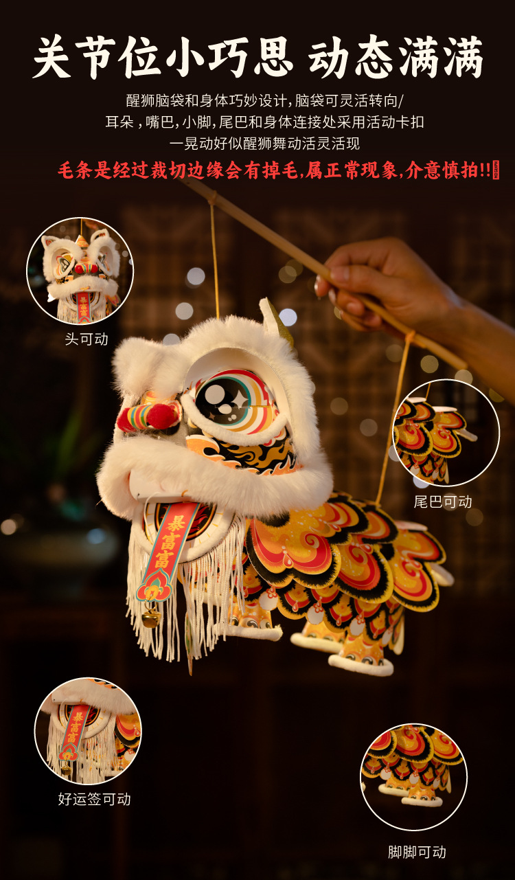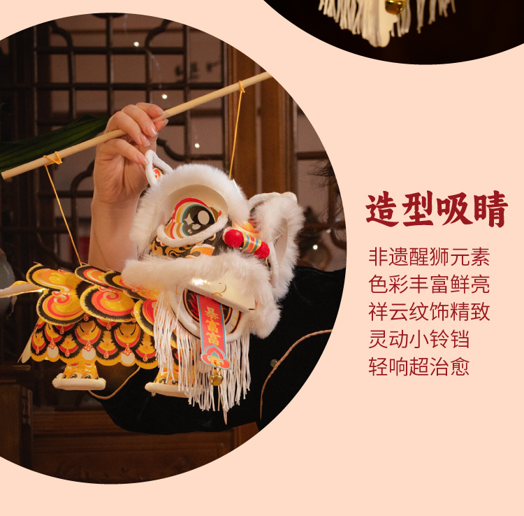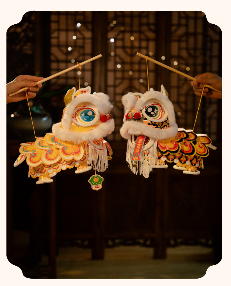 新年雄狮发光灯笼儿童手提花灯diy材料包摆摊国潮文创装饰醒狮灯