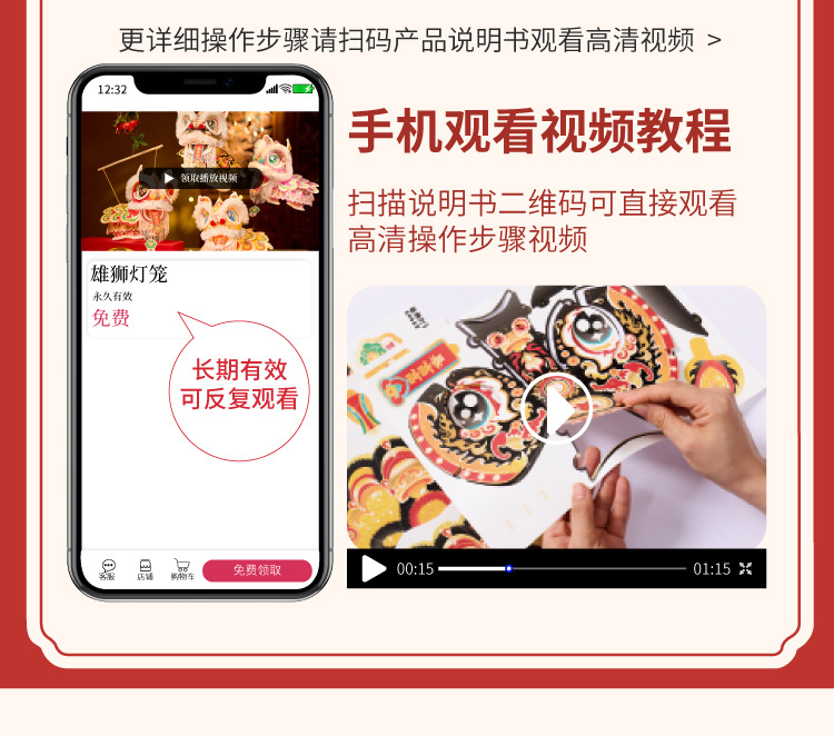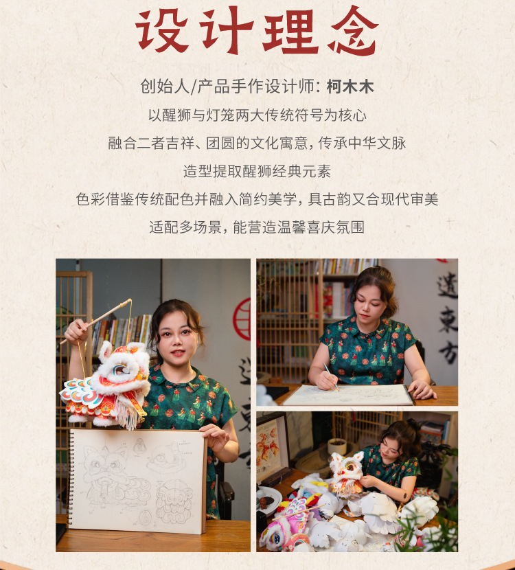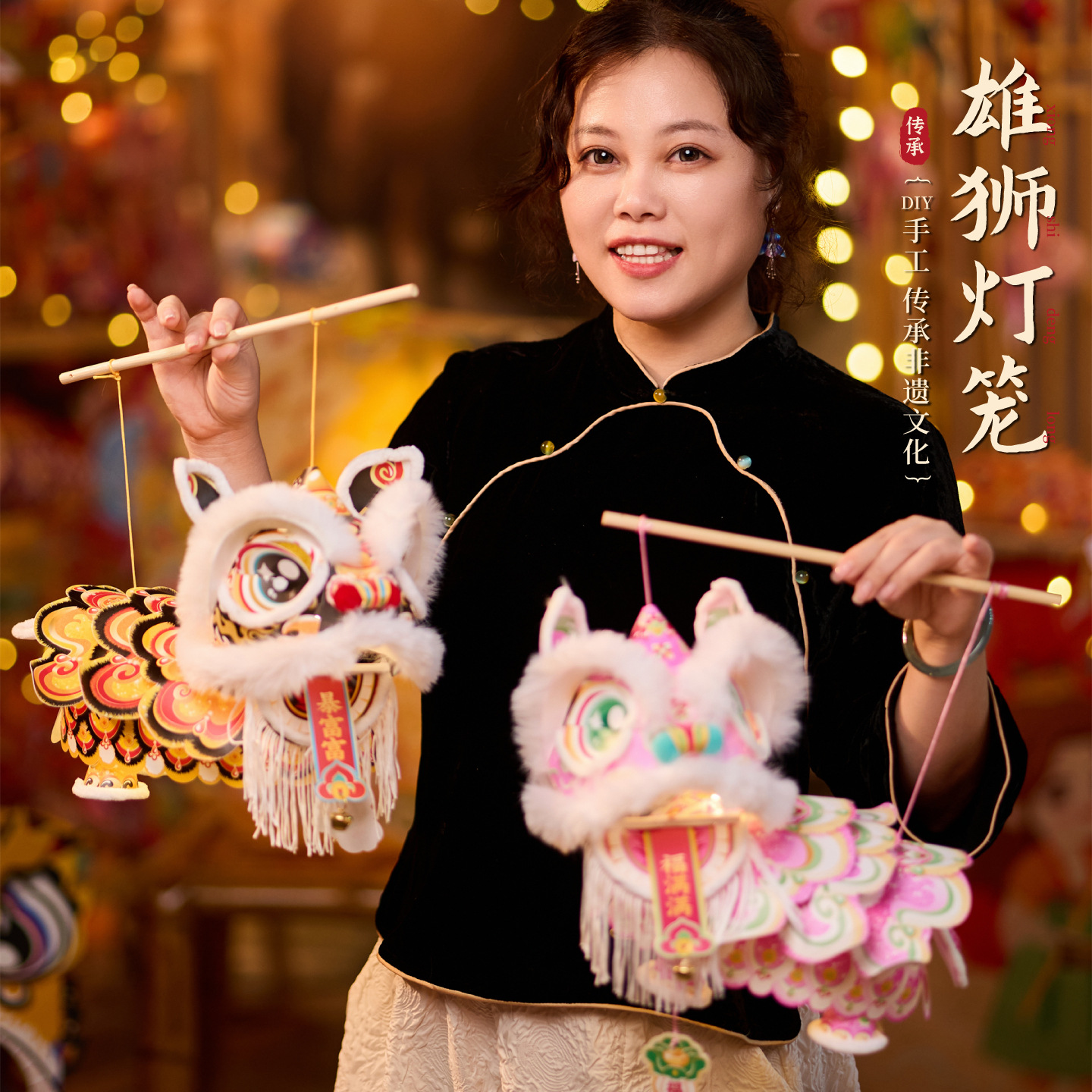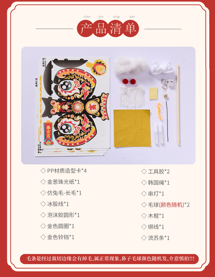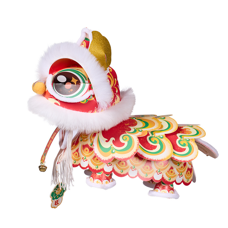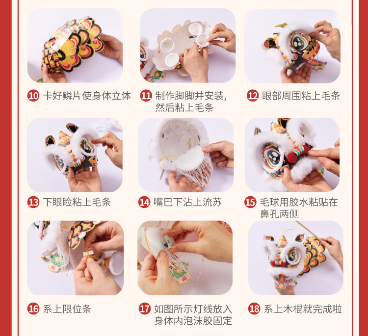 新年雄狮发光灯笼儿童手提花灯diy材料包摆摊国潮文创装饰醒狮灯