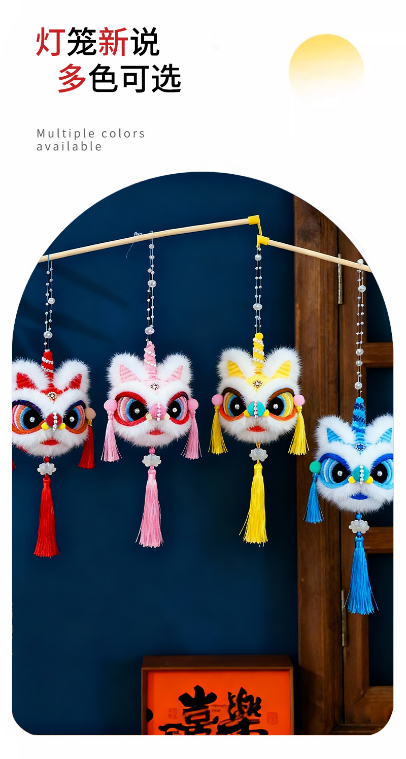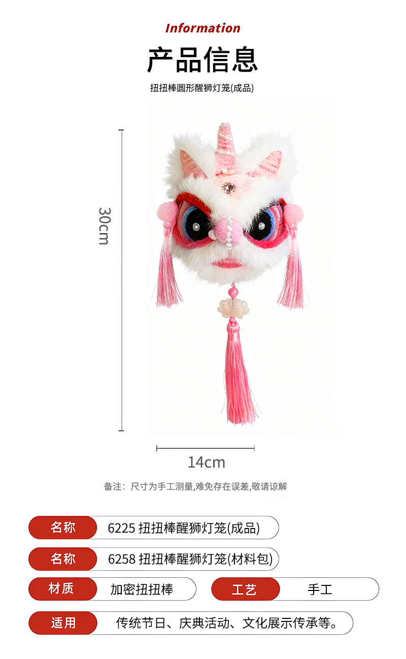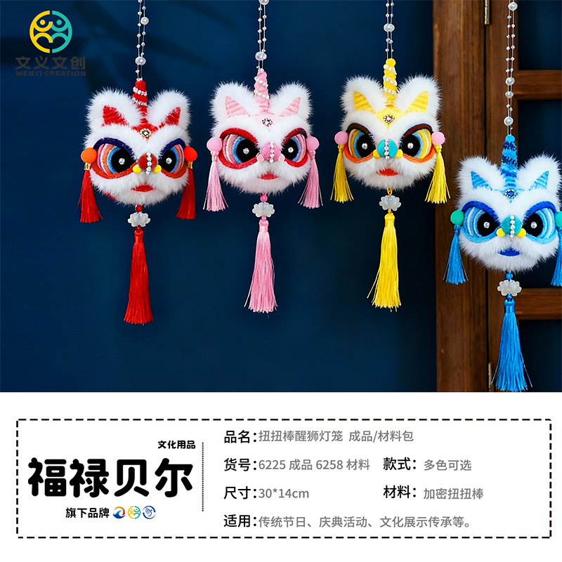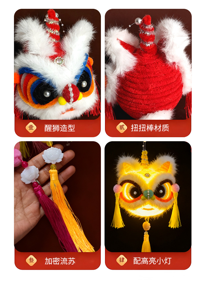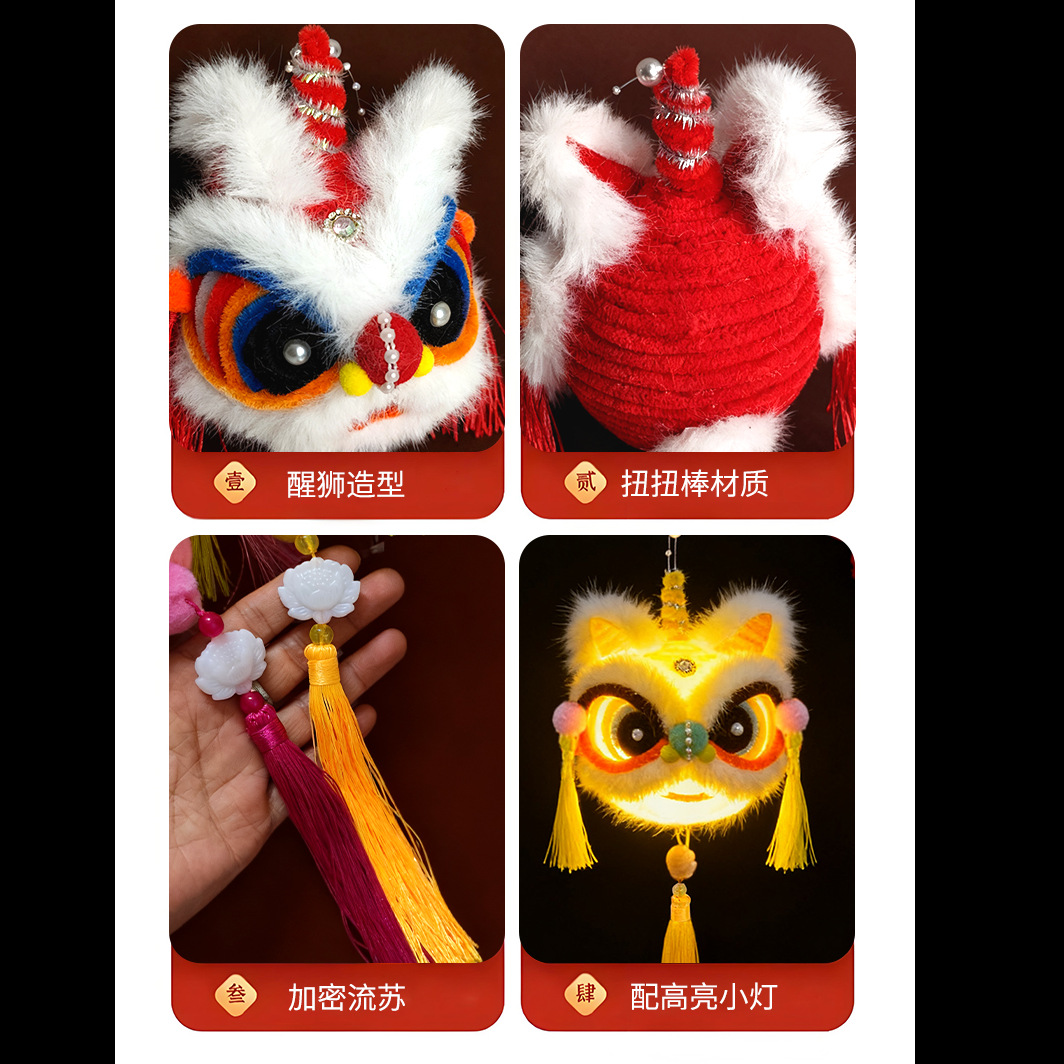【成品】国潮醒狮扭扭棒灯笼手工非遗醒狮灯笼红粉黄蓝多色可选