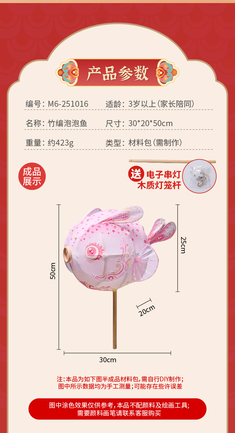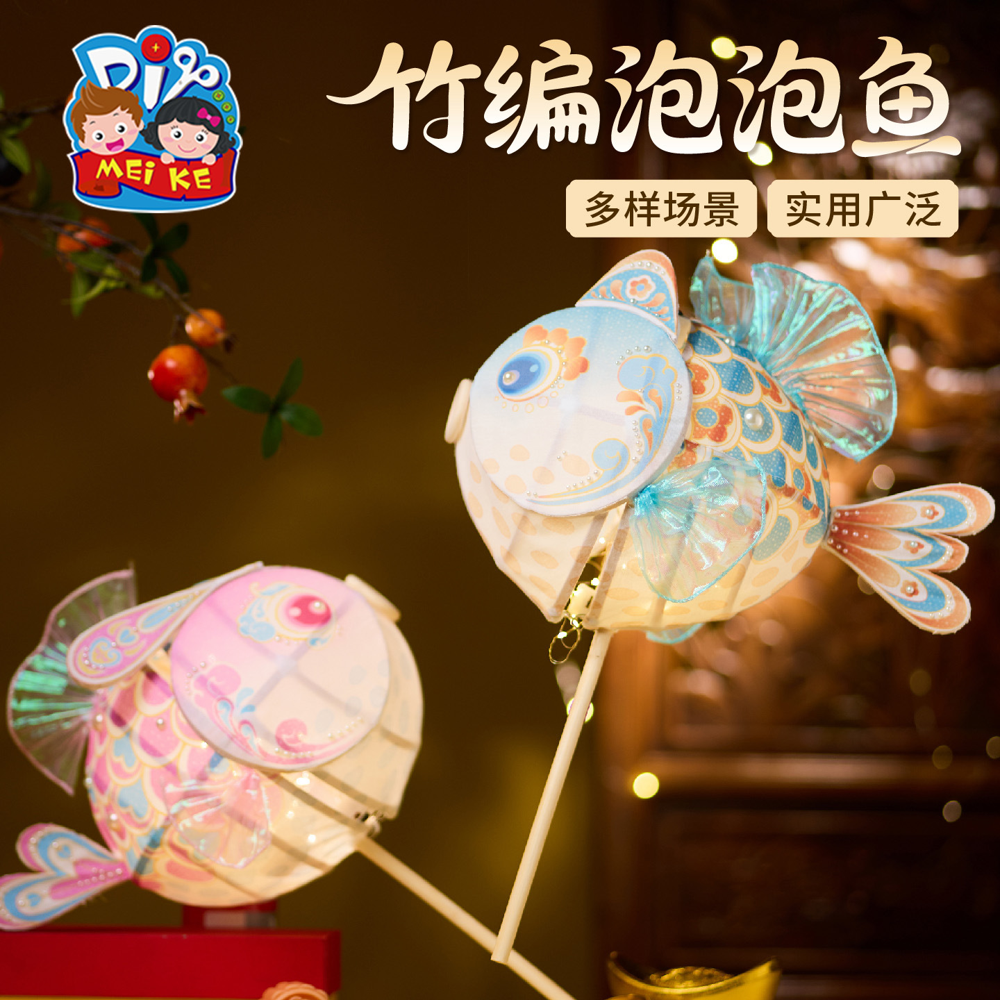 新春传统竹编泡泡鱼手工diy材料儿童趣味发光灯笼拍照装饰鱼灯